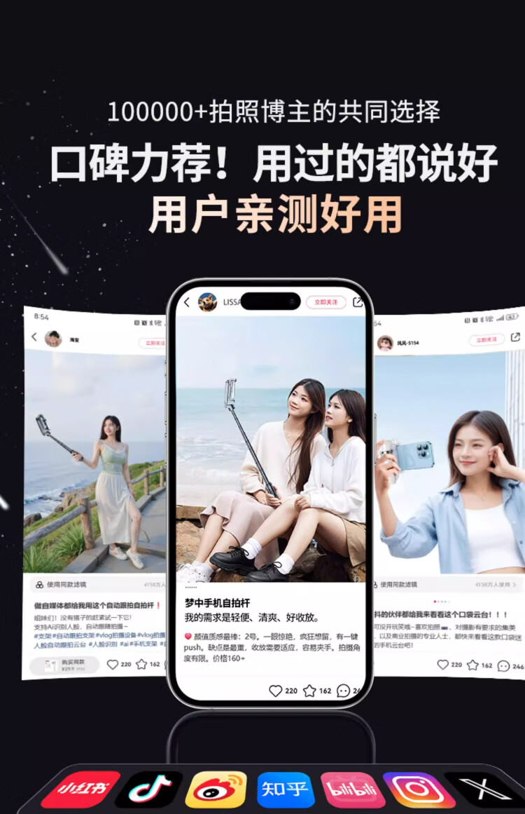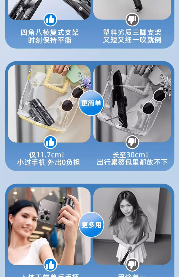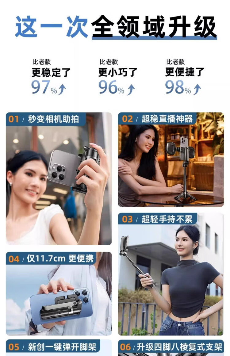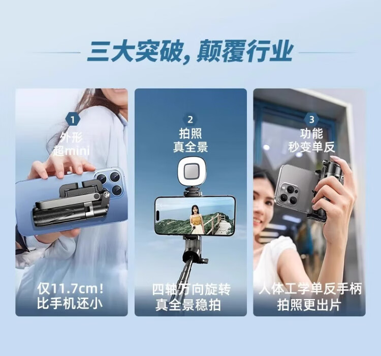 Niu Membrane King super mini anti-shake selfie stick portable travel mobile phone holder 360-degree rotation automatic face tracking multi-functional compact three-axis live broadcast gimbal camera artifact mini storage 11cm Bluetooth remote control丨one-click pop-up