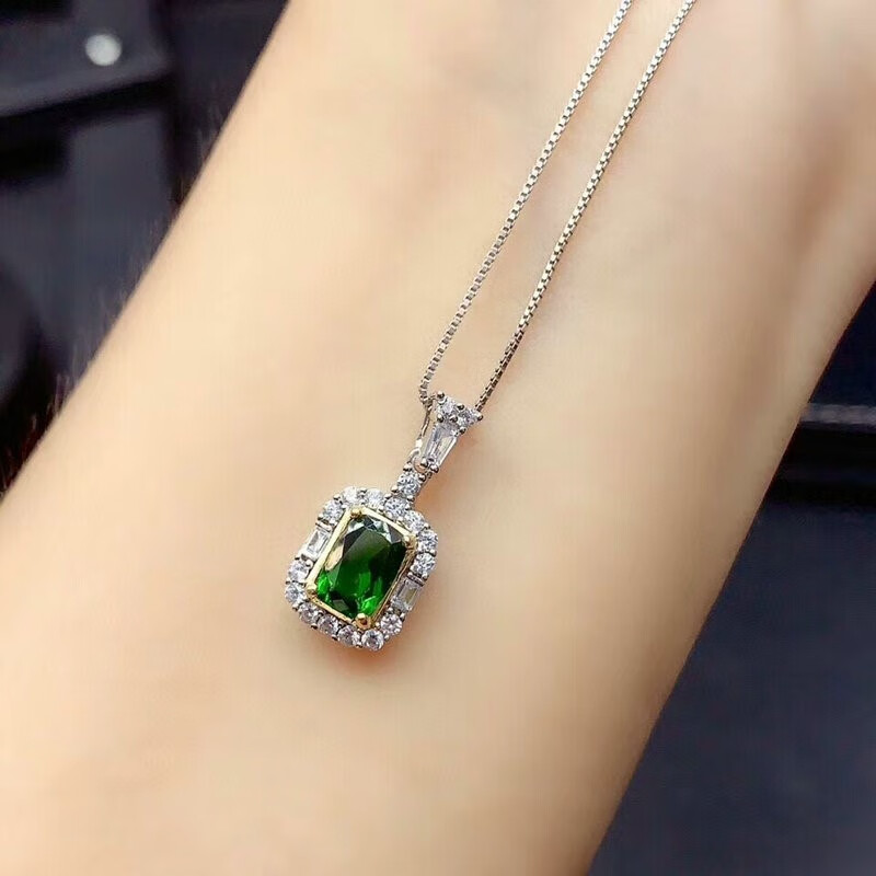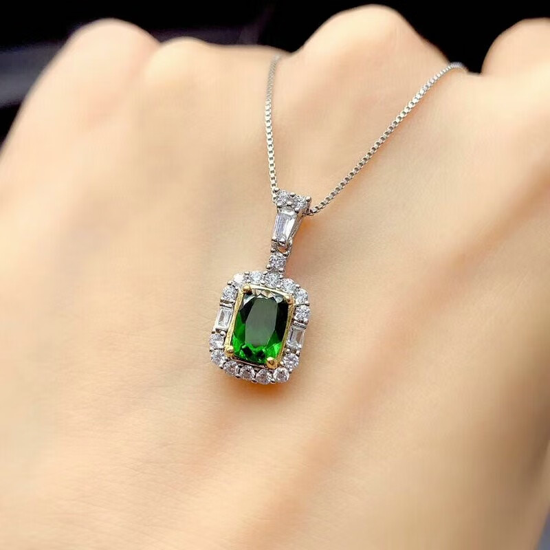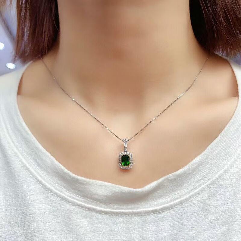 Jinwei Natural Diopside Pendant Women's S925 Sterling Silver Necklace Temperament Simple Emerald Necklace Birthday Gift for Girlfriend Diopside Pendant Necklace + Appraisal Certificate