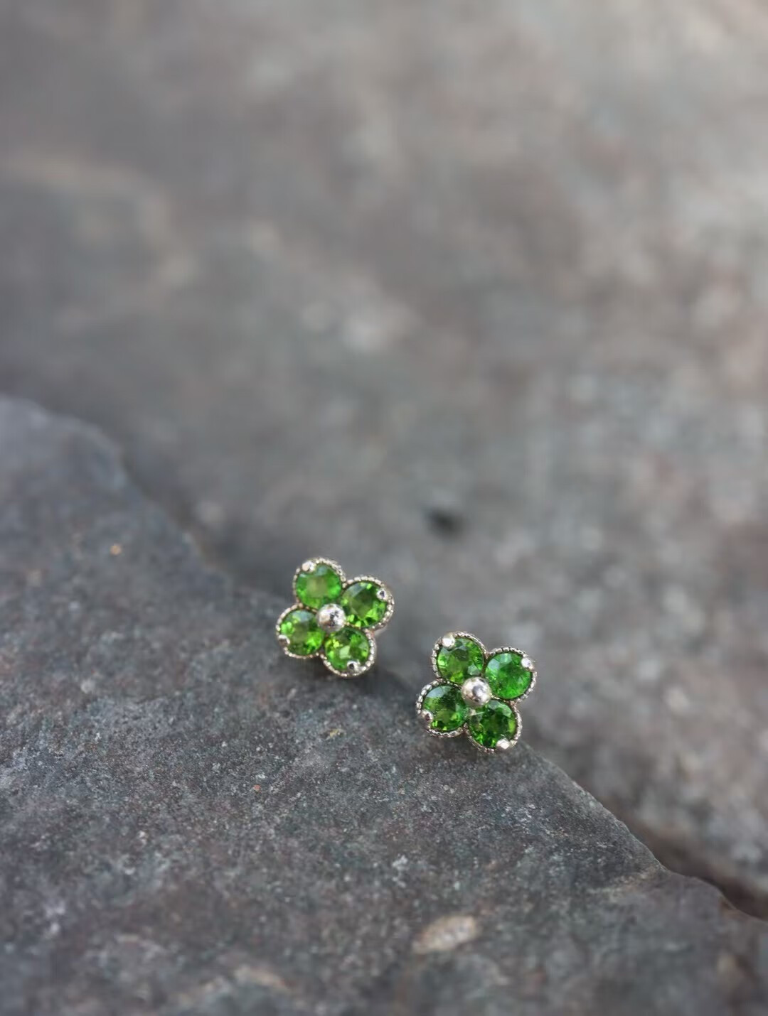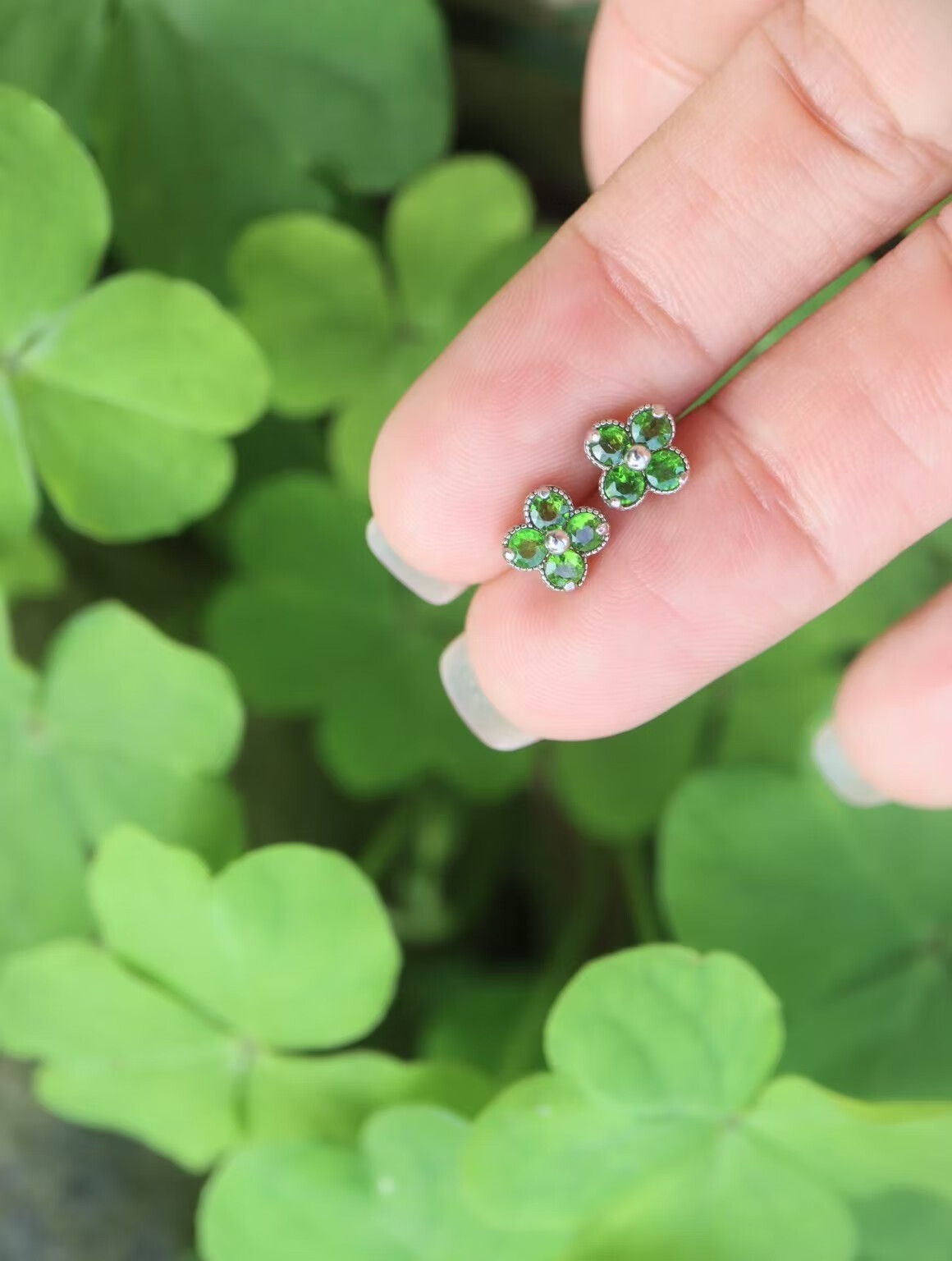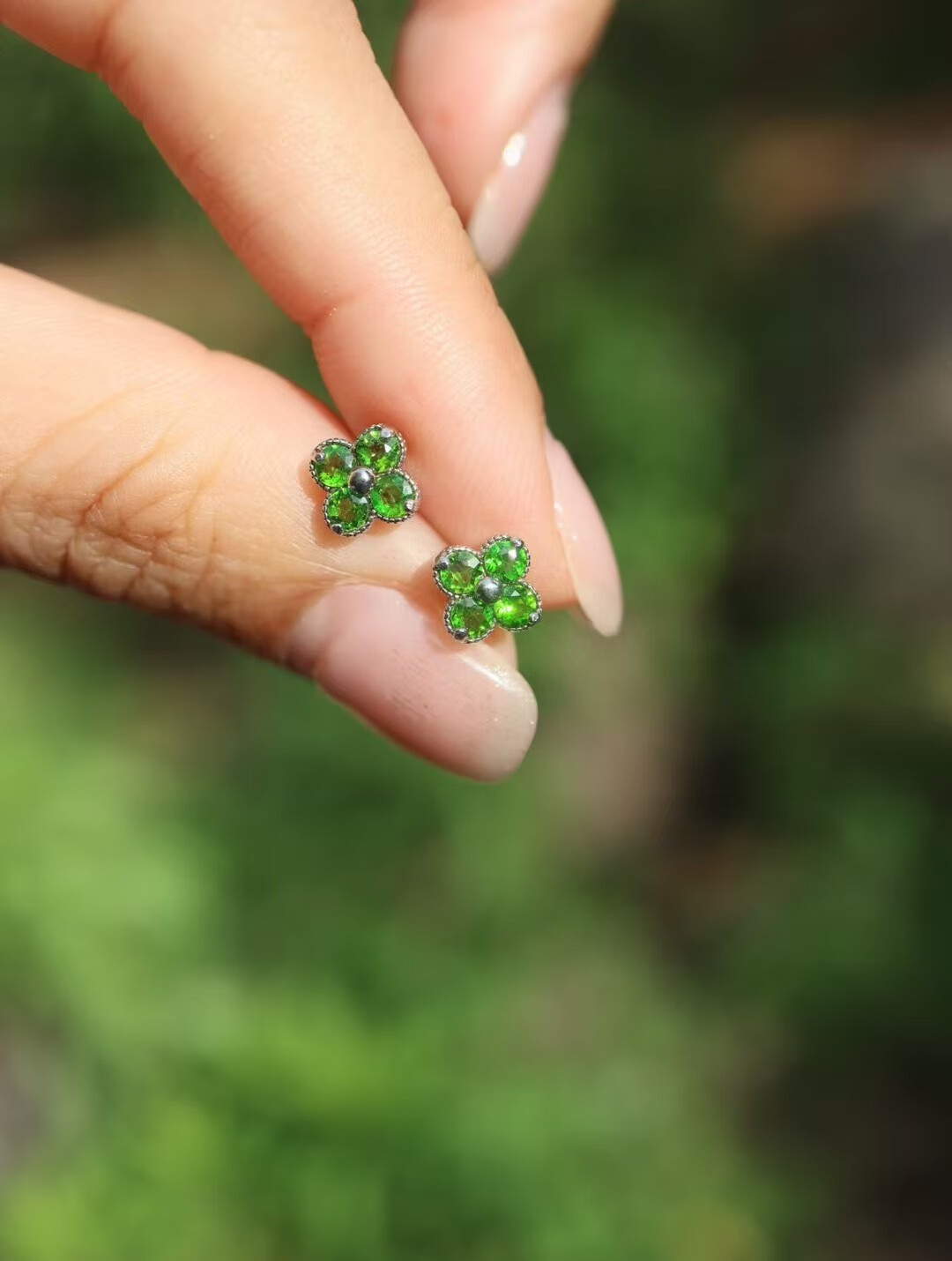 Jinwei women's summer cool style 925 sterling silver natural diopside earrings, fresh and elegant four-leaf clover shape