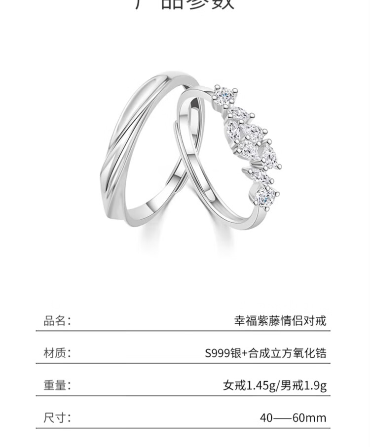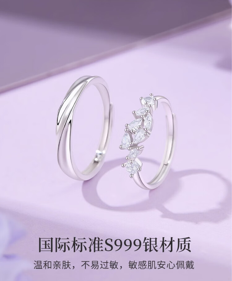 Mansheng S999 sterling silver couple ring, men and women's ring, high-end love token, Valentine's Day gift for boyfriend and girlfriend, women's model