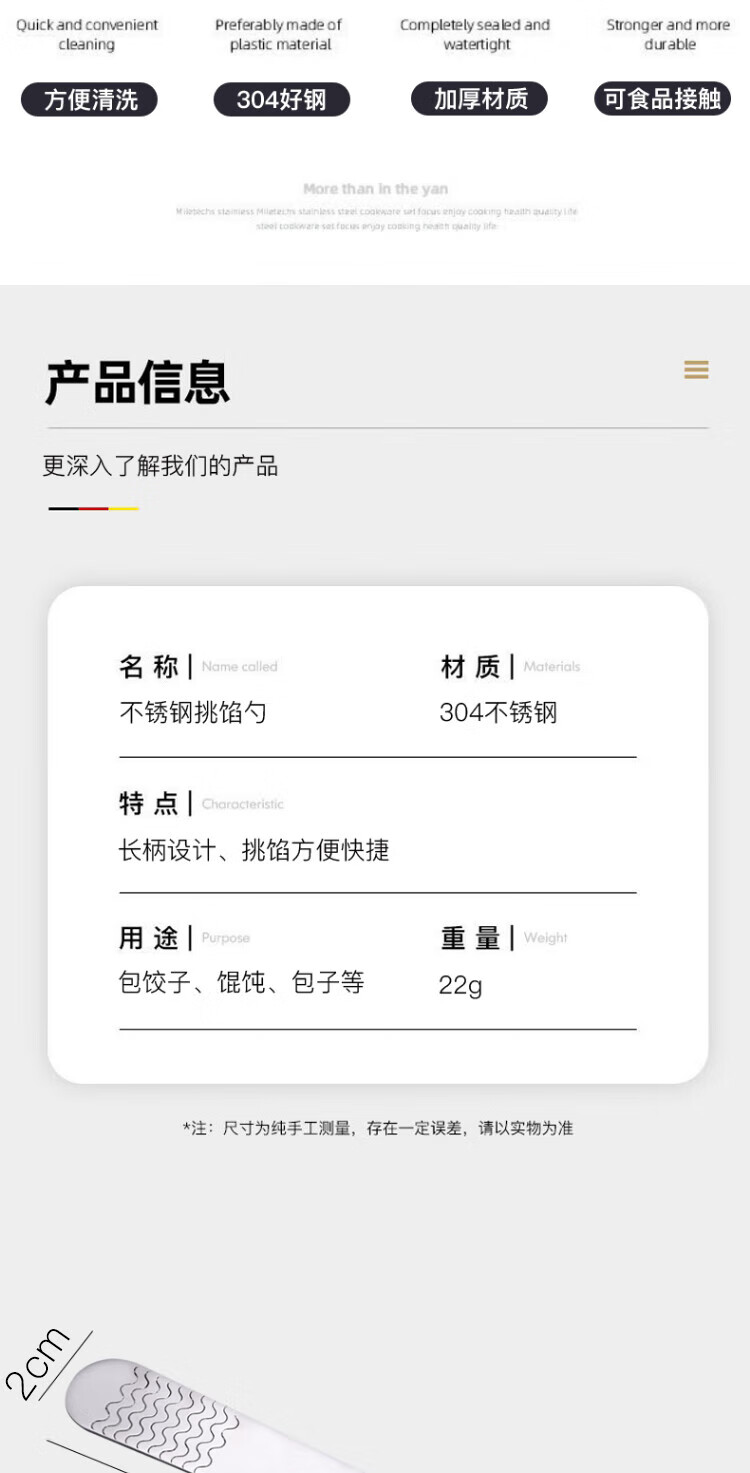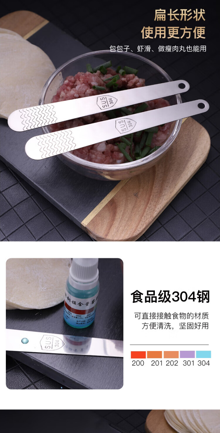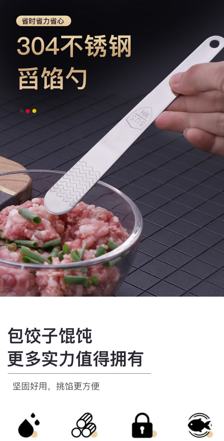 Initial conception of 304 stainless steel filling spoon for making dumplings, filling spoon for wonton dumplings, filling stirring spoon, filling pick 304 stainless steel filling spoon, single head, 2 pieces