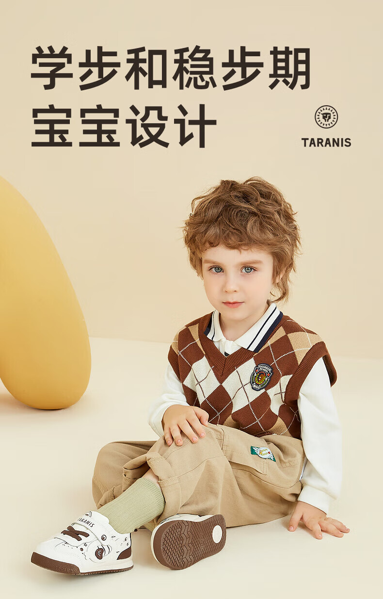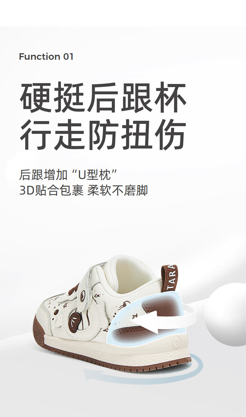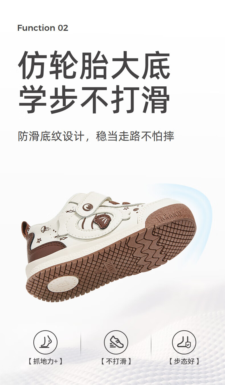 Tyrannis Autumn New Comfortable Soft Soled Toddler Shoes Boys Functional Shoes Cartoon Cute Baby Girls Bread Shoes White/Brown 24 Inner Length 15cm Suitable for Feet Length 13.8~14.2