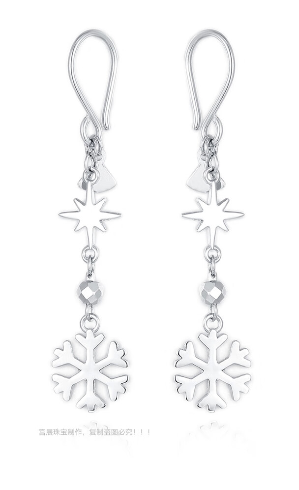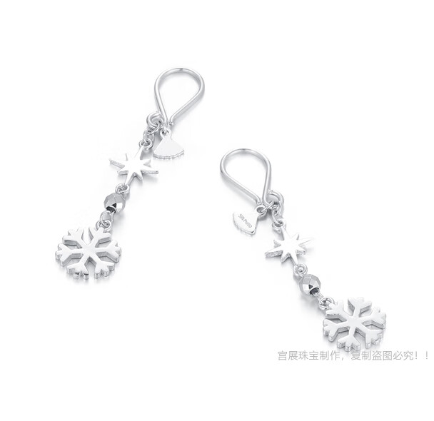 Gongzhan platinum snowflake earrings tassel long pt950 platinum six-pointed star earrings for women exquisite temperament new ear hook style one pair of star snowflake platinum earrings about 3.2-3.4 grams