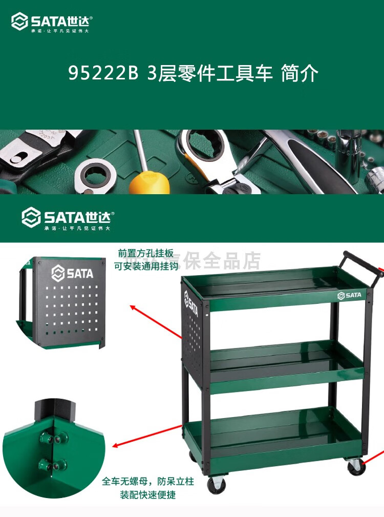 SATA three-layer multi-function tool cart mobile trolley auto repair parts cart tool cart 95222AB 3-layer 3-layer parts tool cart (Tuhu red) 95222B-R