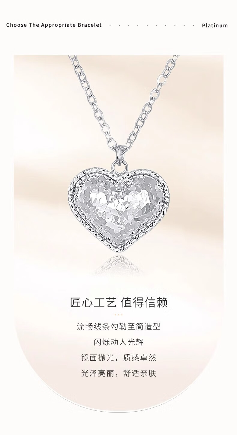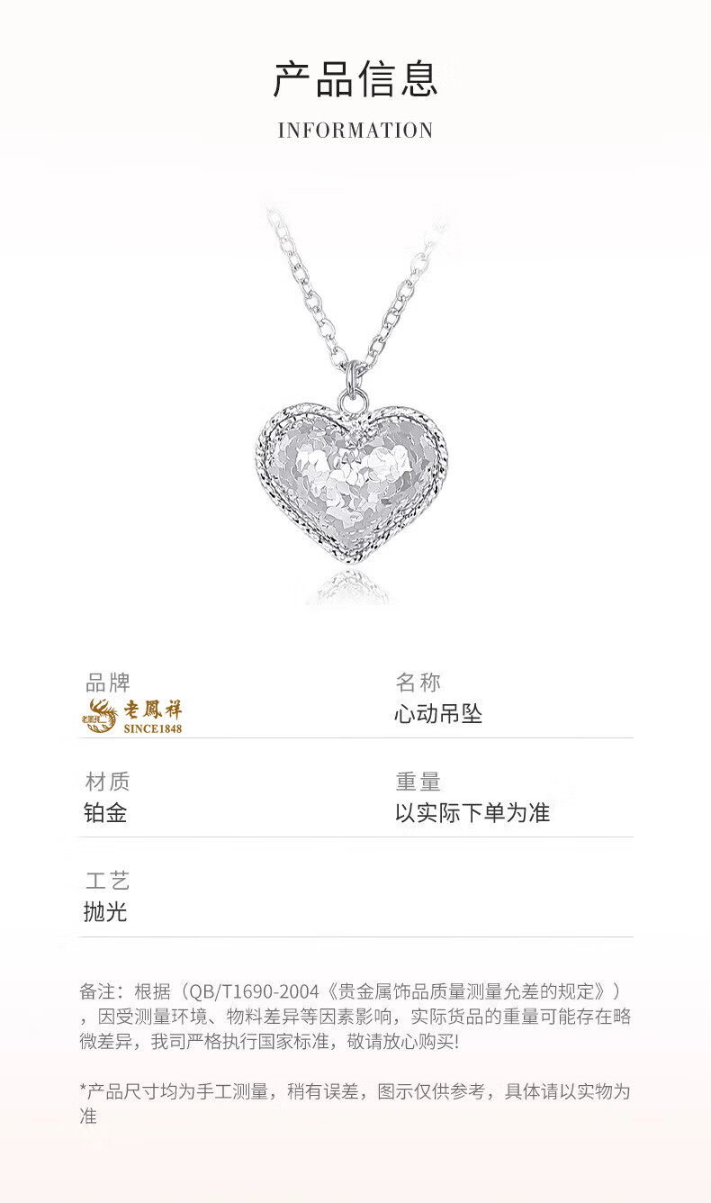 Lao Fengxiang PT950 platinum crushed ice love chain for women sweet winding pendant jewelry birthday gift for girlfriend and wife Platinum crushed ice love chain about 5.7g