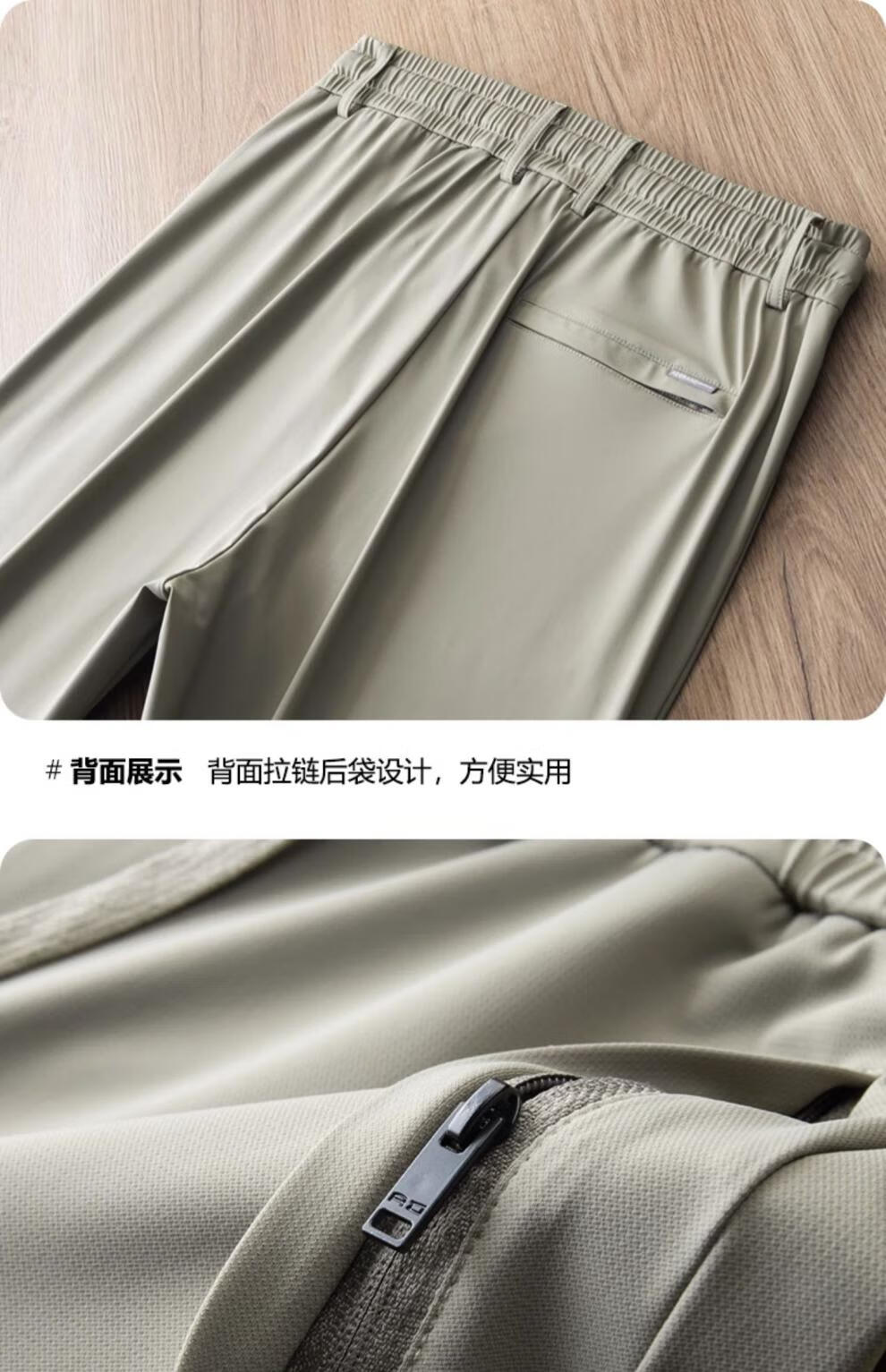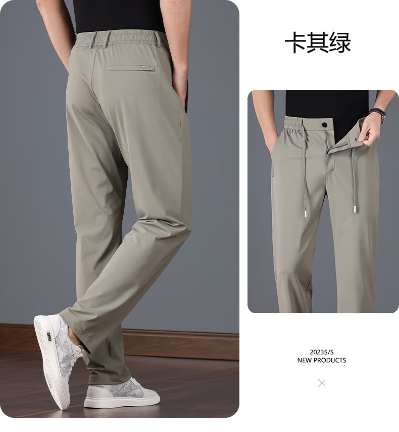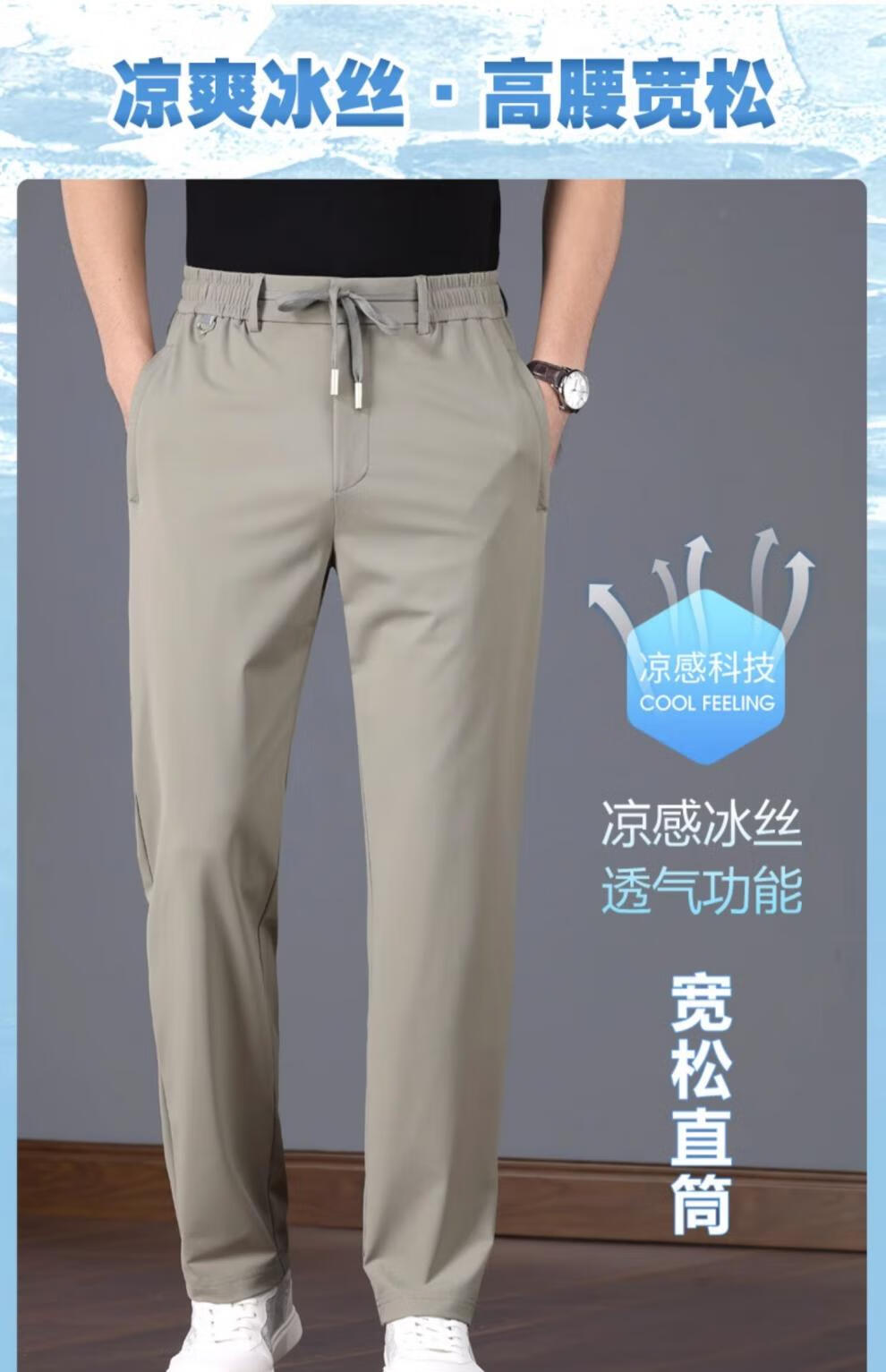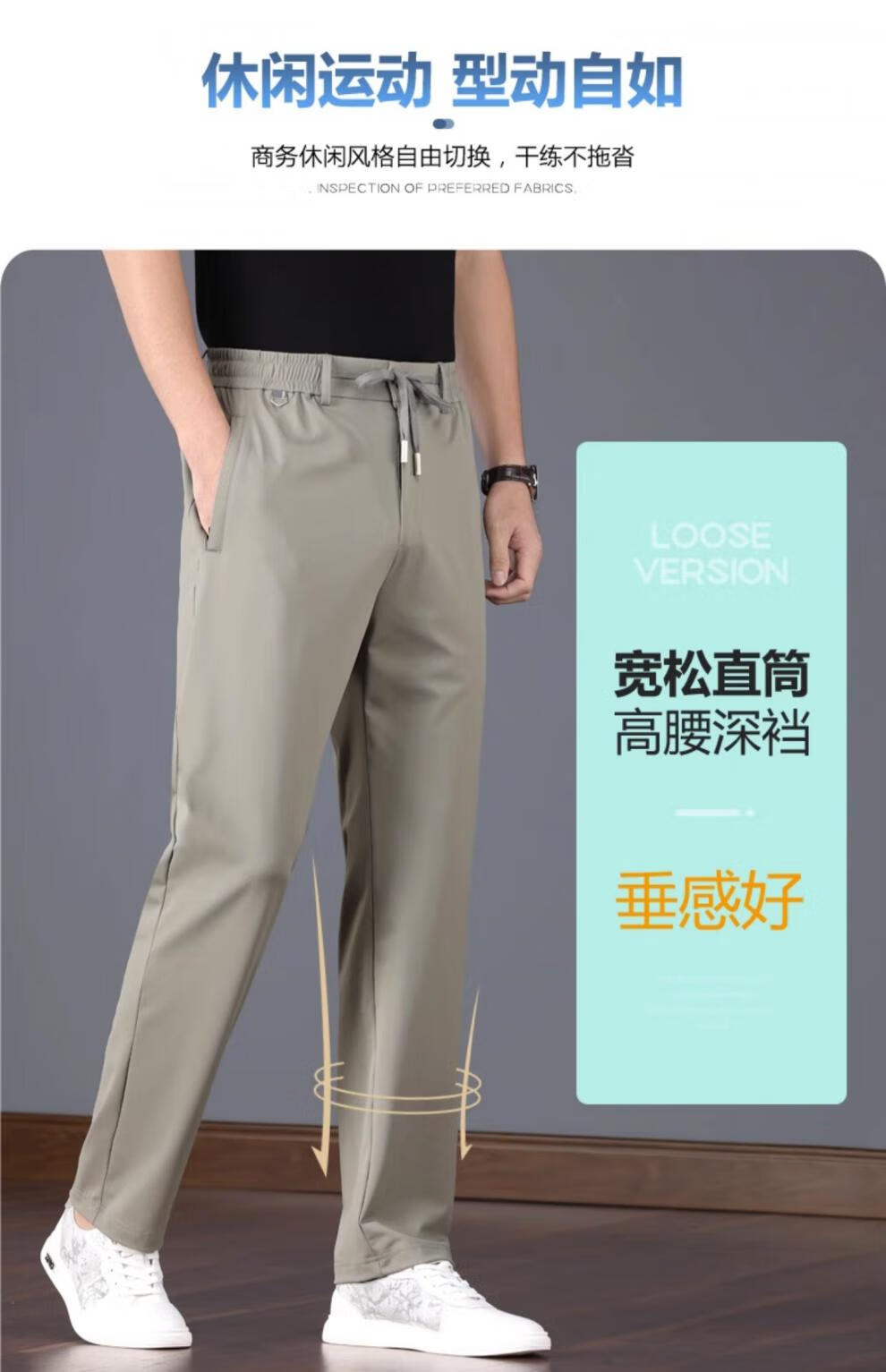 International Milan Drape Quick-Drying丨Summer Men's Casual Pants Loose Straight Sports Pants Middle-aged Ice Silk Pants Men's Pants Khaki Green (Gift Box) Lightweight XL XL Size 130-145Jin Jin is equal to 0.5 kg