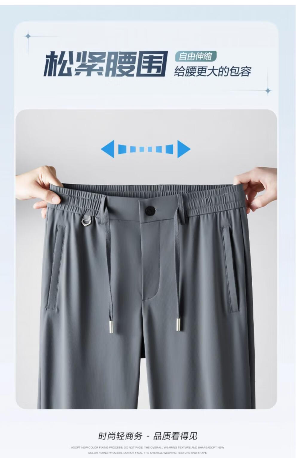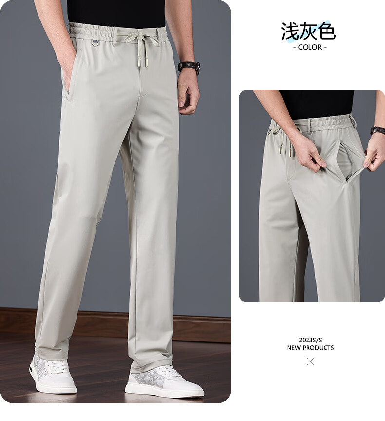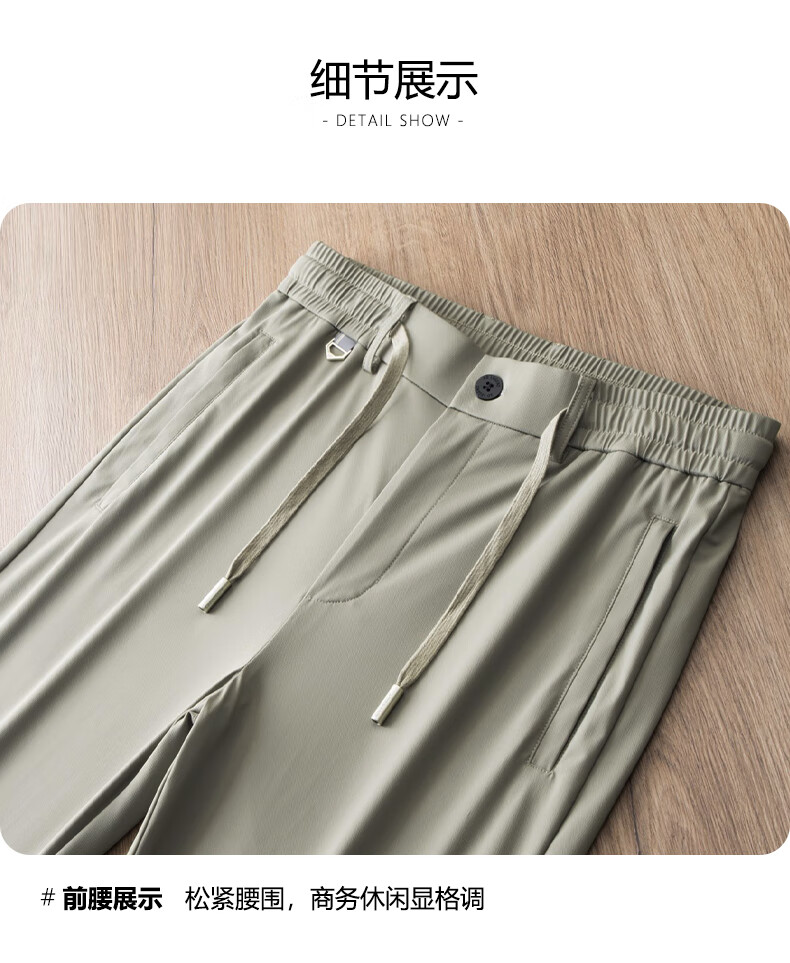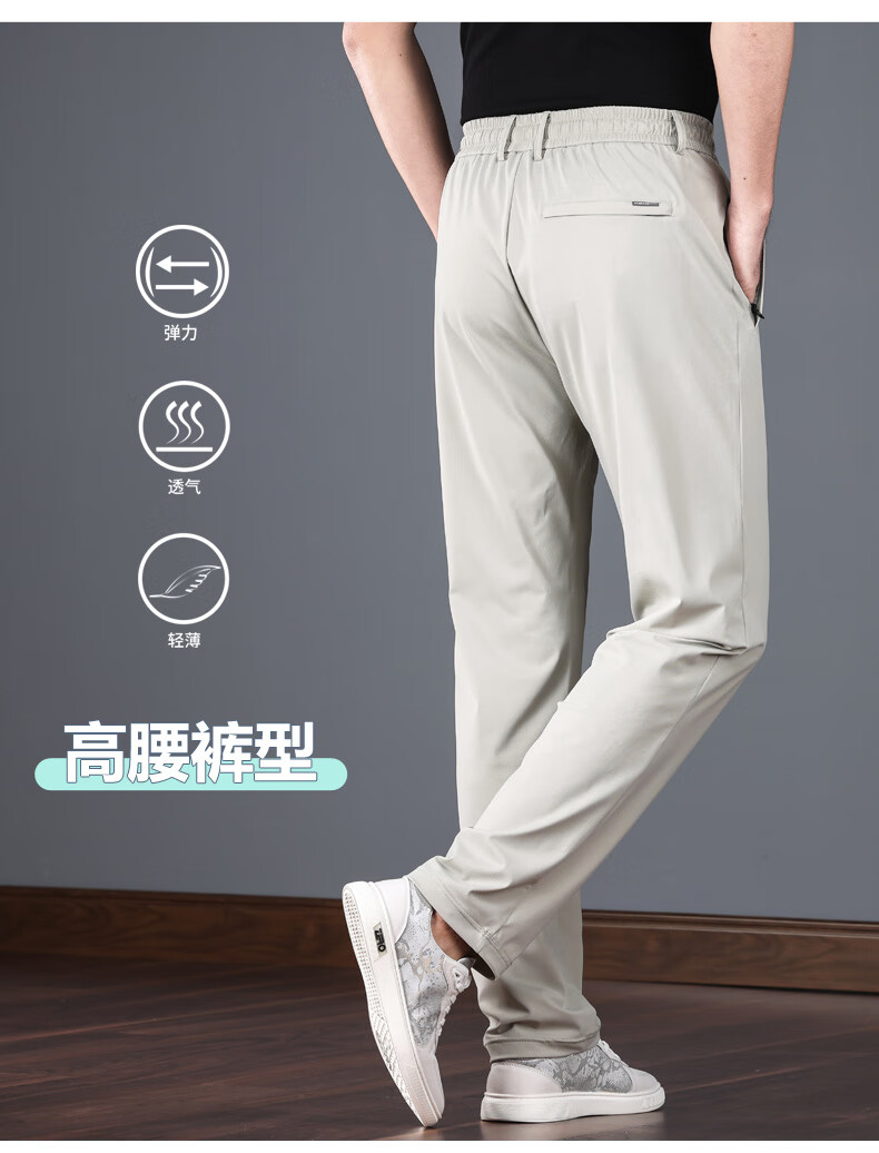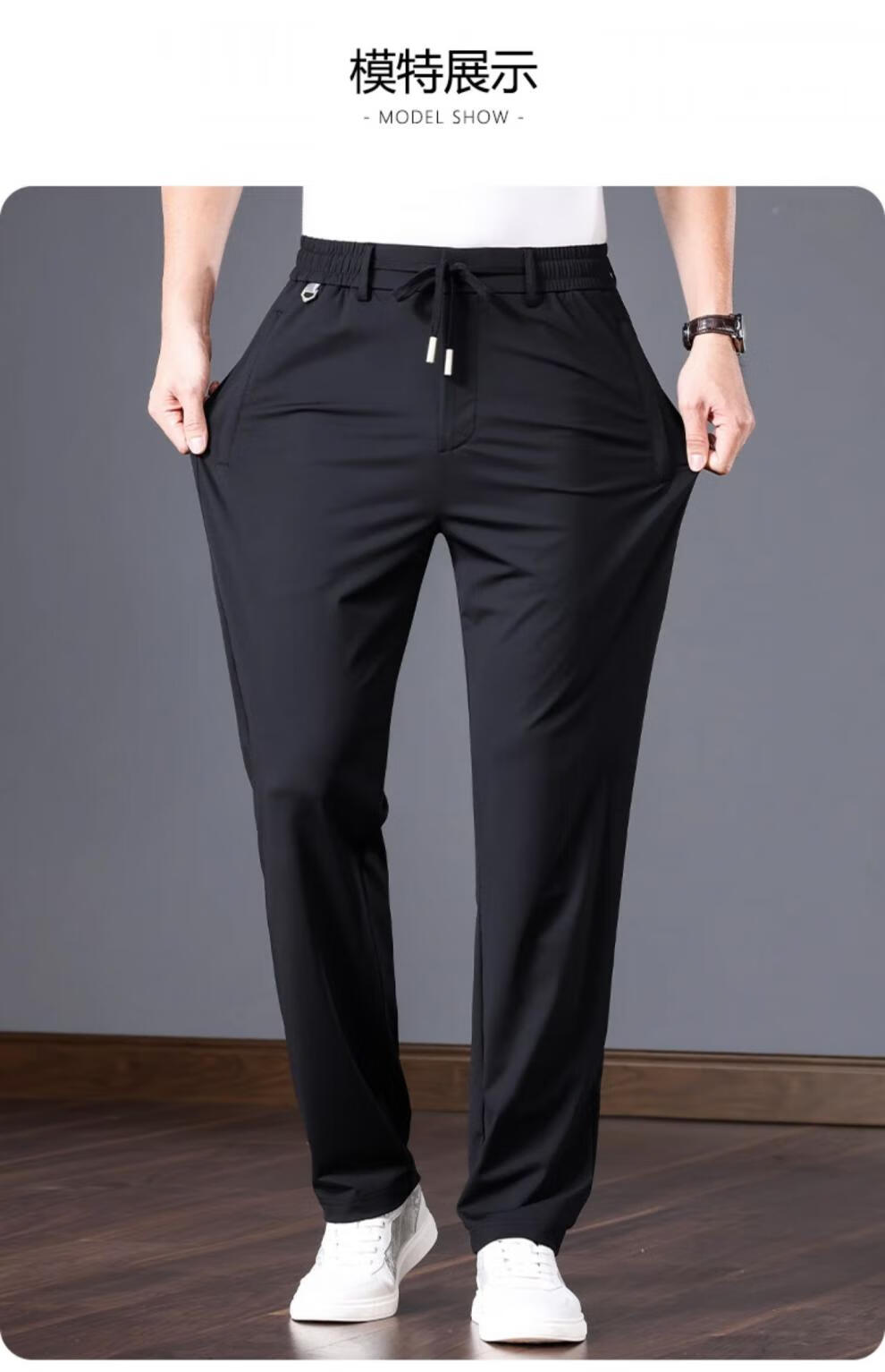 International Milan Drape Quick-Drying丨Summer Men's Casual Pants Loose Straight Sports Pants Middle-aged Ice Silk Pants Men's Pants Khaki Green (Gift Box) Lightweight XL XL Size 130-145Jin Jin is equal to 0.5 kg