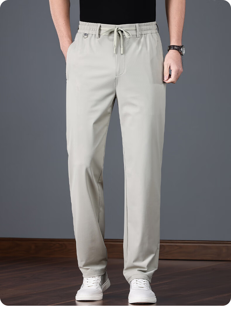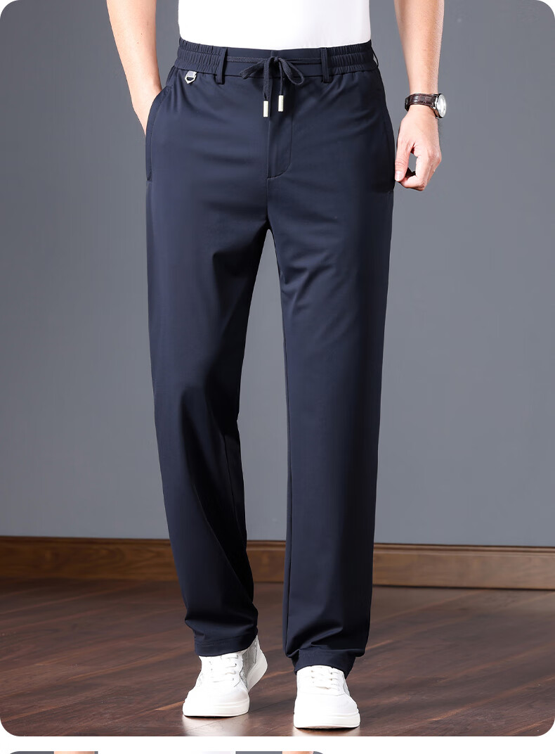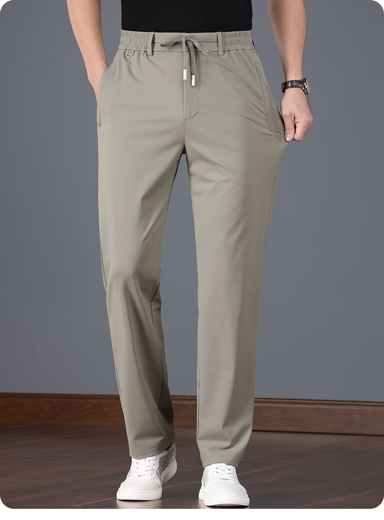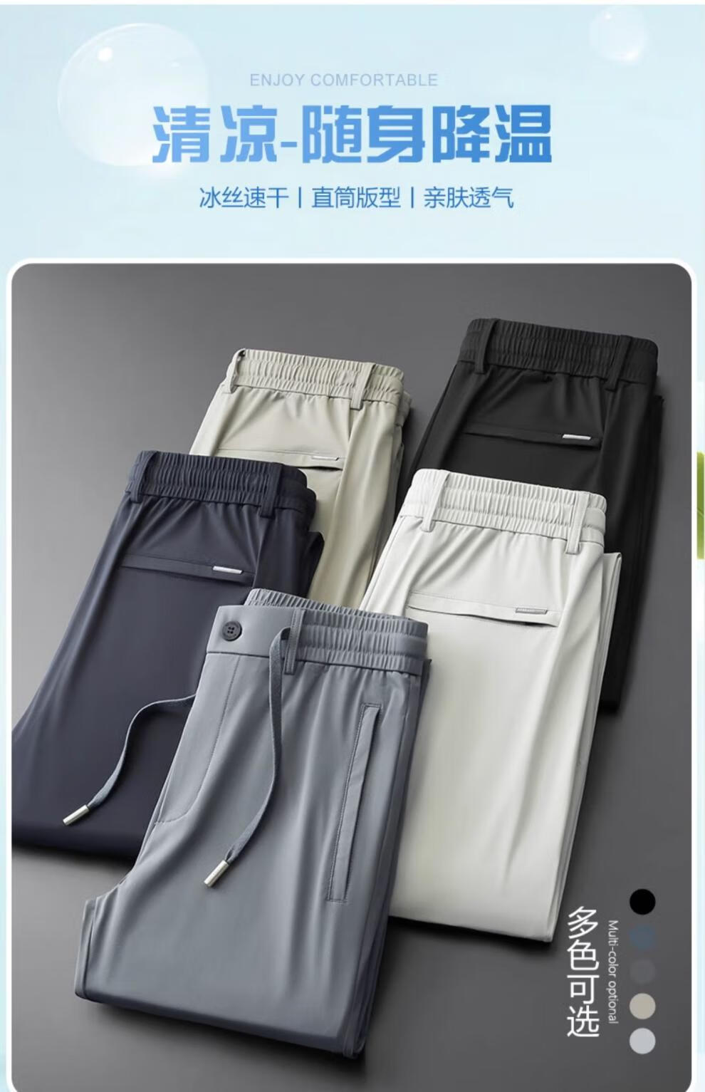 International Milan Drape Quick-Drying丨Summer Men's Casual Pants Loose Straight Sports Pants Middle-aged Ice Silk Pants Men's Pants Khaki Green (Gift Box) Lightweight XL XL Size 130-145Jin Jin is equal to 0.5 kg