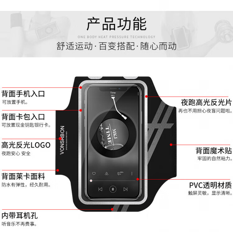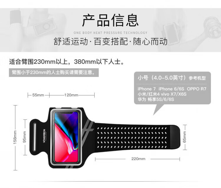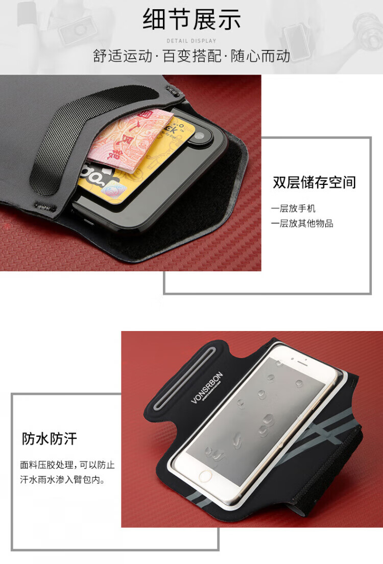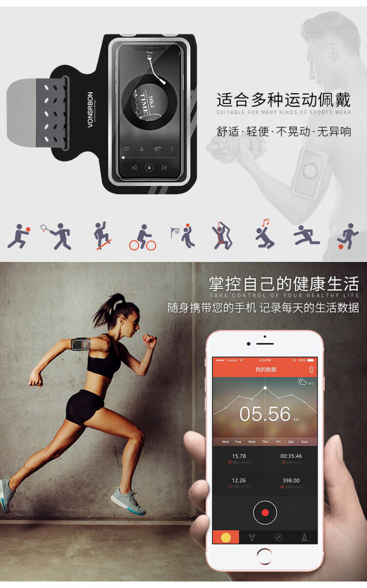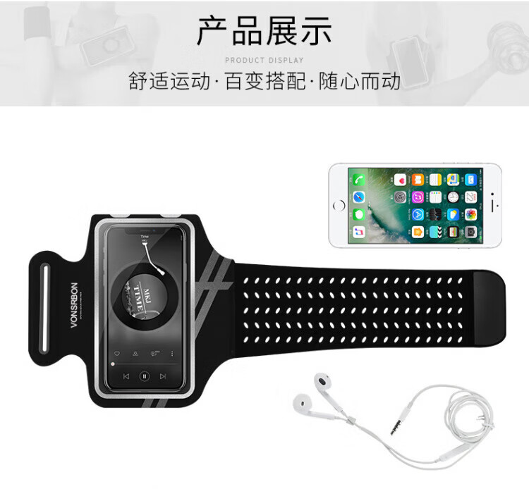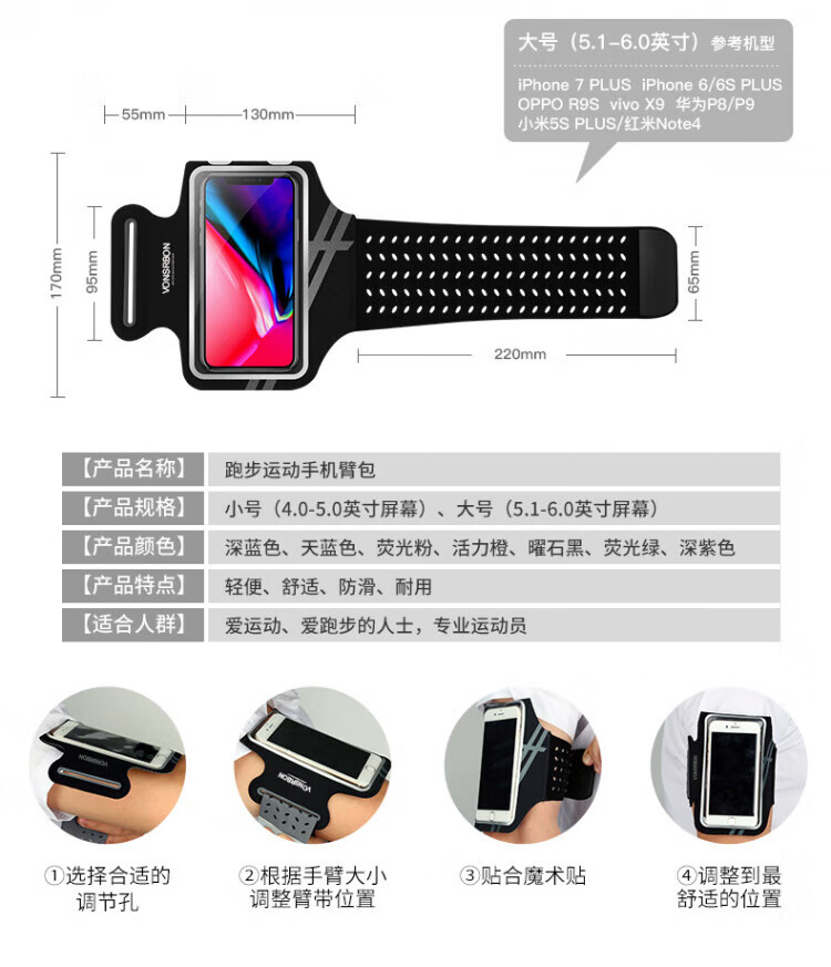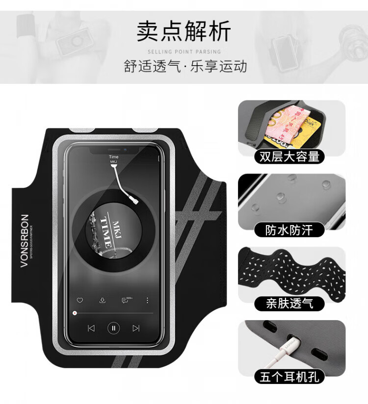 JCZS running mobile phone arm bag for men and women, sports and fitness, light and touchable screen mobile phone bag, wrist bag, suitable for Apple and Huawei, standard model, obsidian black * universal for screens below 6.8