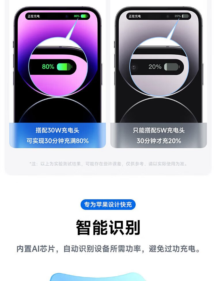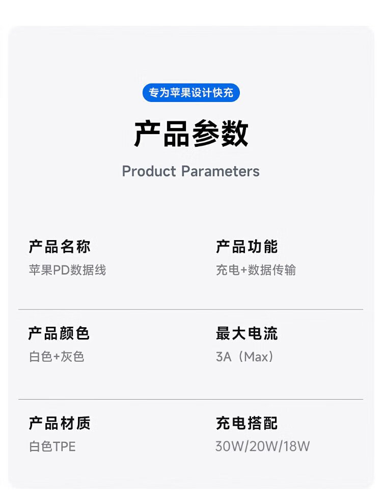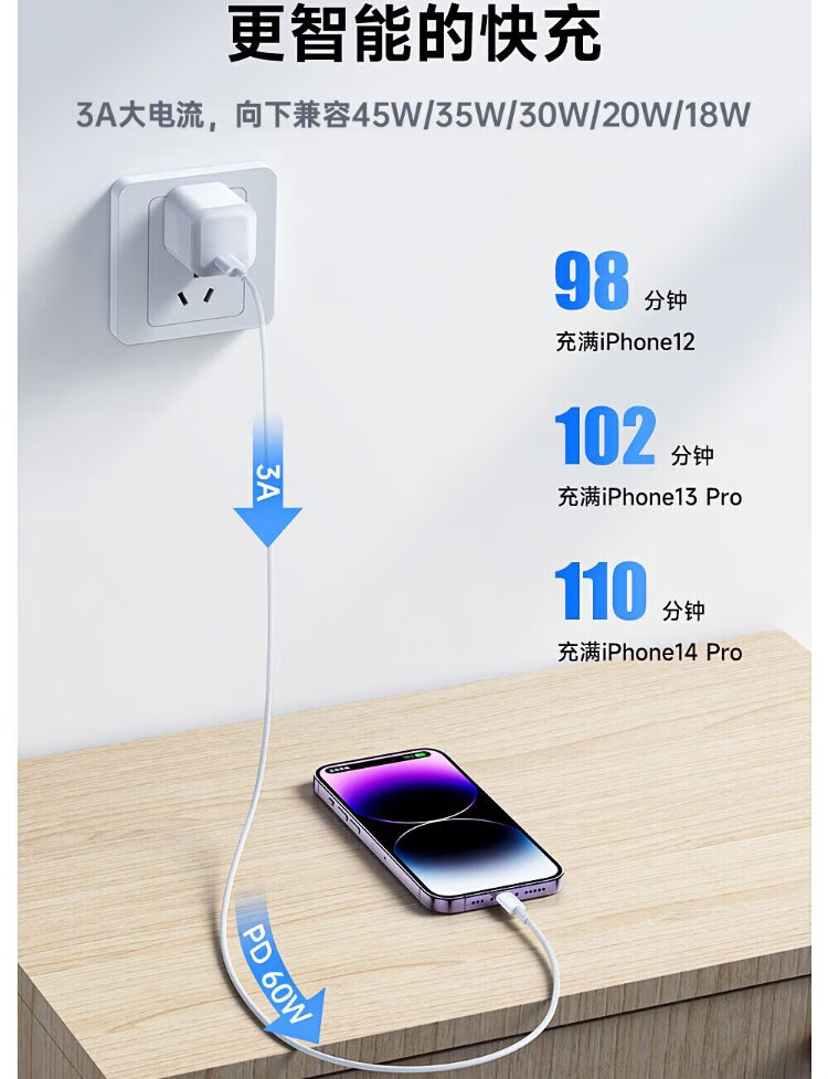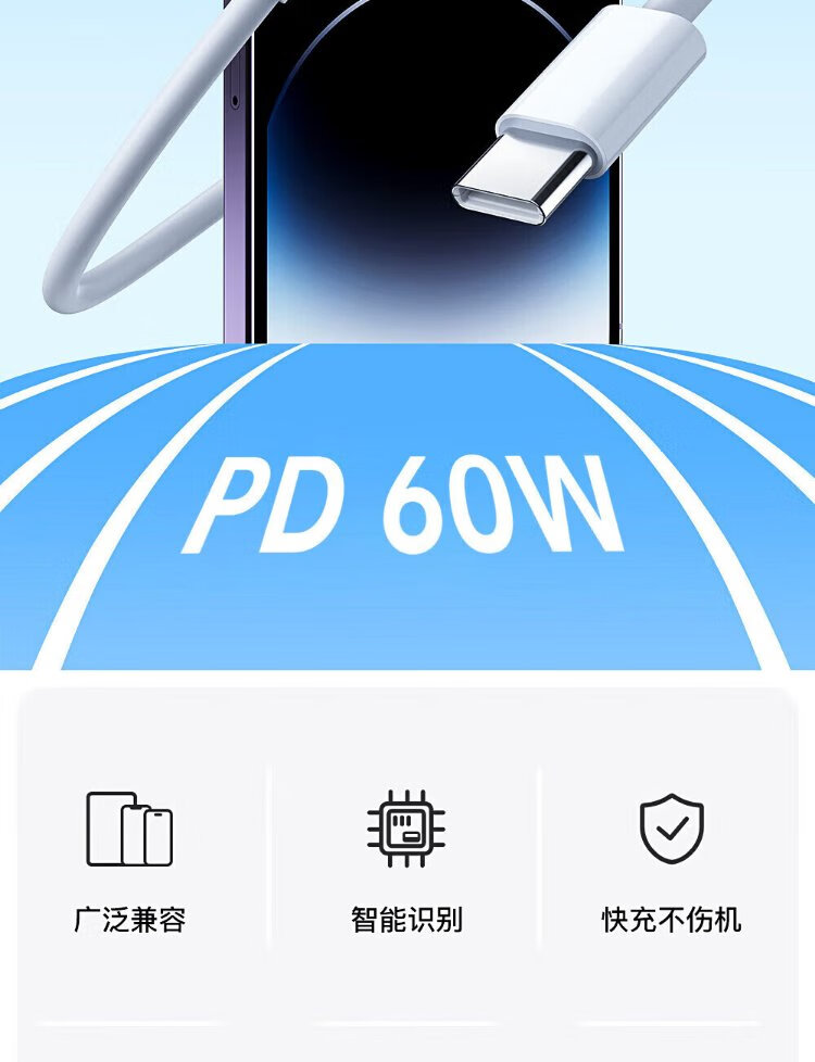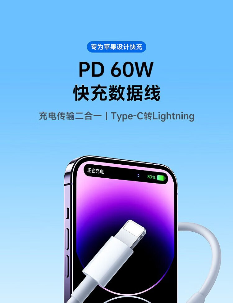 Original authentic Apple charging cable 60W fast charging adapter original data cable iPhone14/13promax/12/11/8/XR mobile phone charger Apple 8-14 full series PD60W丨1 meter flash charging cable