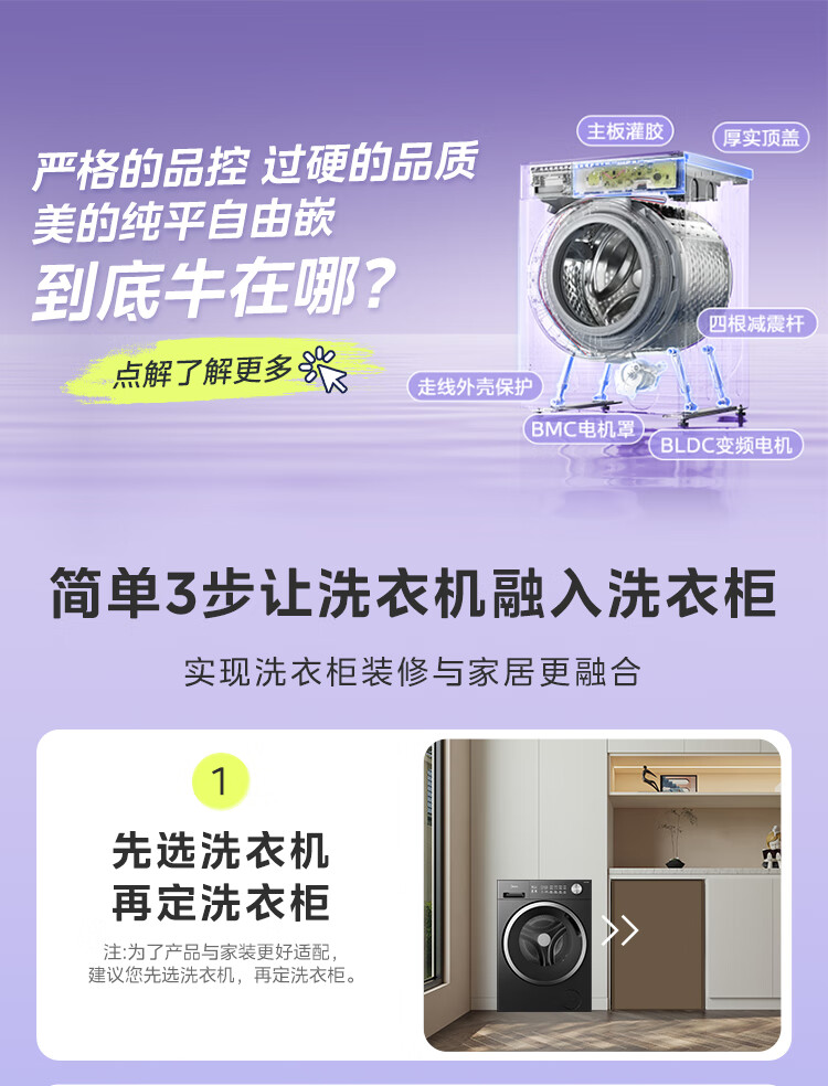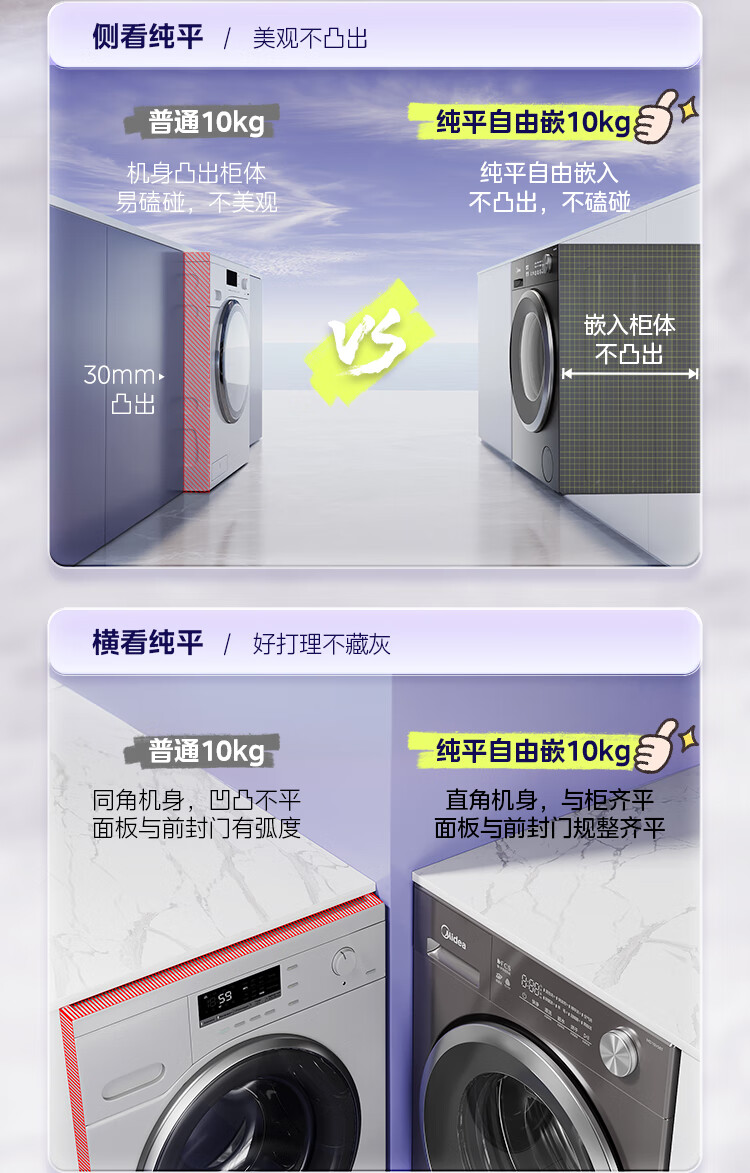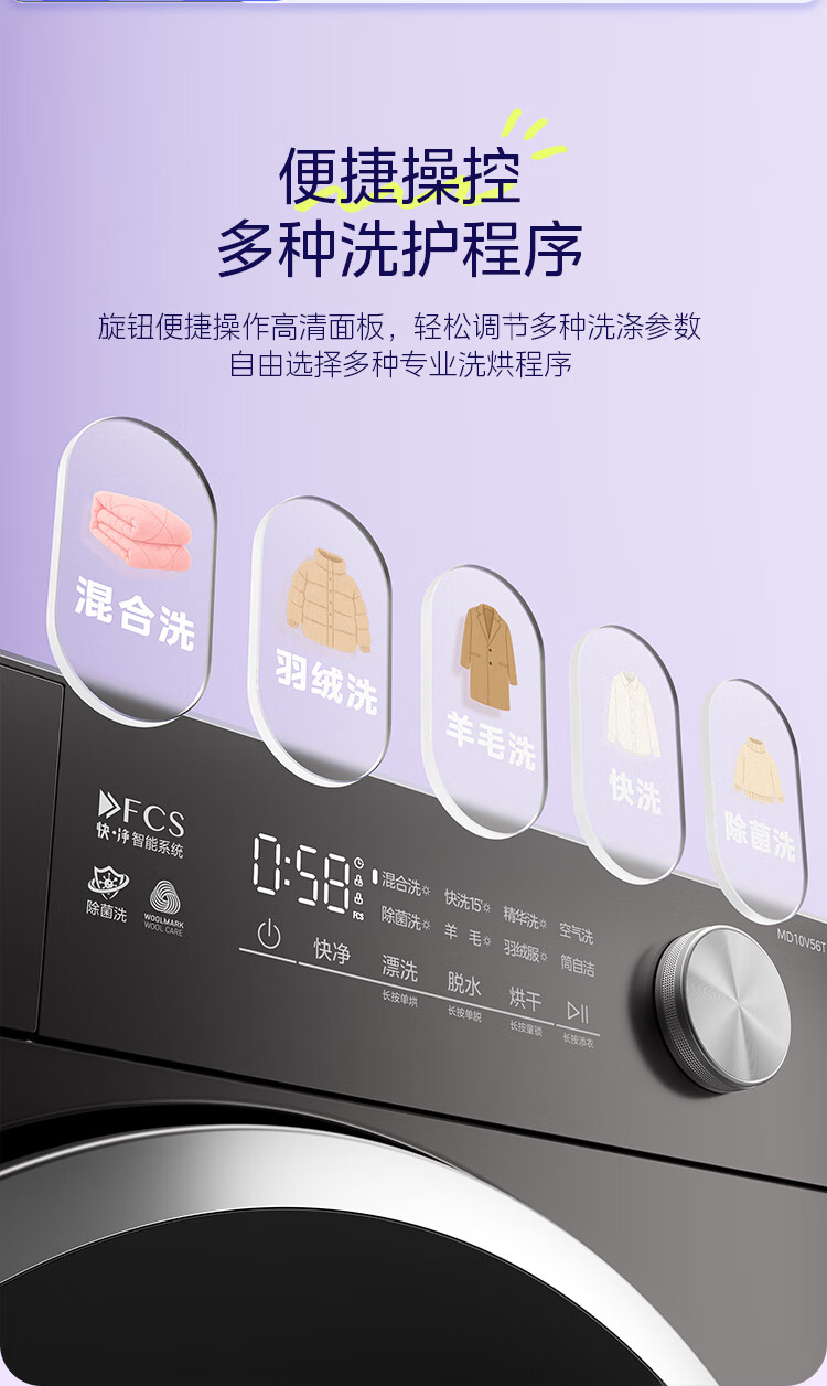 Midea 10kg variable frequency large capacity drum washing and drying all-in-one flat screen free inlay fast cleaning 2.0 technology essence washing 1.21 high cleaning ratio down cloud drying first level energy efficiency MD10V56T integrated washing and drying 10kg