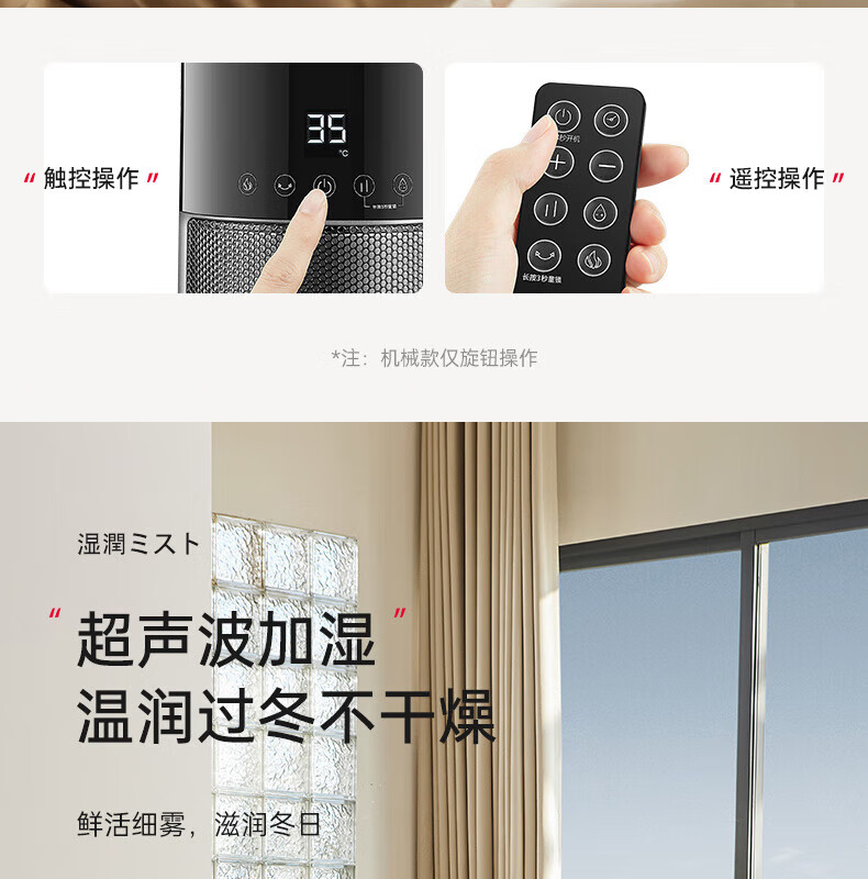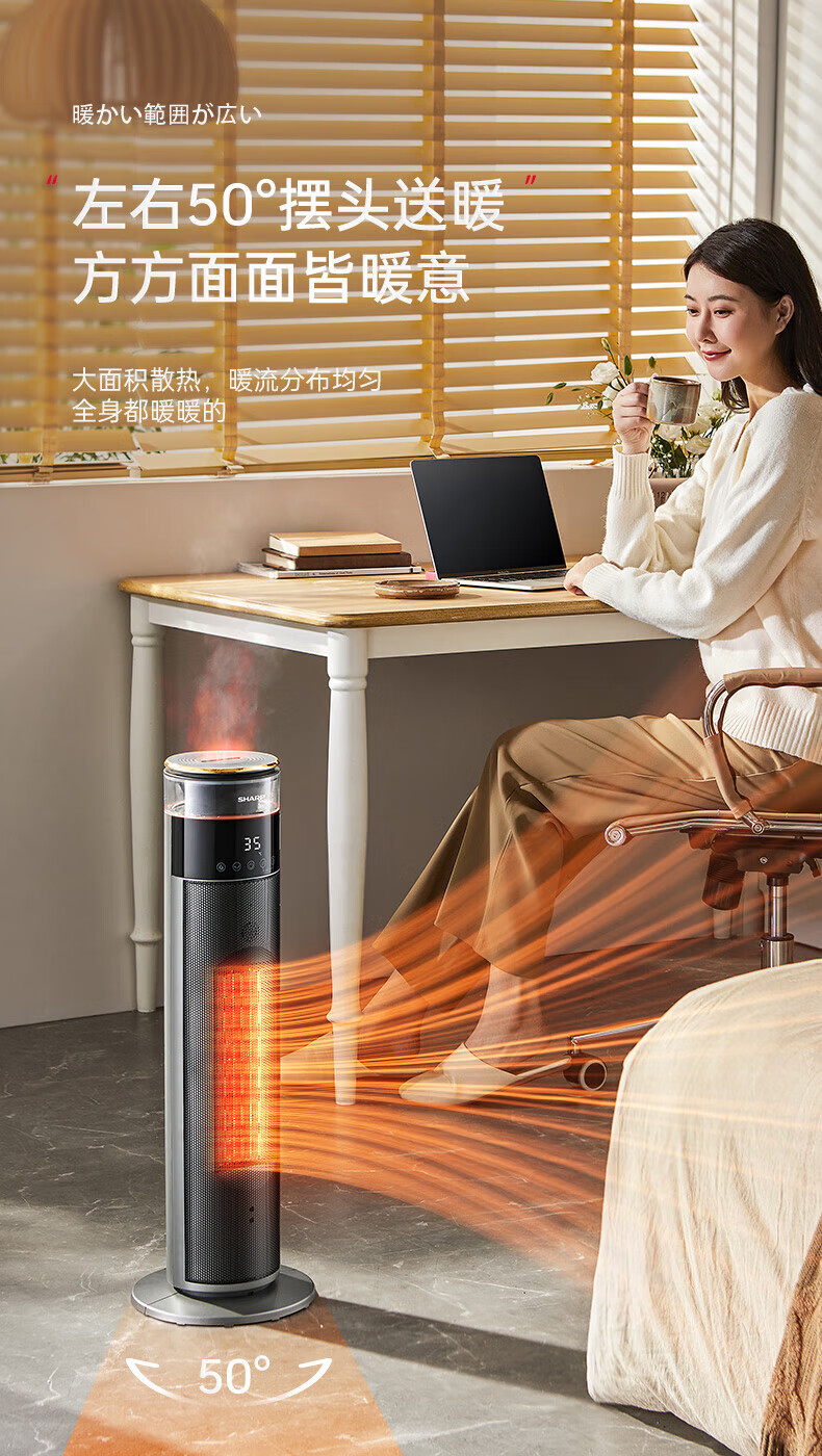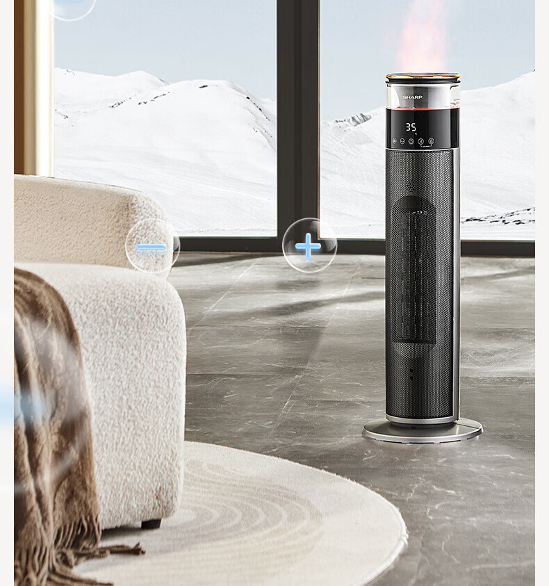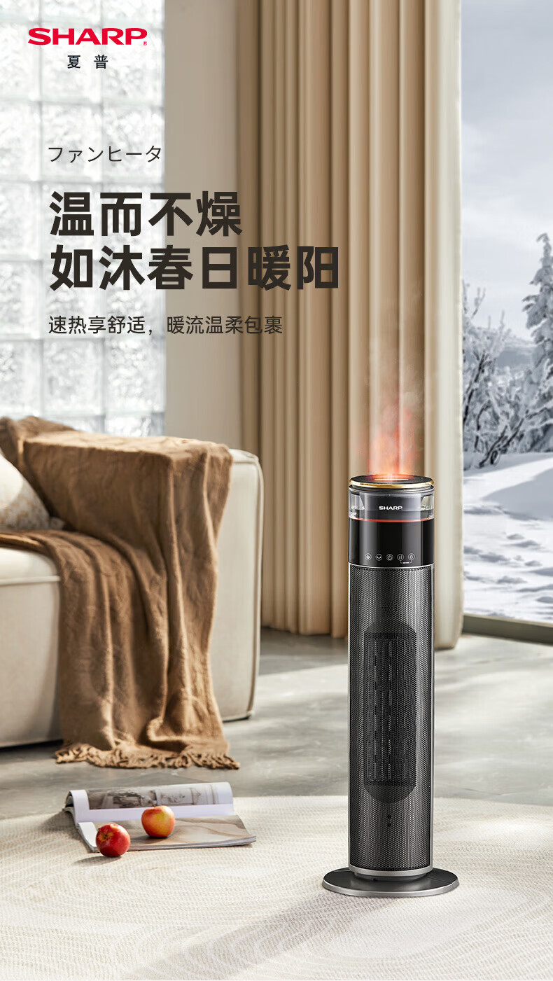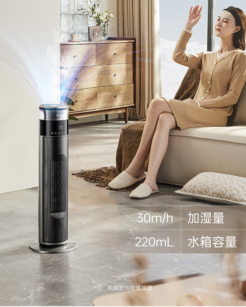 Sharp heater household vertical quick-heating office shaking head graphene electric heater humidification remote control with ion cluster purification heater tower electric heater mechanical model HX-FM225B-B