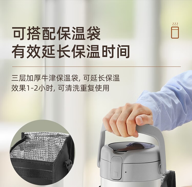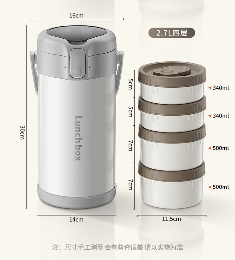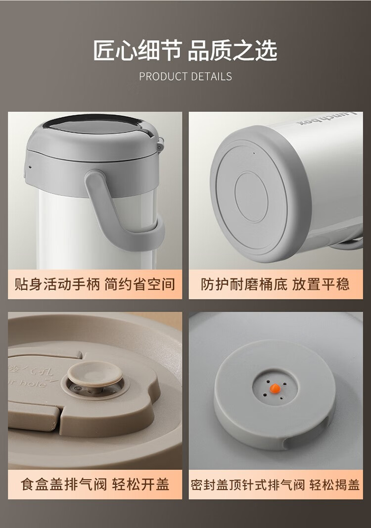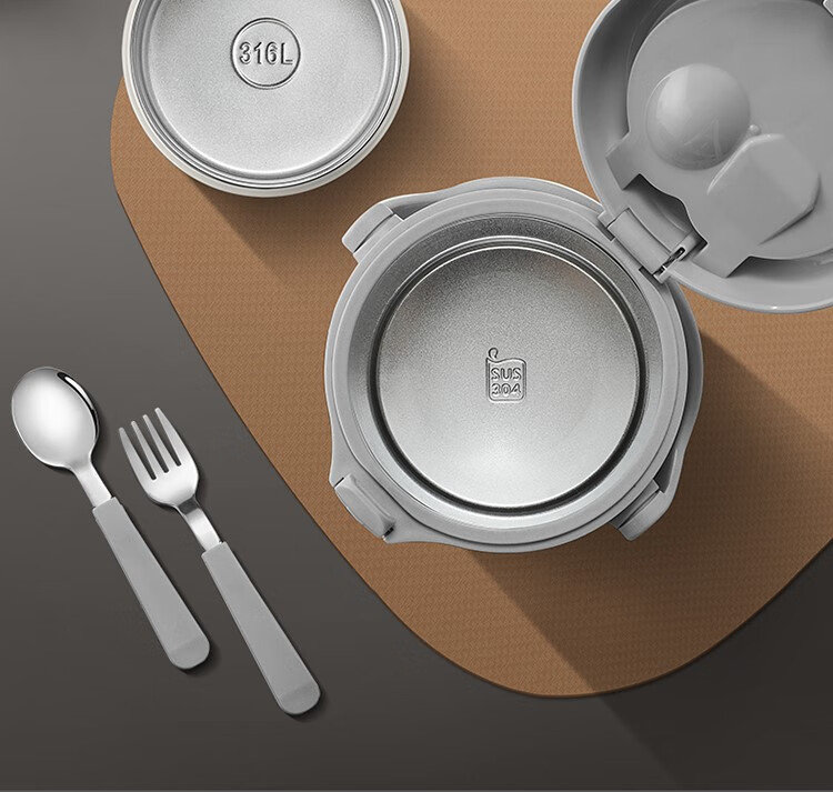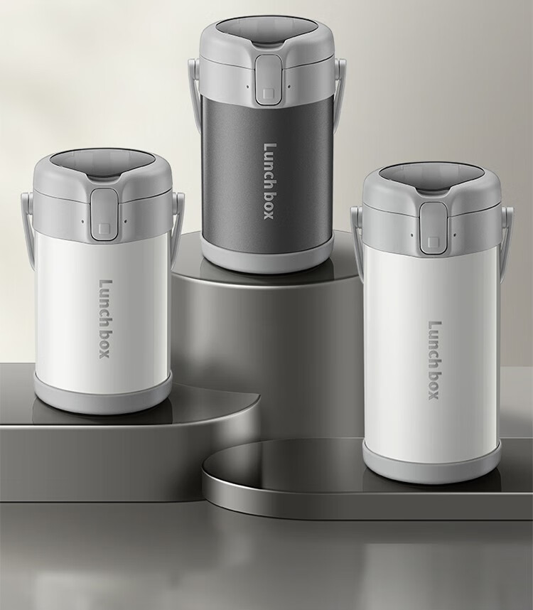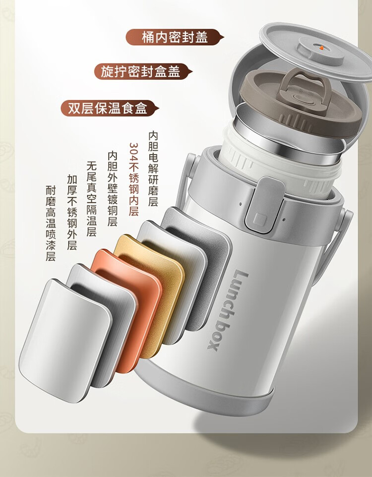 THERMOS insulated lunch box bucket for office workers and students, large-capacity stainless steel 24-hour ultra-long portable multi-layered lunch box, gun ash 2.2L-3 layers-insulated double layer anti-scalding 316