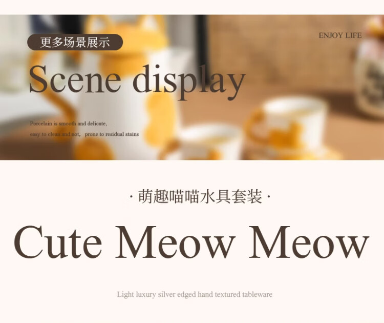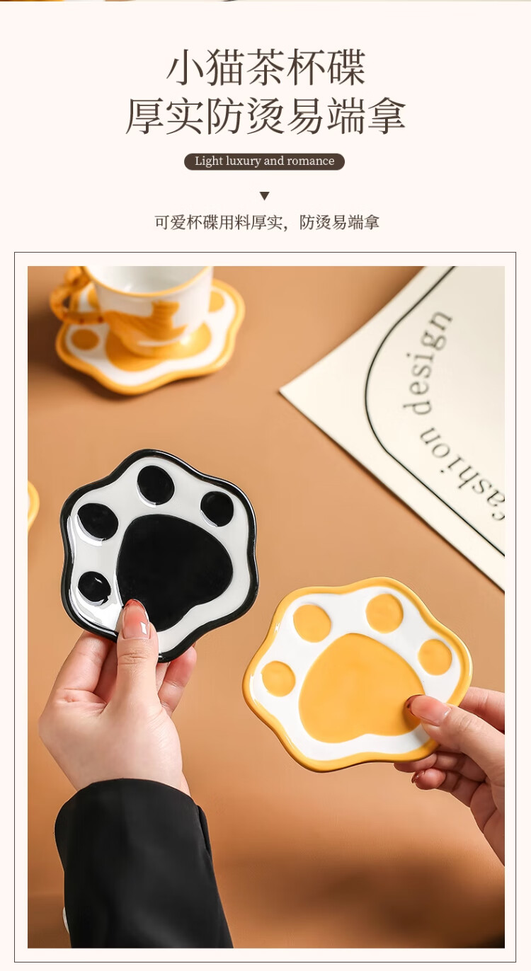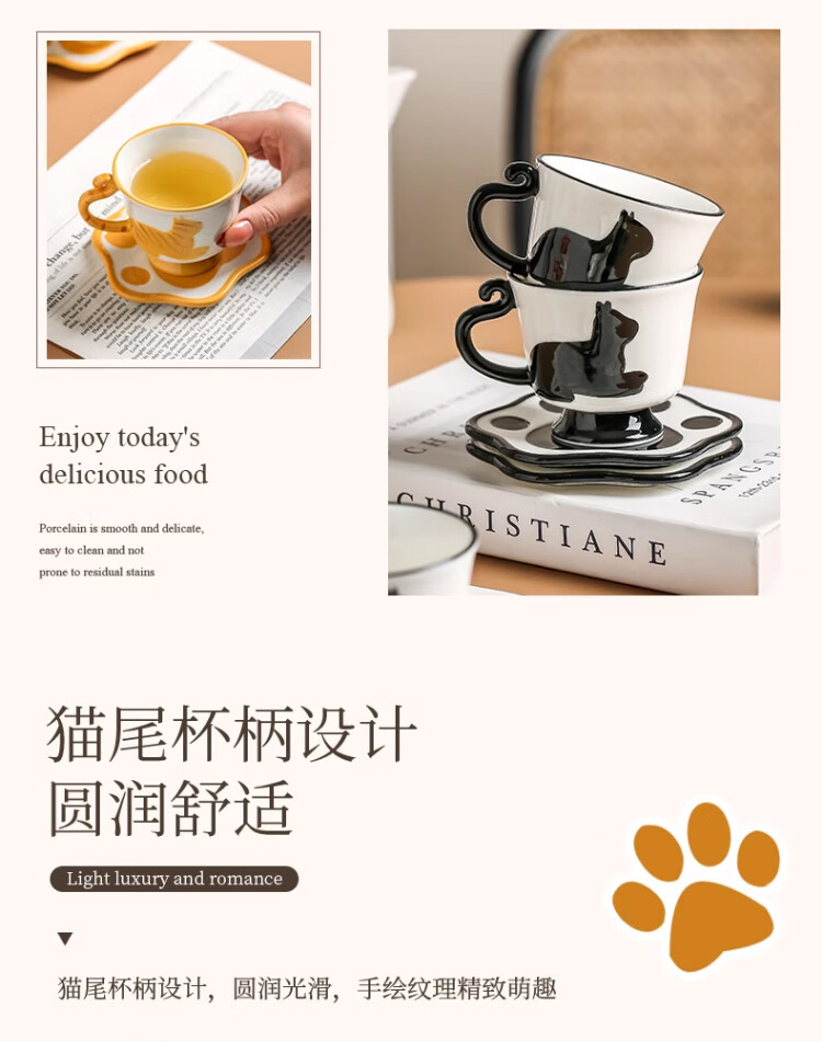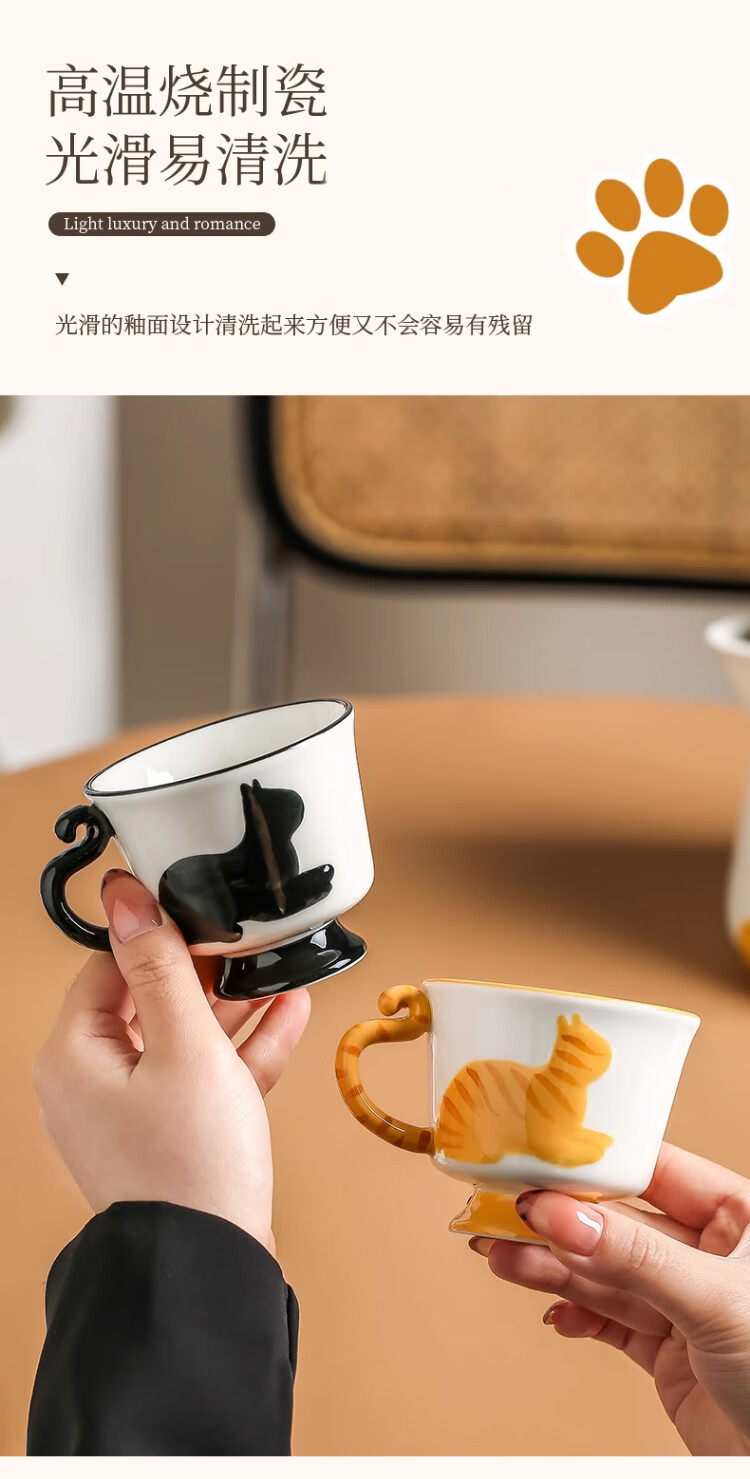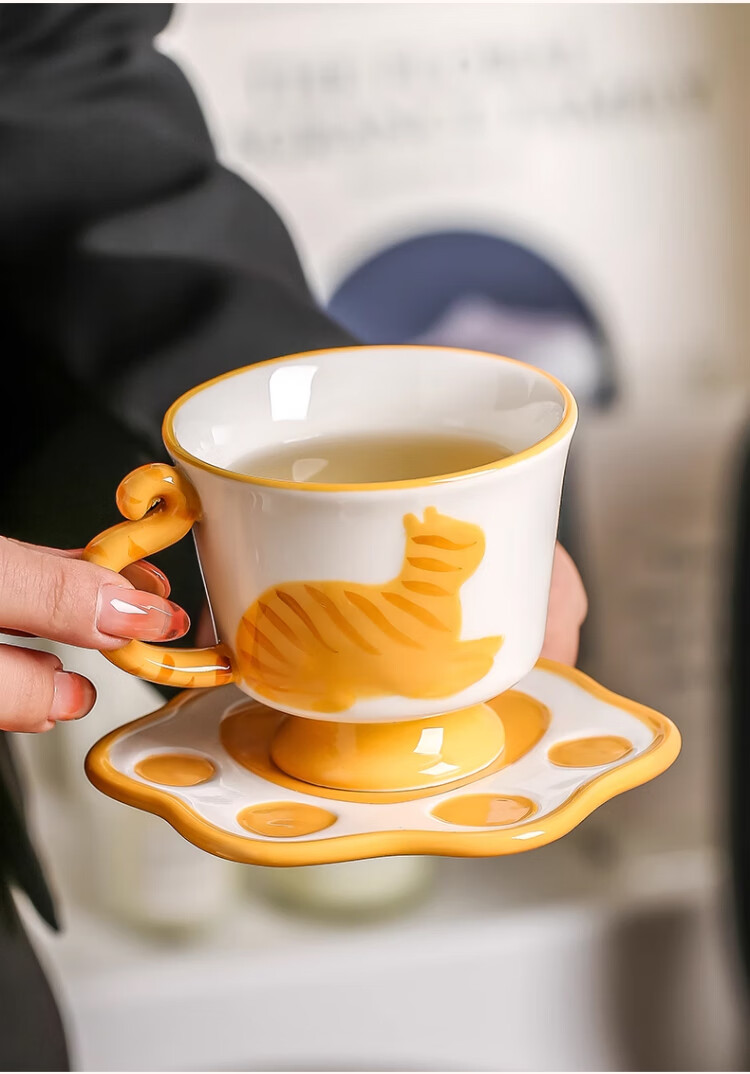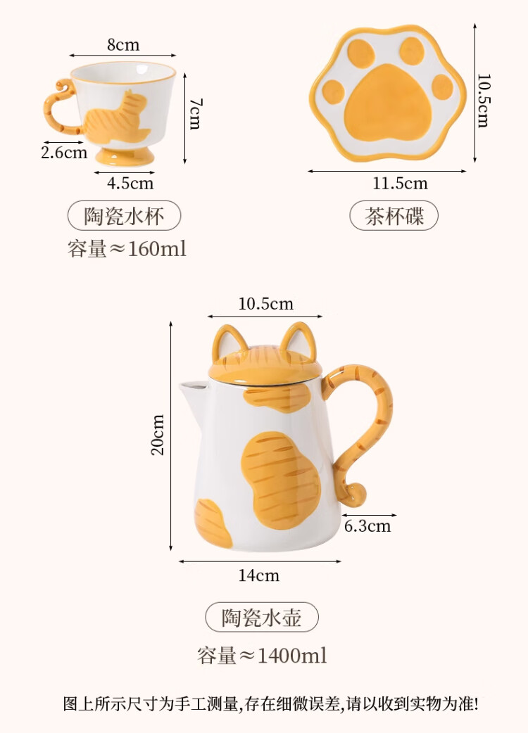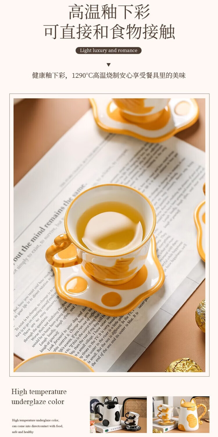 Qingbilin moves into a new home tea set ceramic cup kettle water set teapot afternoon tea wedding engagement gift for the newlyweds cat brown and white 5 pieces one pot two cups two saucers