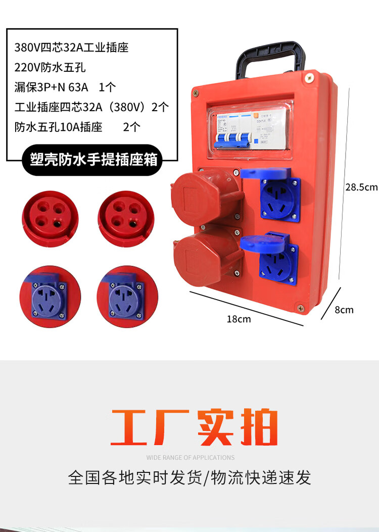 Transparent leak-proof portable waterproof and anti-fall construction site three-level distribution box industrial socket plug-in strip with leak-proof one machine and one gate plastic one five-hole 10A