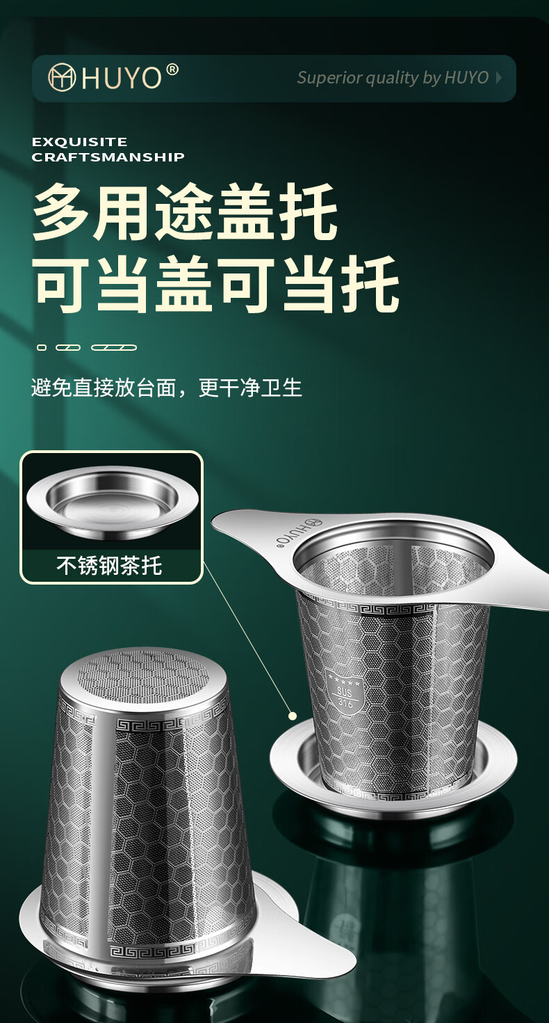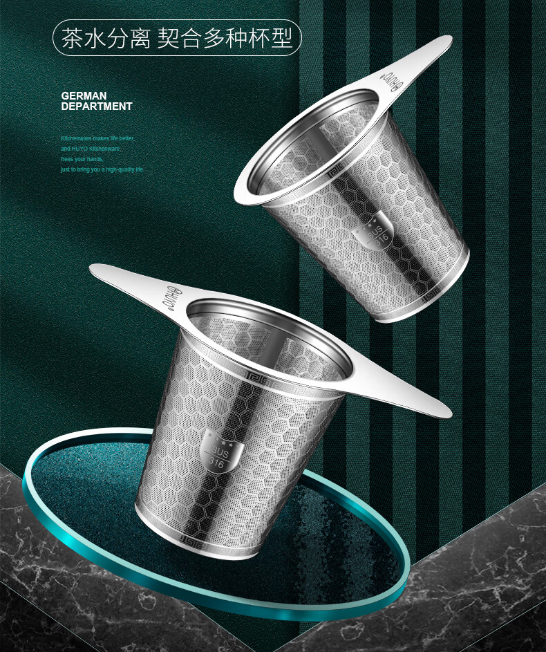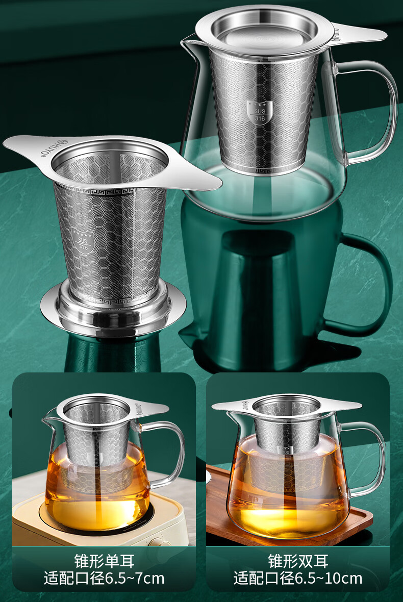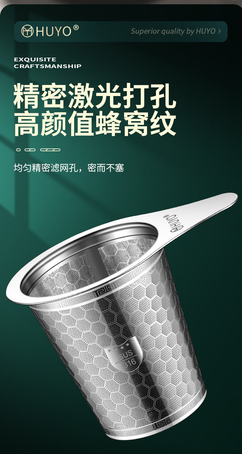 HUYO316 stainless steel tea leakage household conical tea water separator food grade tea filter dense mesh tea brewing fair cup 316 tea leakage binaural style suitable for cup mouth 6.5~10cm