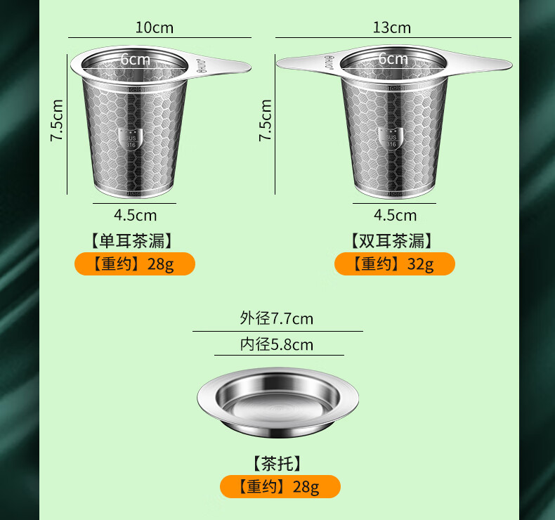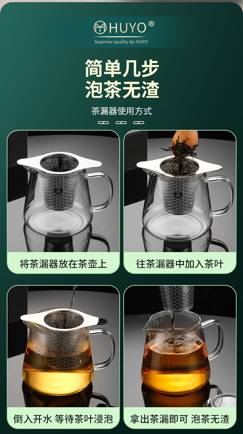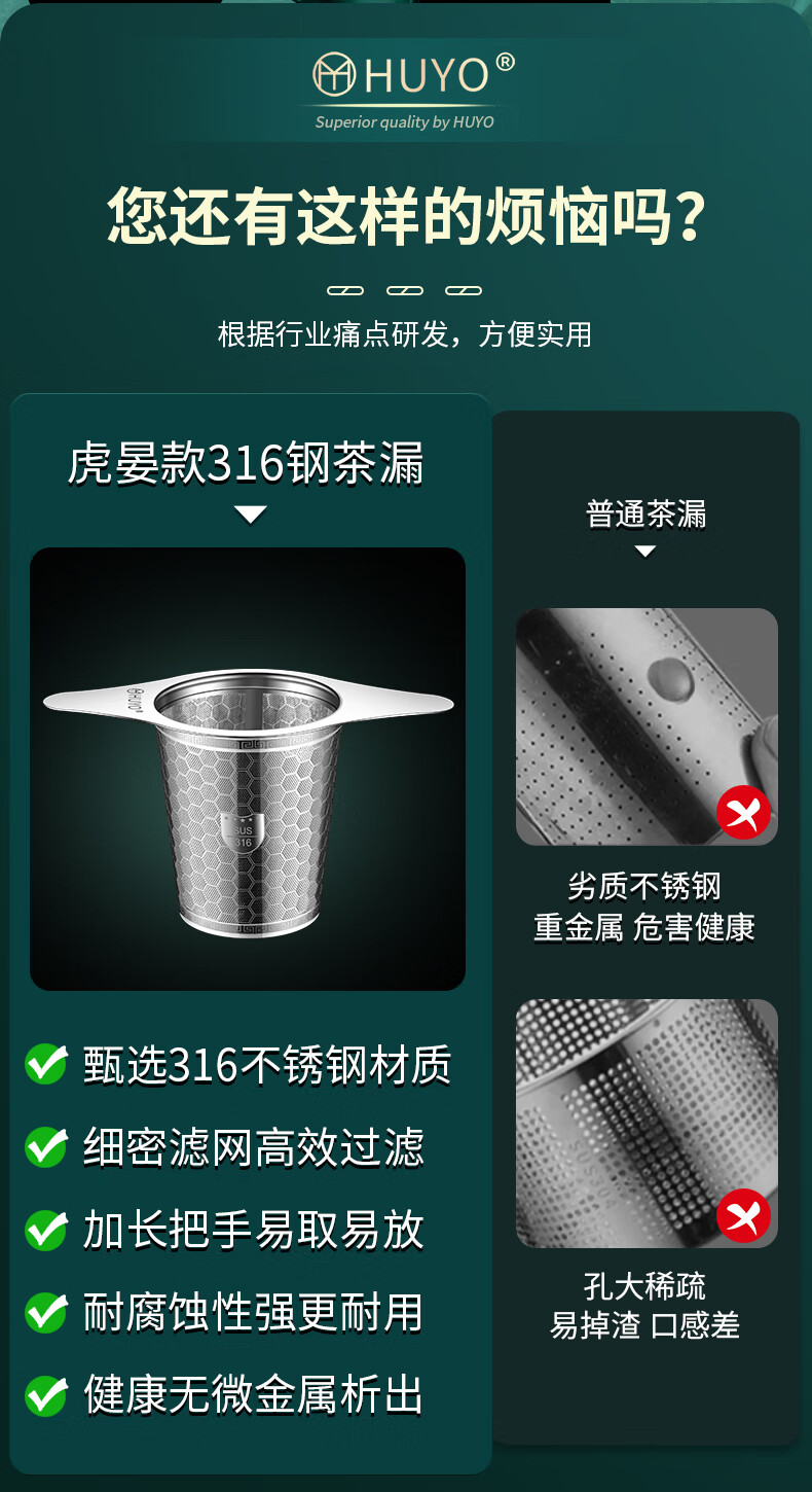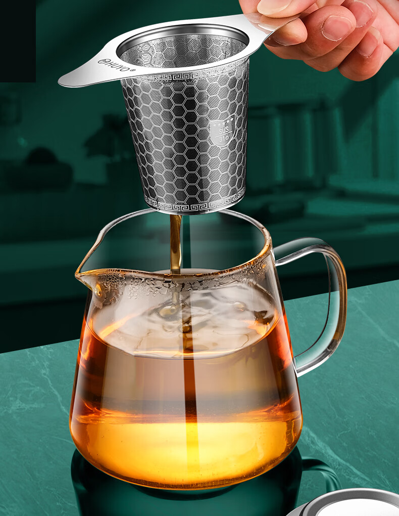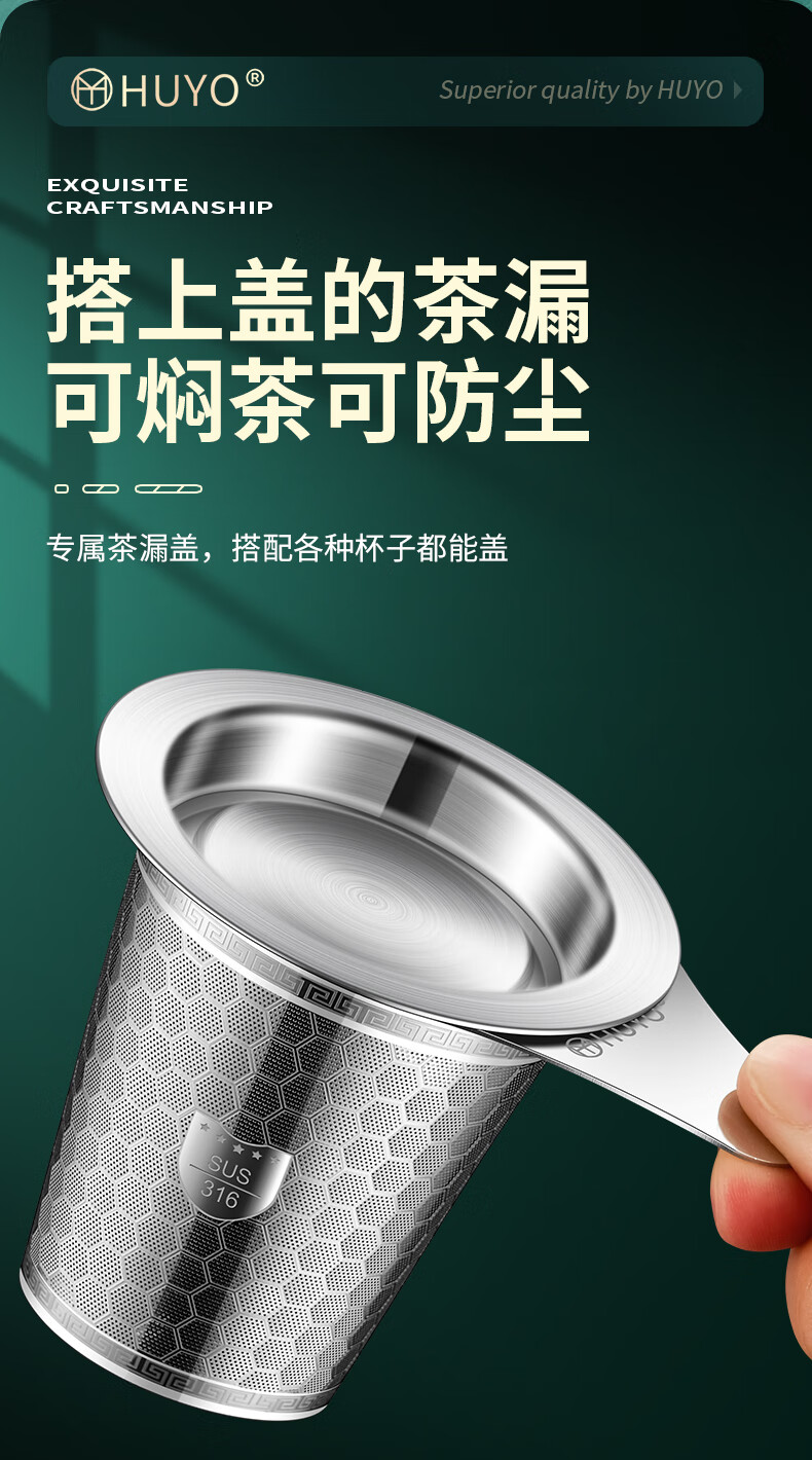 HUYO316 stainless steel tea leakage household conical tea water separator food grade tea filter dense mesh tea brewing fair cup 316 tea leakage binaural style suitable for cup mouth 6.5~10cm