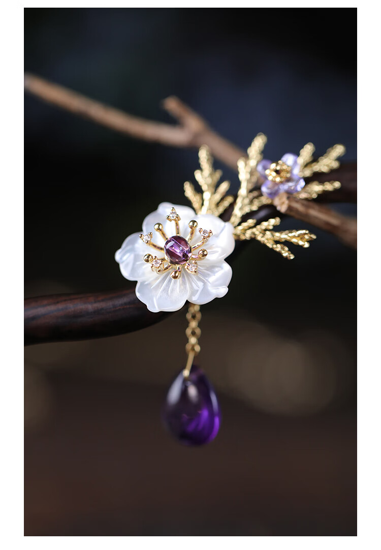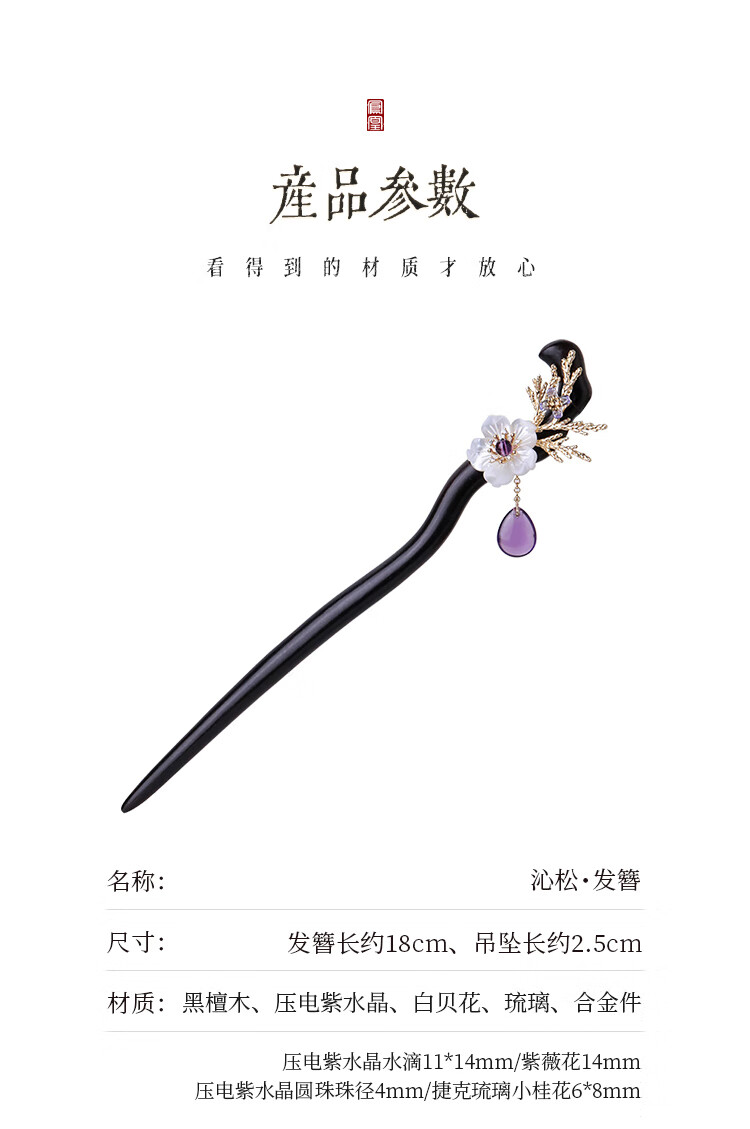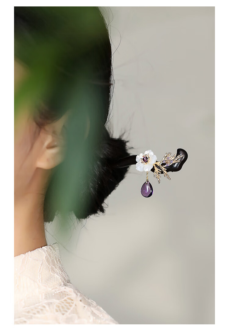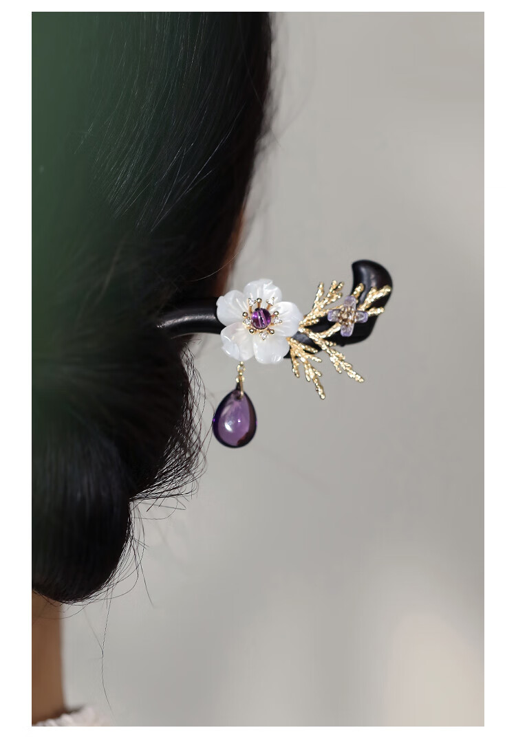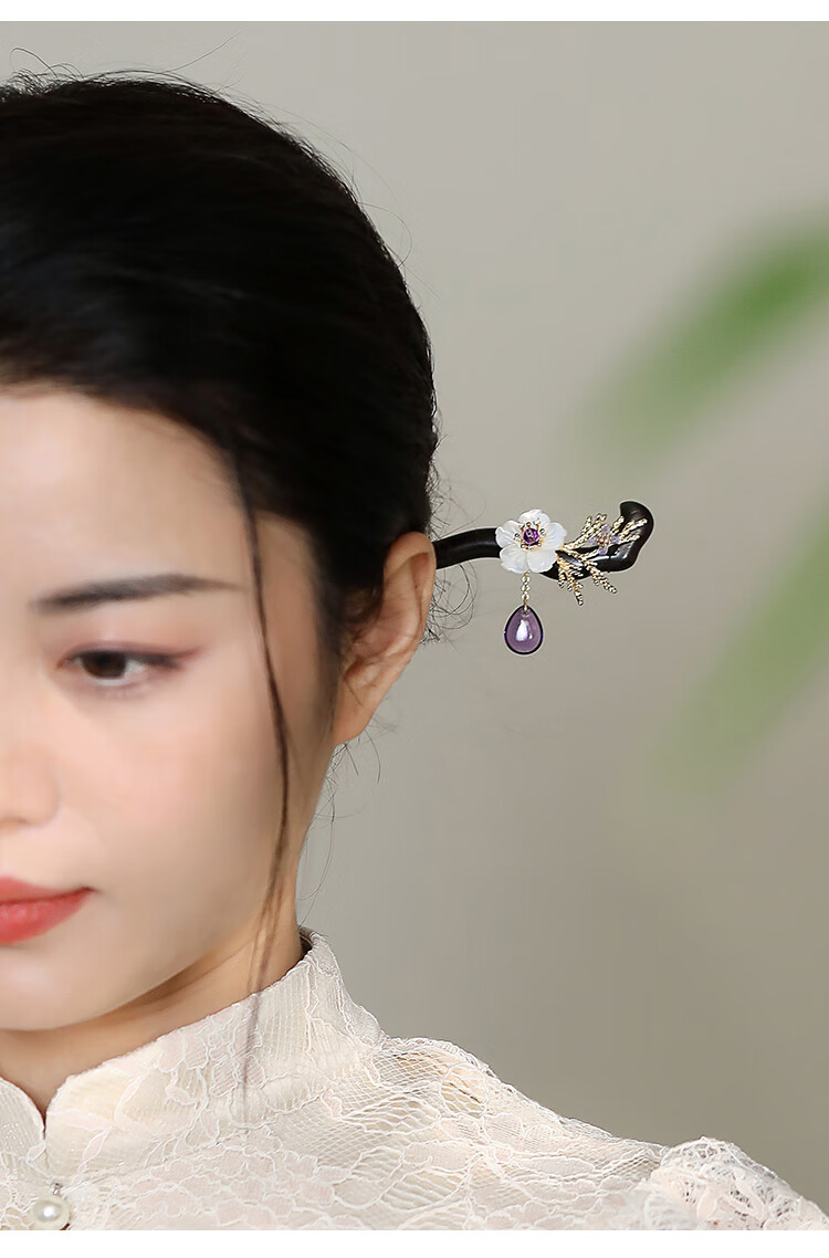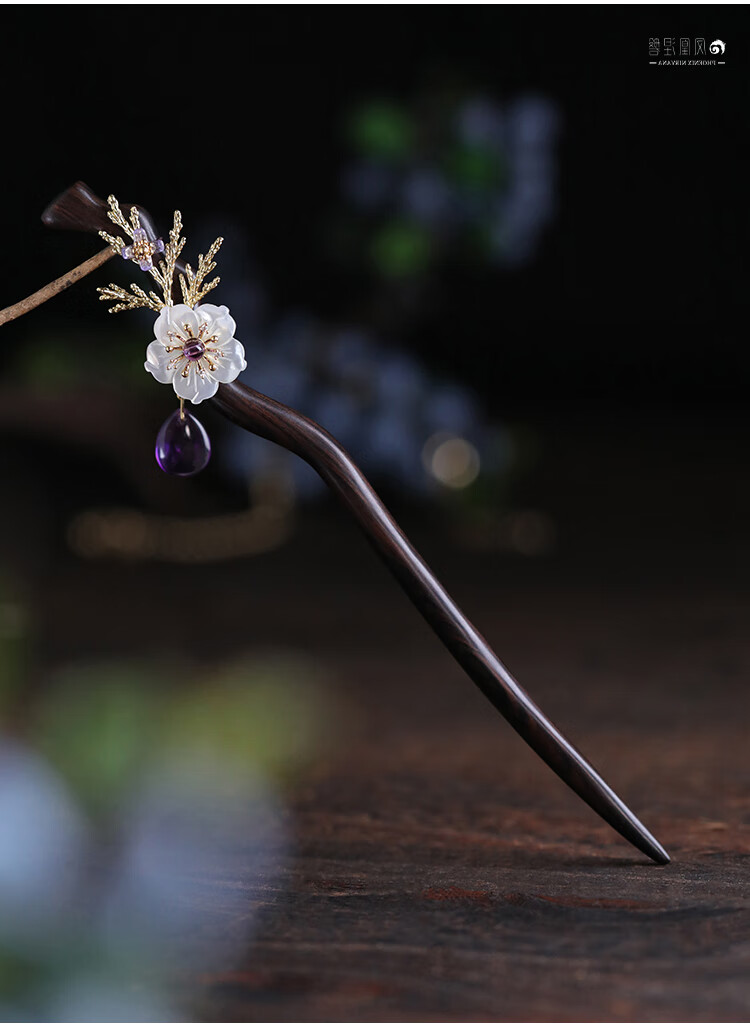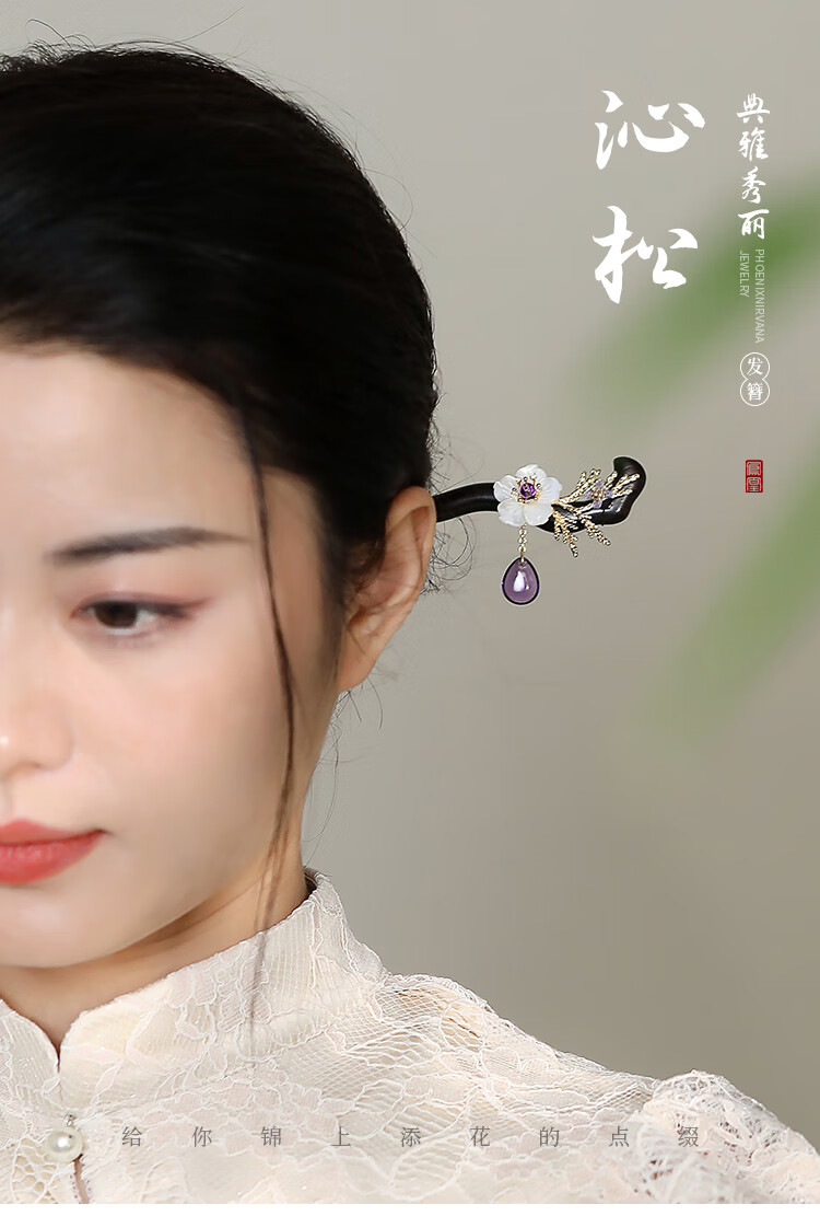 Phoenix Nirvana hairpin for women handmade sandalwood amethyst rocking wooden hairpin new Chinese style hairpin as a gift for girlfriend Qinsong hairpin