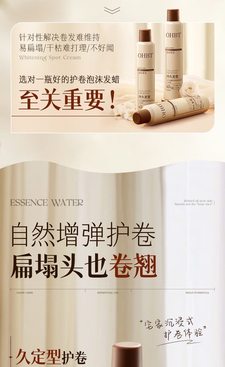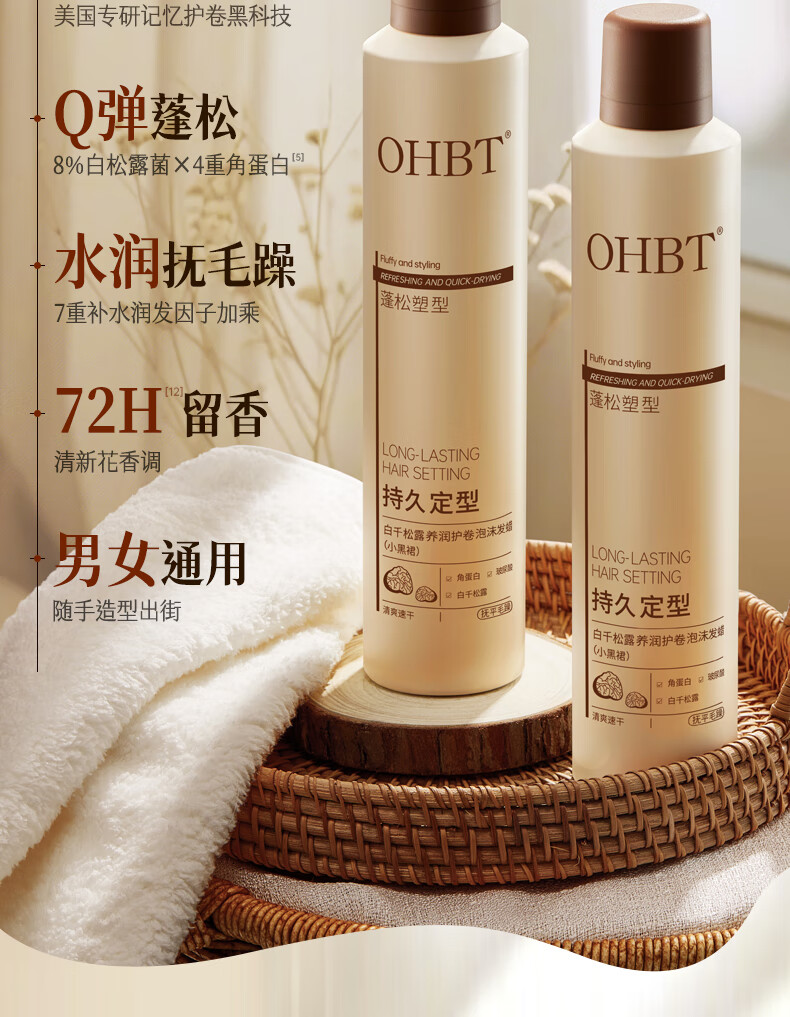OHBT Foam Hair Wax Curly Hair Elastin Moisturizing Natural Fluffy Wool Curl Management Bubble Mousse Styling Hair Gel for Men and Women Salon Same Style Nourishing Curl Foam Hair Wax 45