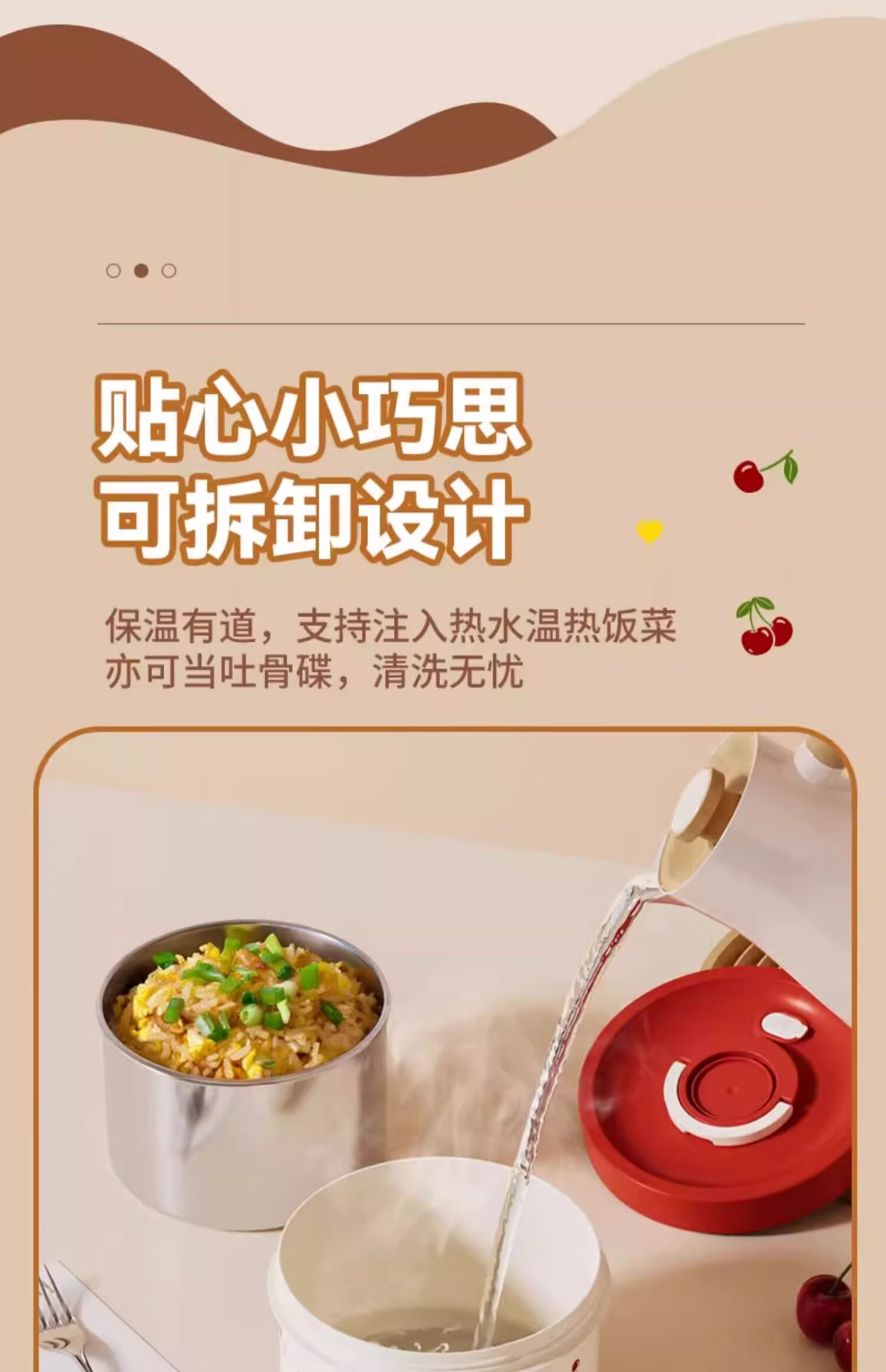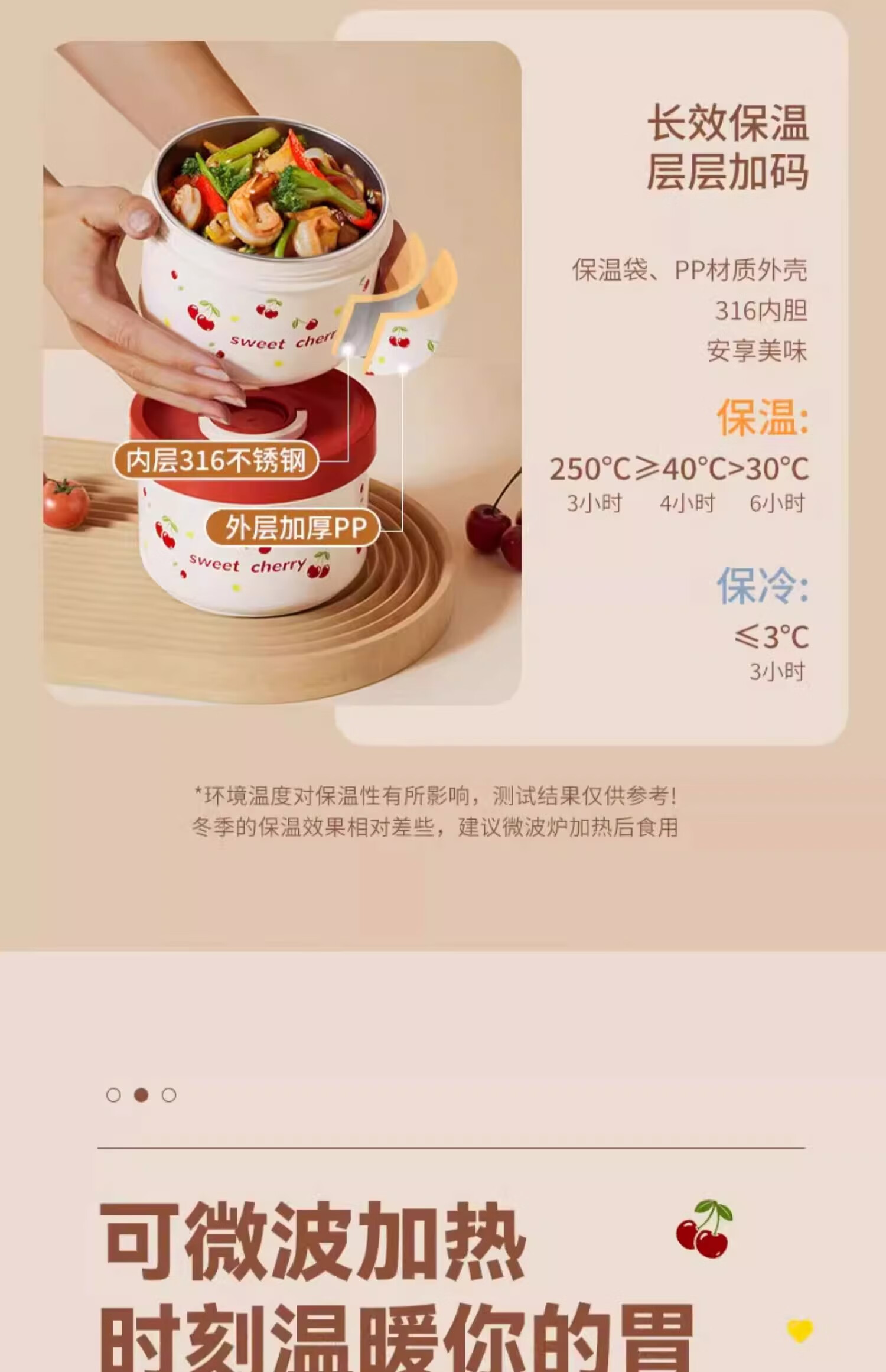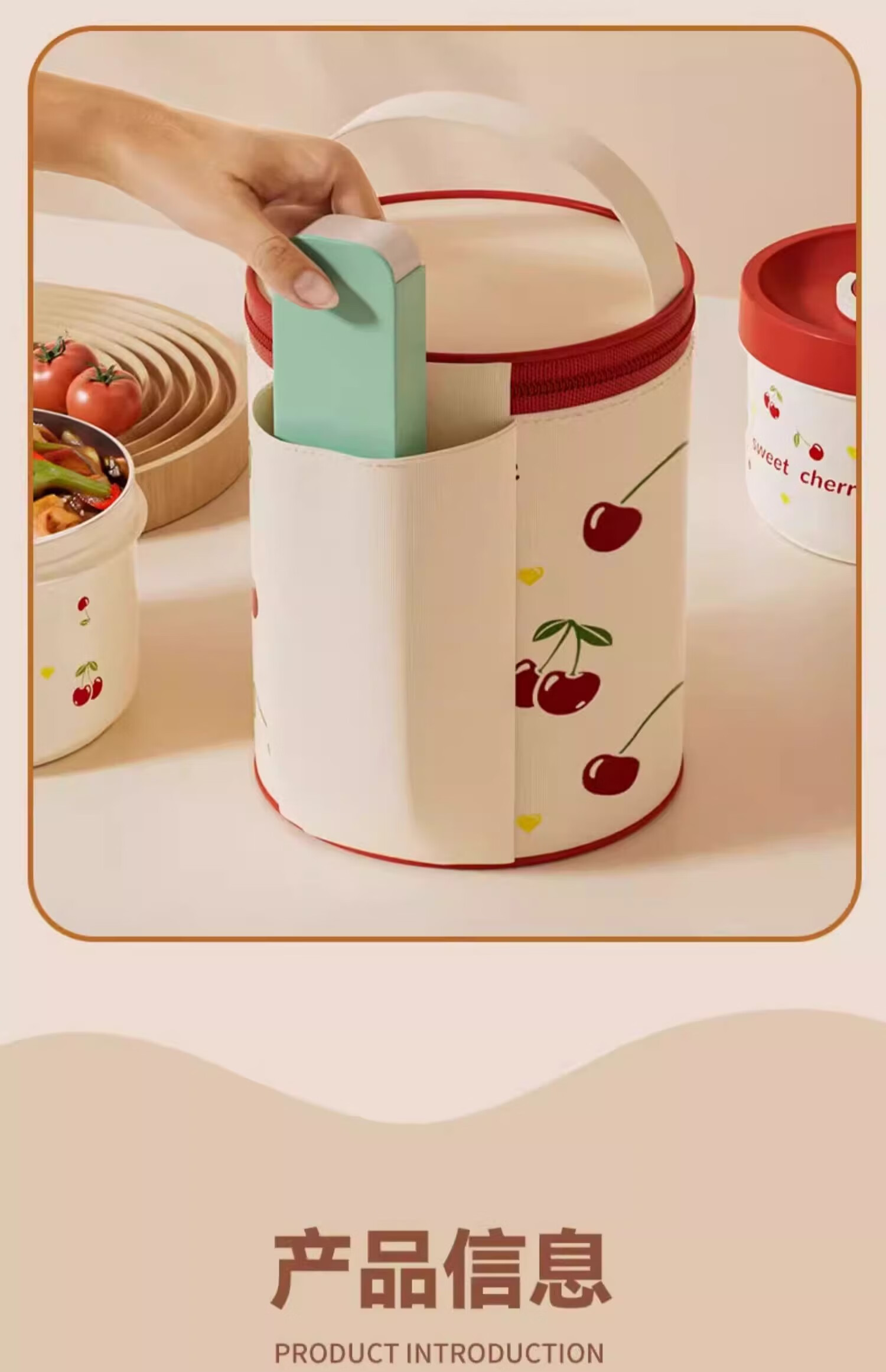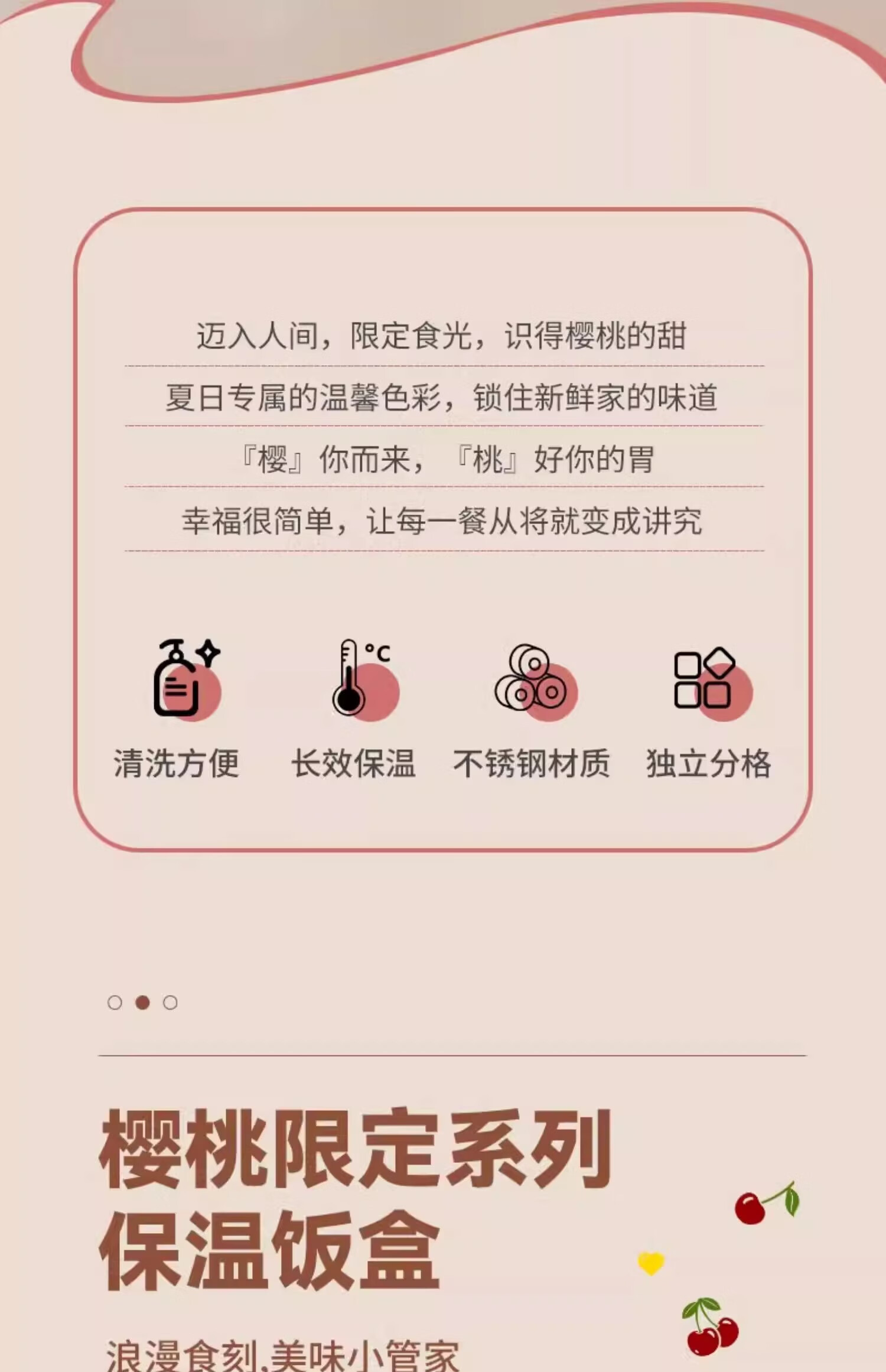 THERMOS Insulated Lunch Box Microwave Heated Office Lunch Box 2025 New Student Special Packed Lunch Box Bowl Three-Layer Cherry 2100ml + Insulation Bag