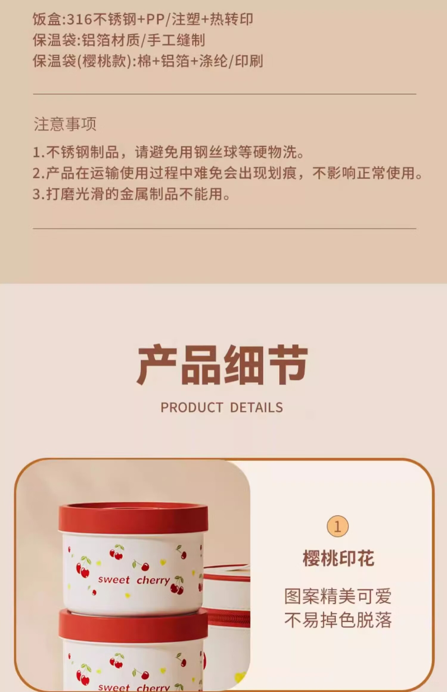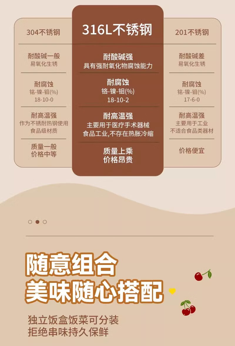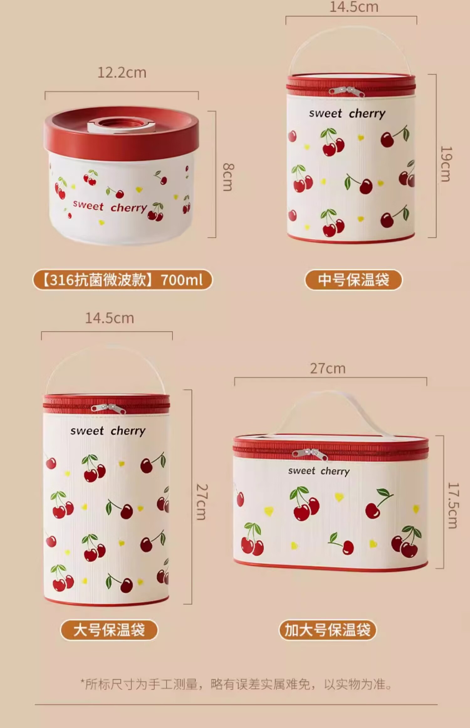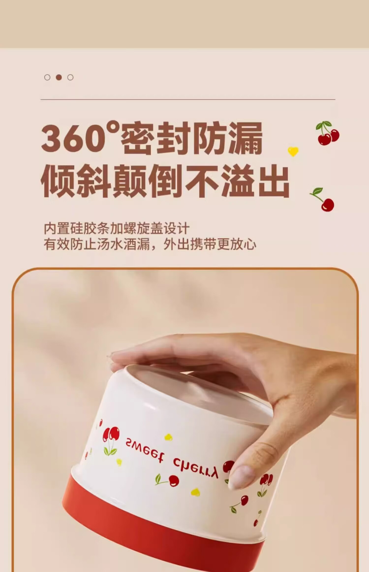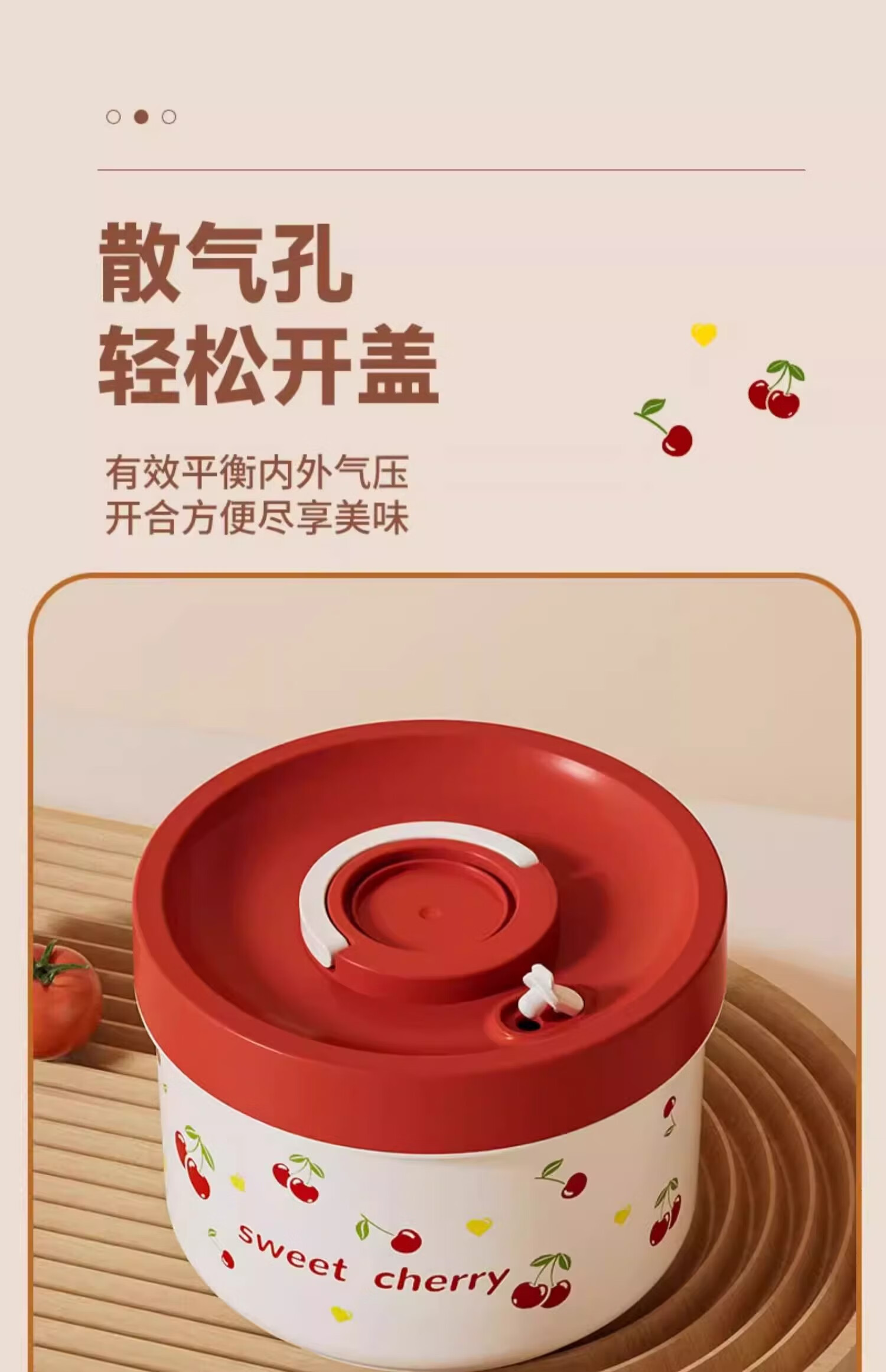 THERMOS Insulated Lunch Box Microwave Heated Office Lunch Box 2025 New Student Special Packed Lunch Box Bowl Three-Layer Cherry 2100ml + Insulation Bag
