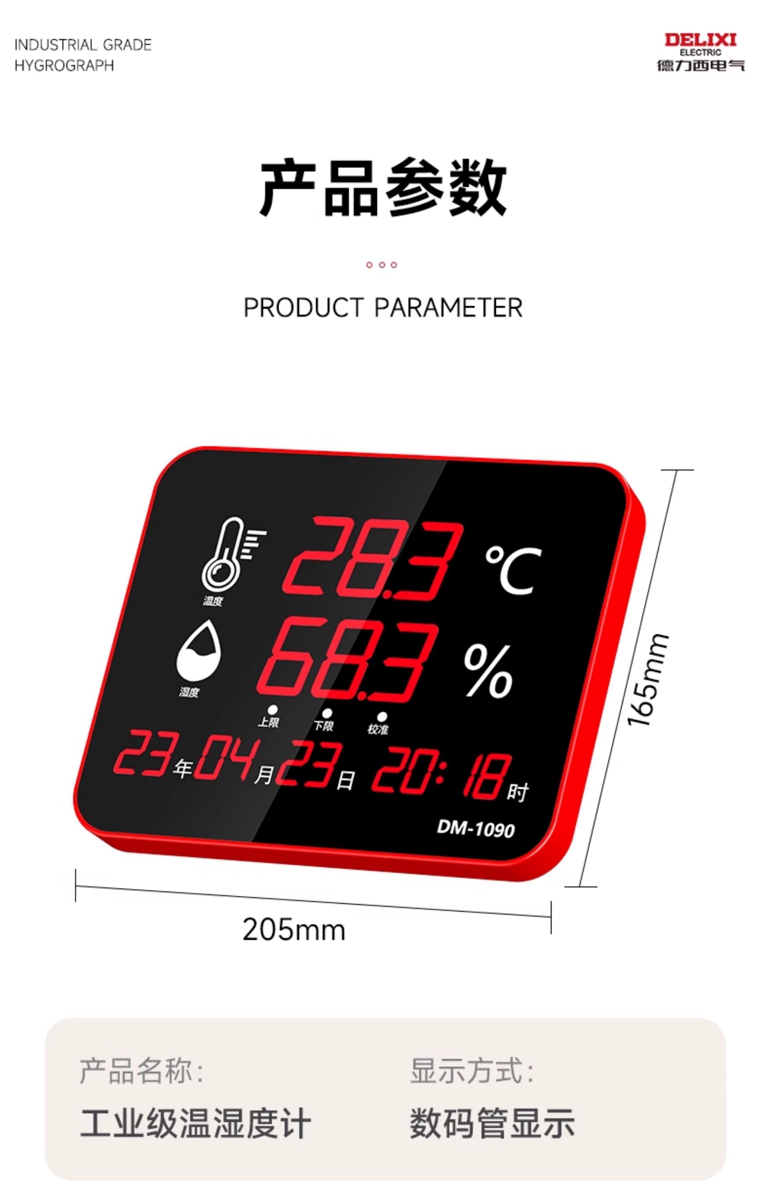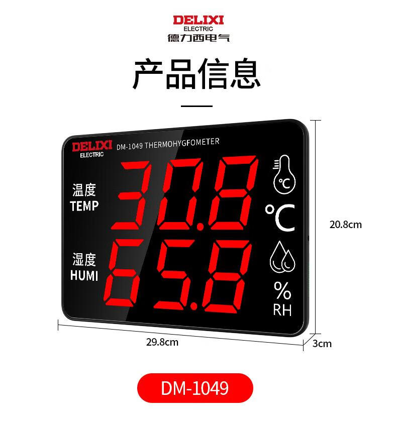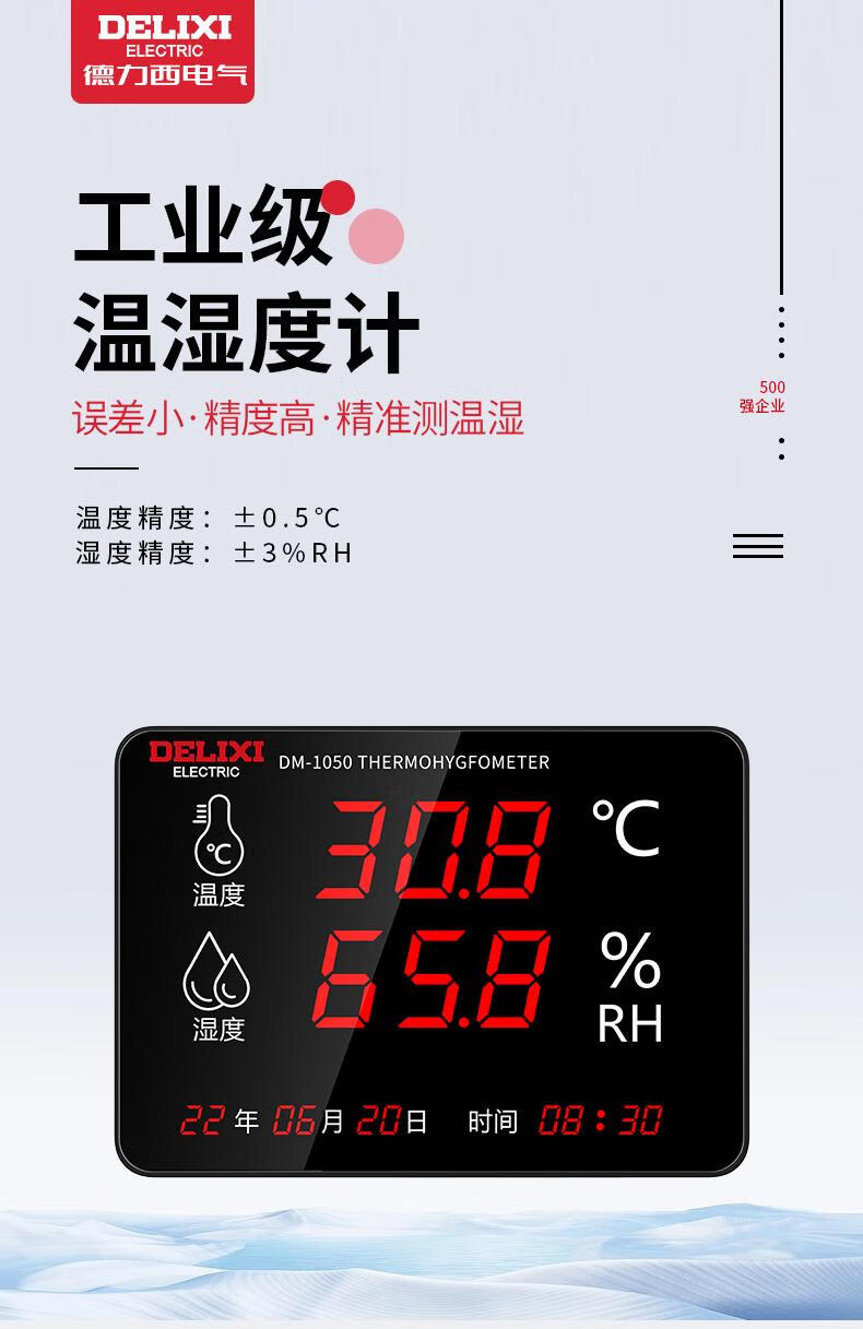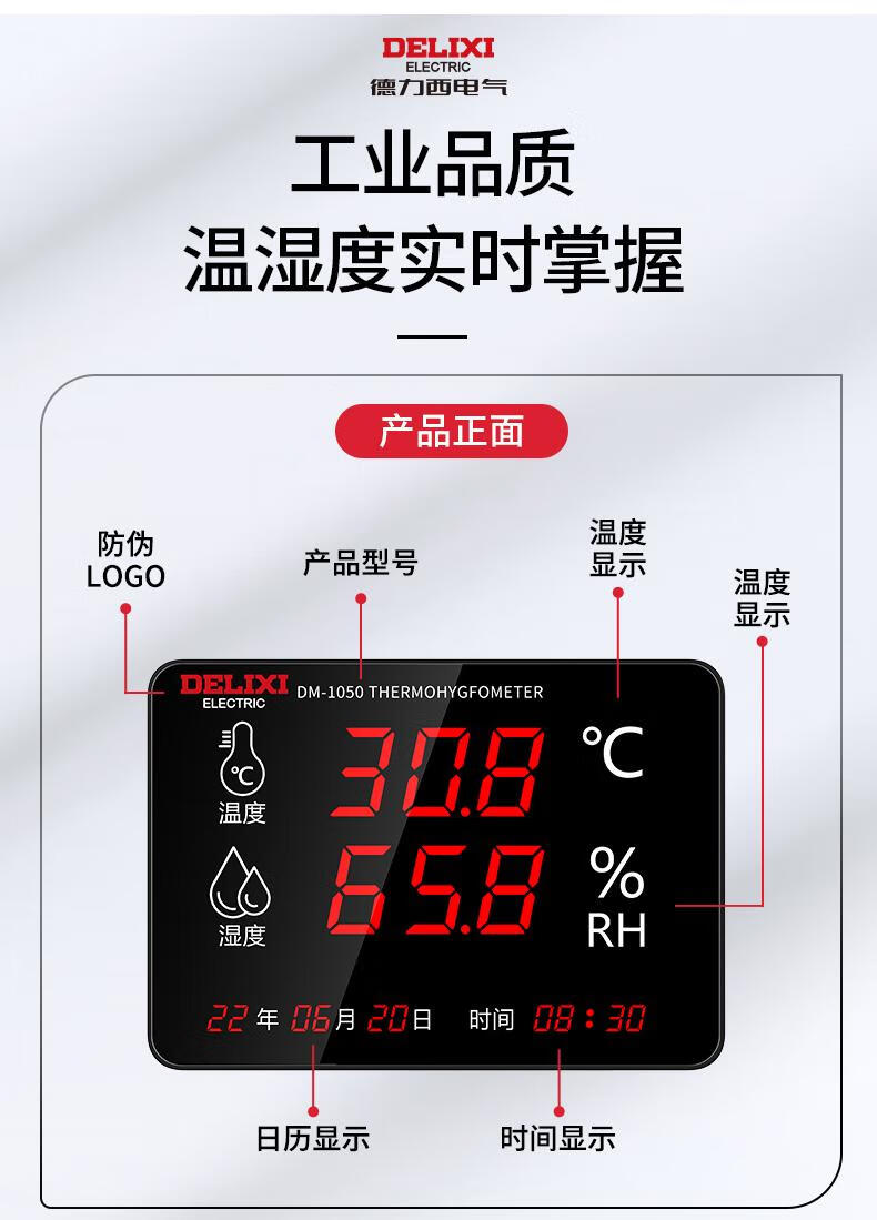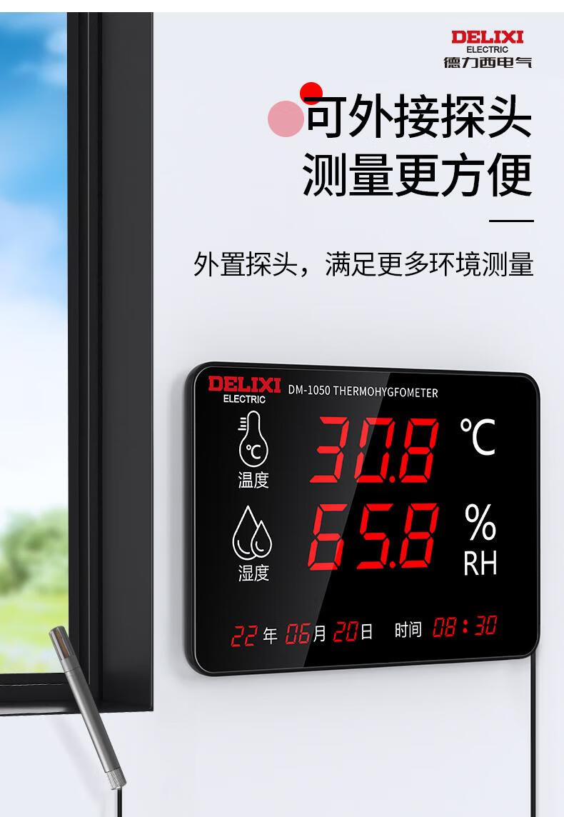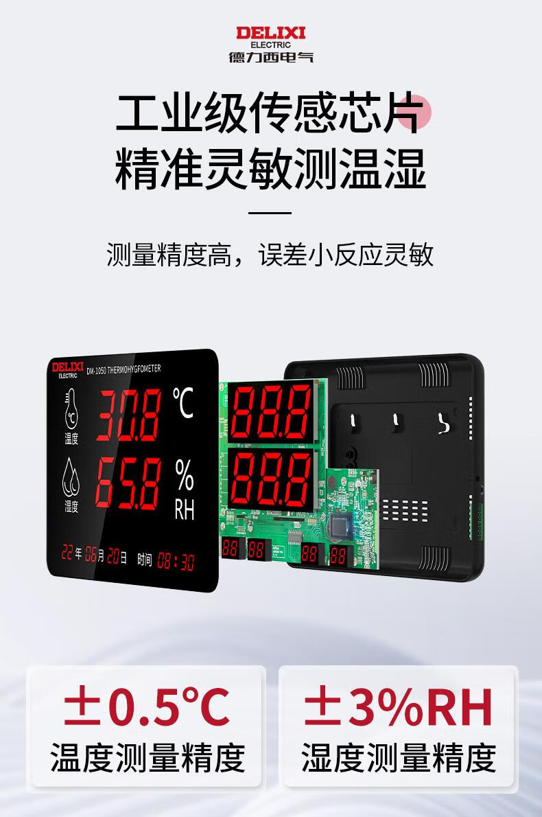Delixi temperature and humidity meter industrial electronic high-precision digital display warehouse workshop household indoor breeding greenhouse standard temperature and humidity monitoring industrial grade chip