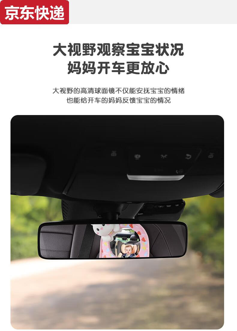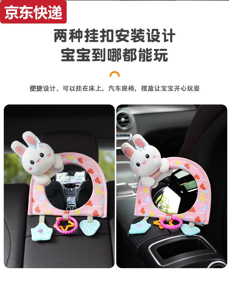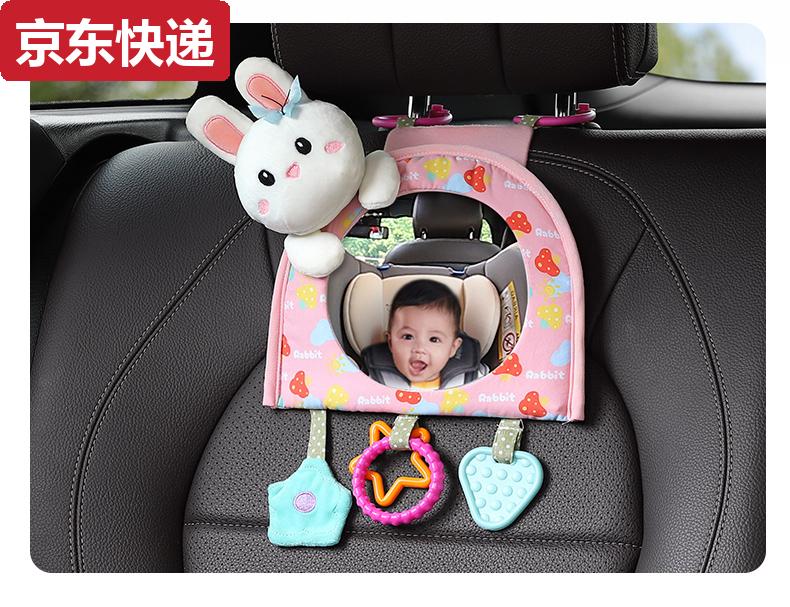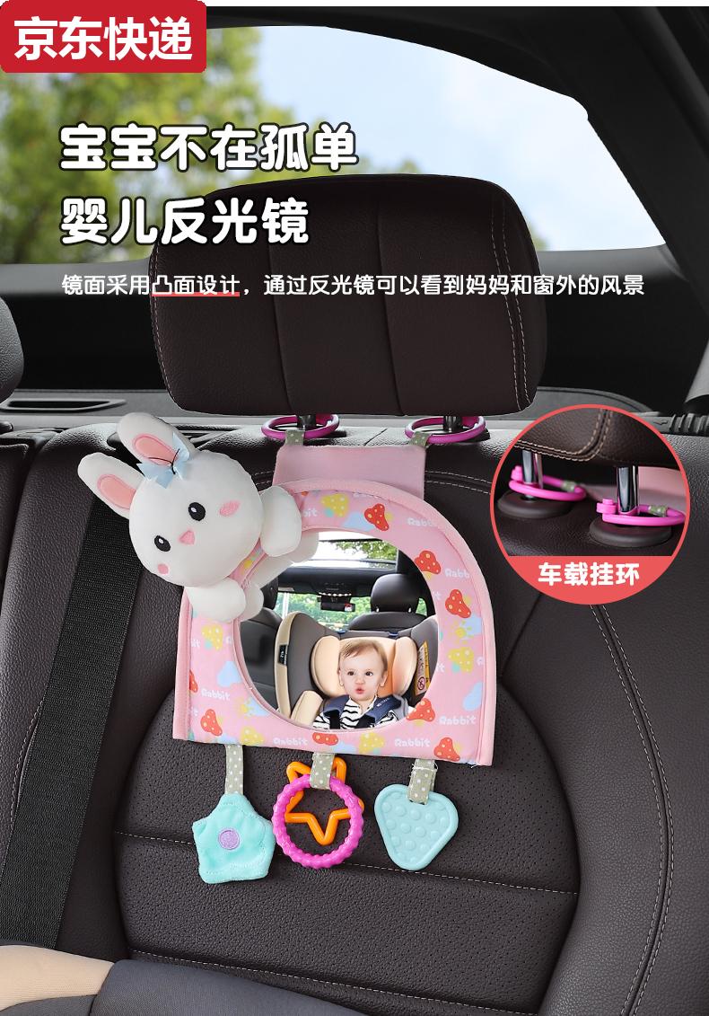 Blue color and car baby safety seat observation mirror, children's car rearview mirror, baby carrier mirror, interior blind spot reflector, bunny-safety seat observation mirror