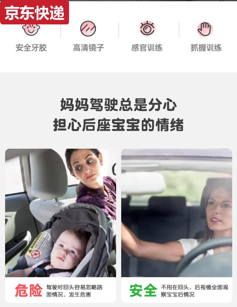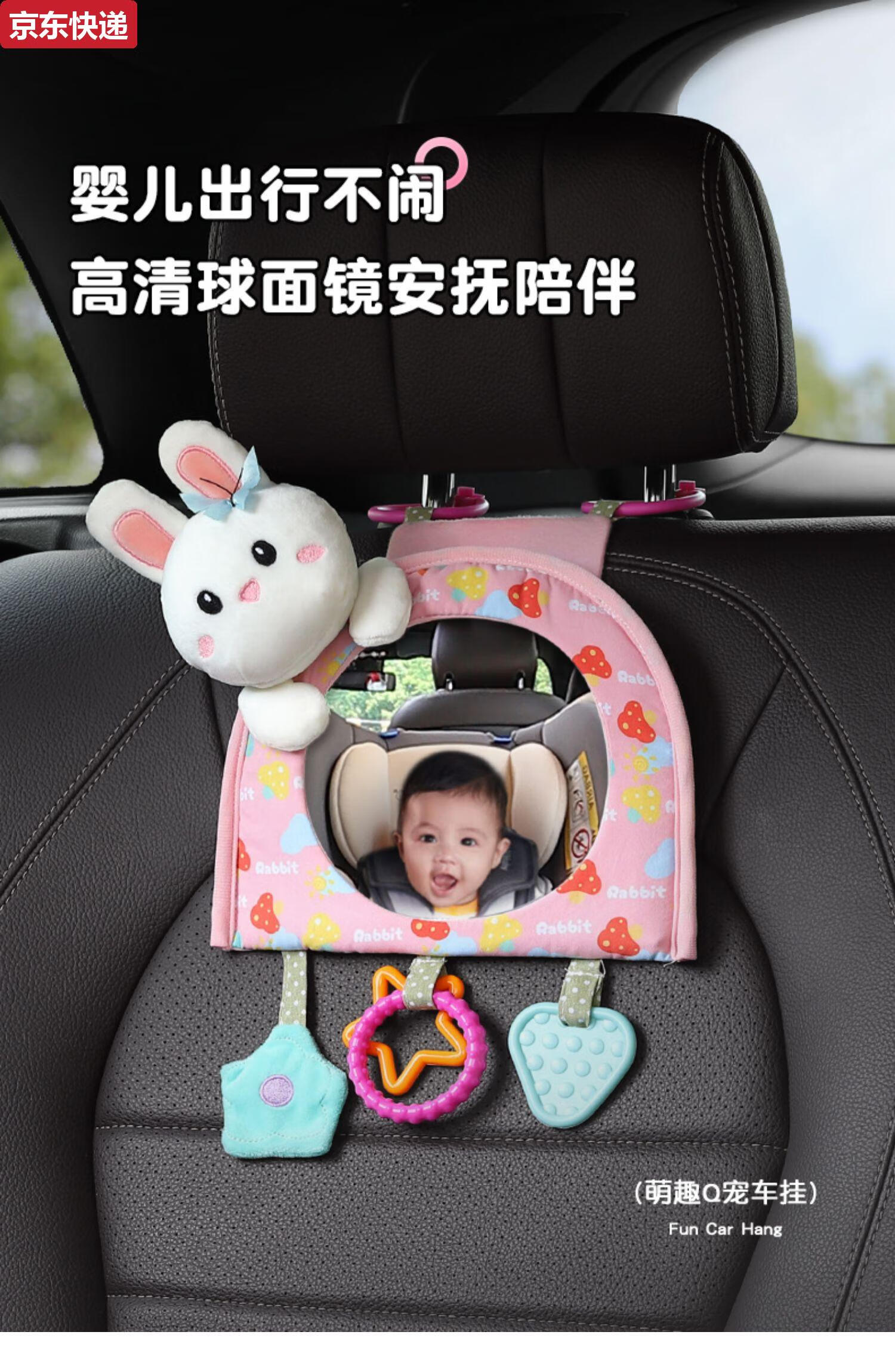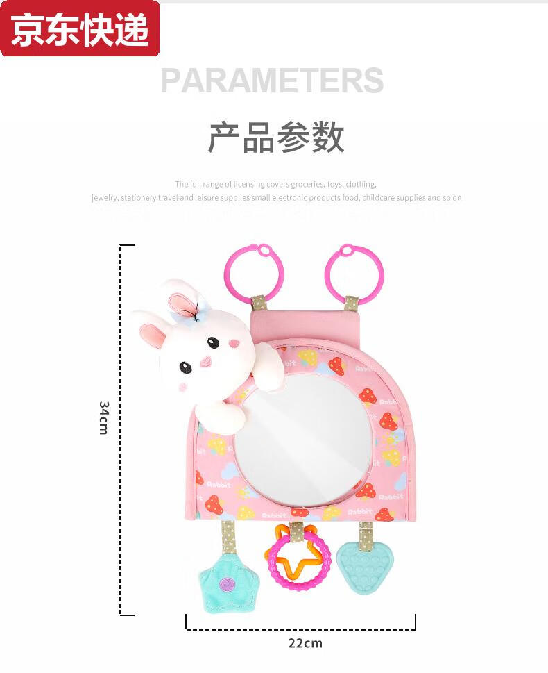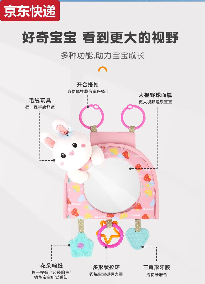Blue color and car baby safety seat observation mirror, children's car rearview mirror, baby carrier mirror, interior blind spot reflector, bunny-safety seat observation mirror