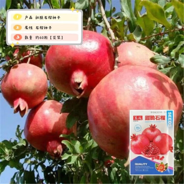 Sweet and crisp pomegranate seeds, pure sweet pomegranate seedlings, cold-resistant balcony garden potted ground planting seeds planted in the south and north, sweet and crisp pomegranate seeds, 3 packs of about 150 grains