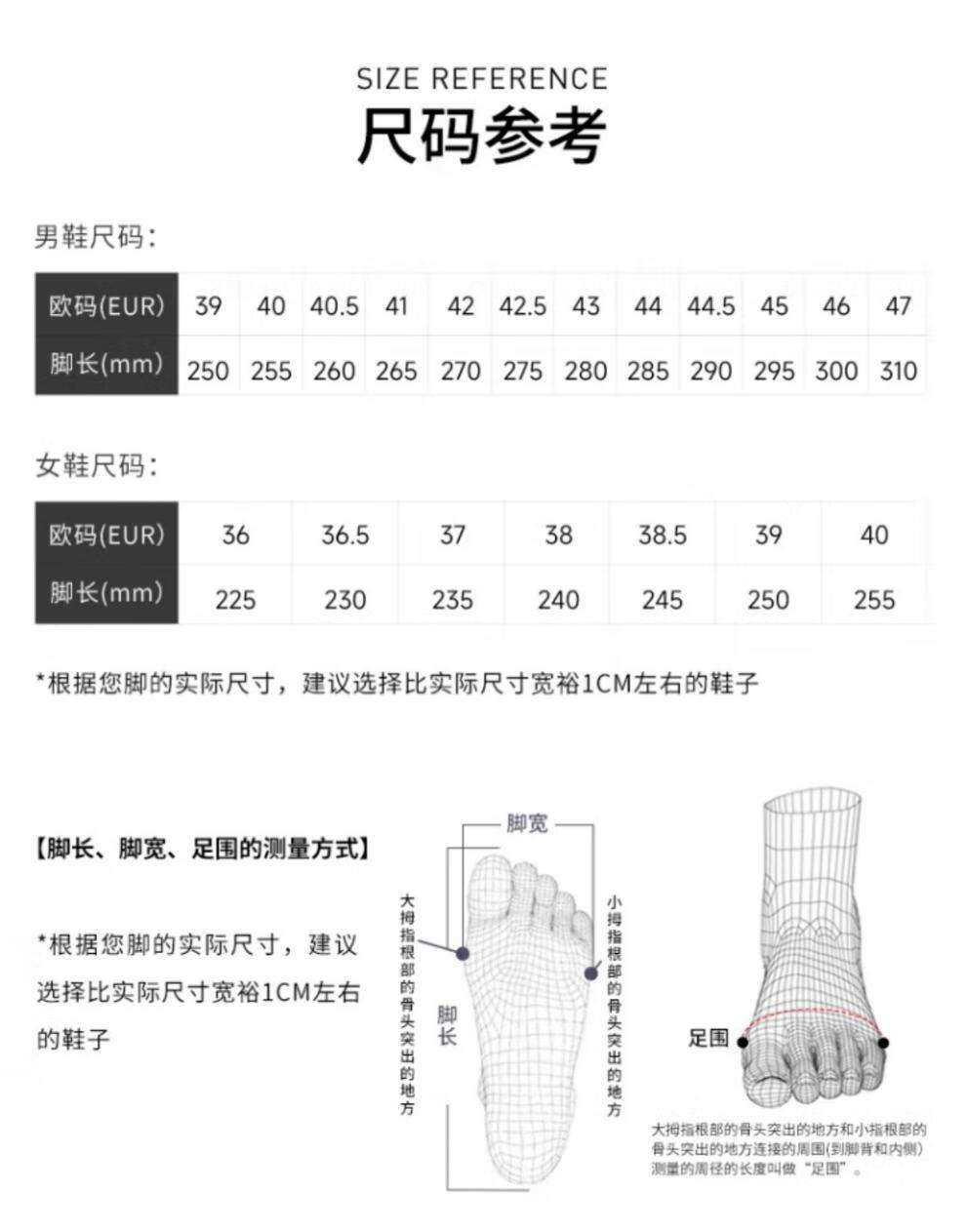 China (cm) 36 - 37 38 - 39 40 - 42 43 - 44 45 - 47