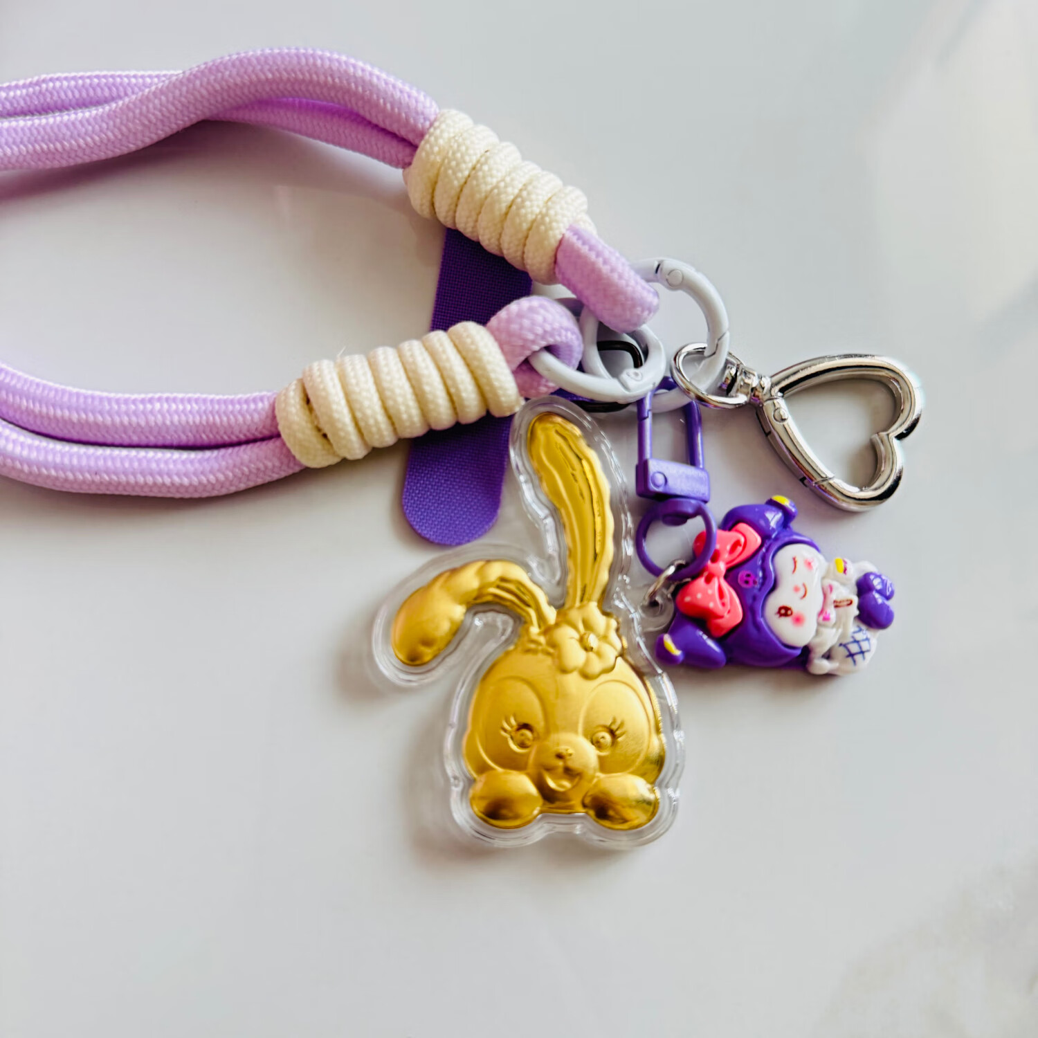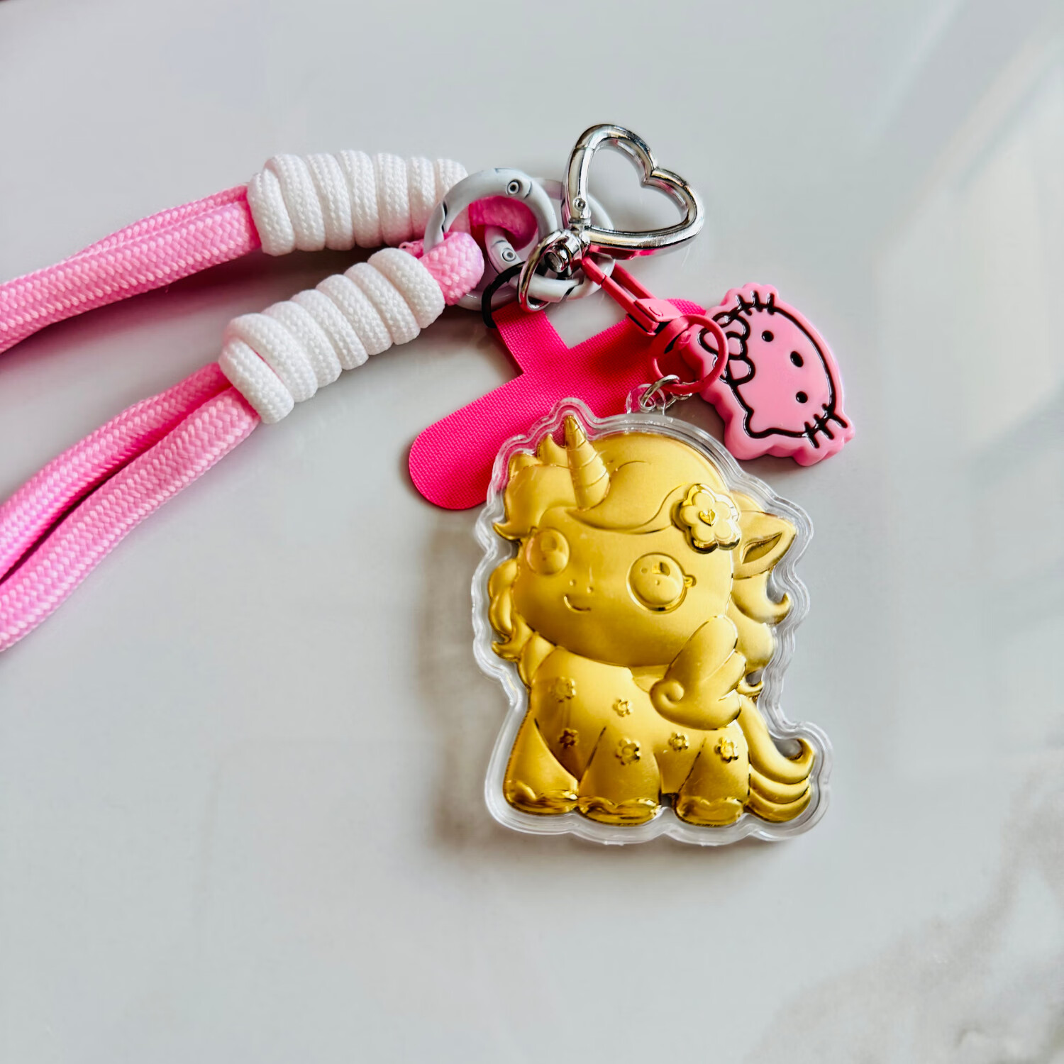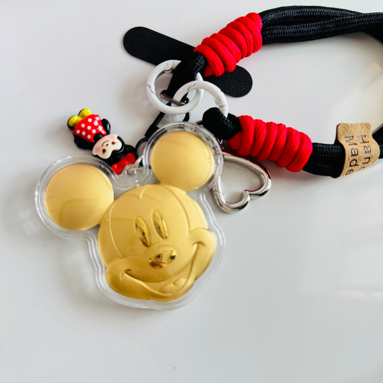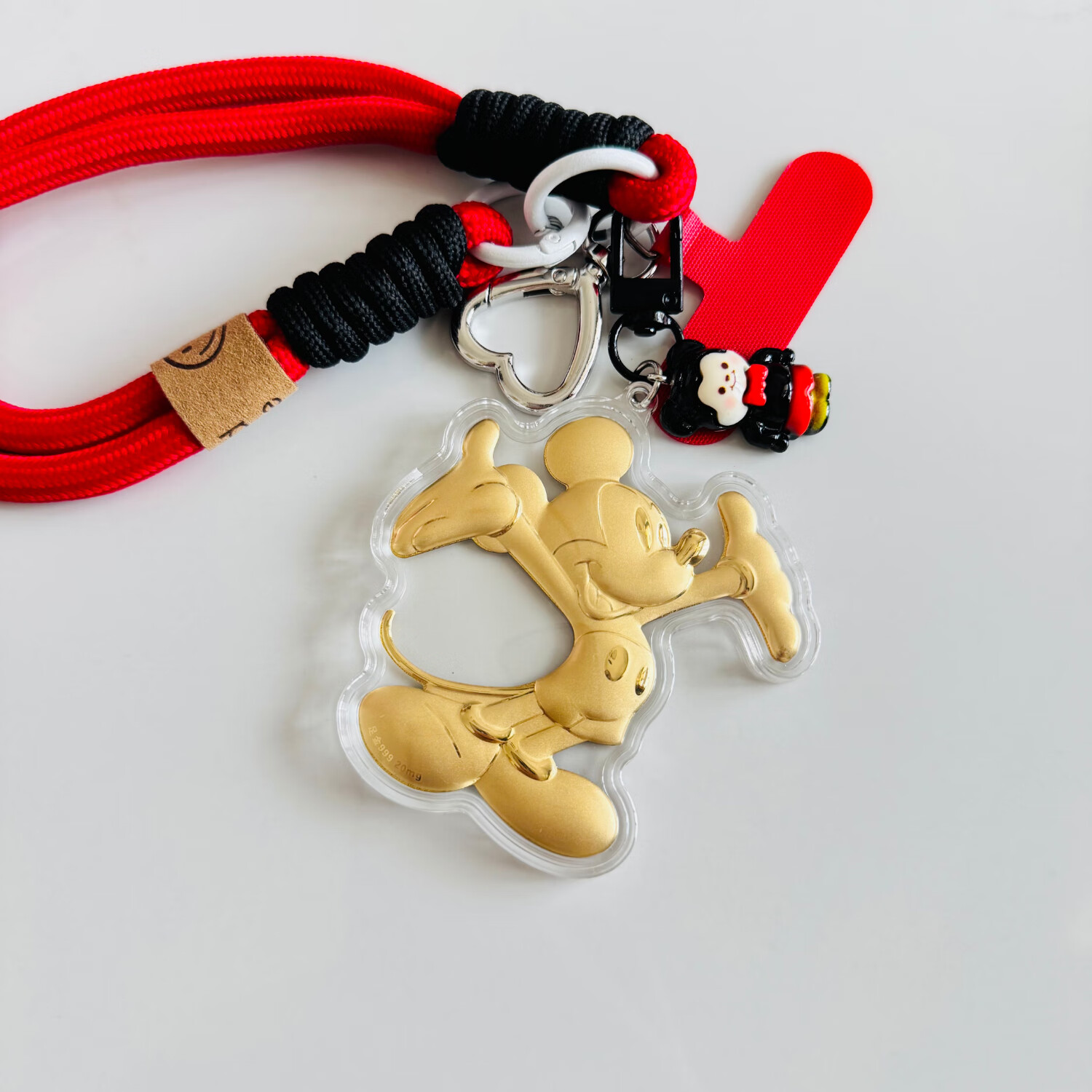 Old temple Minnie Mickey Unicorn Star Dailu mobile phone chain pure gold 999 cartoon pendant women's bag hanging chain cute pendant pure gold Minnie single pendant