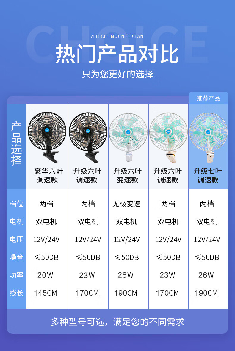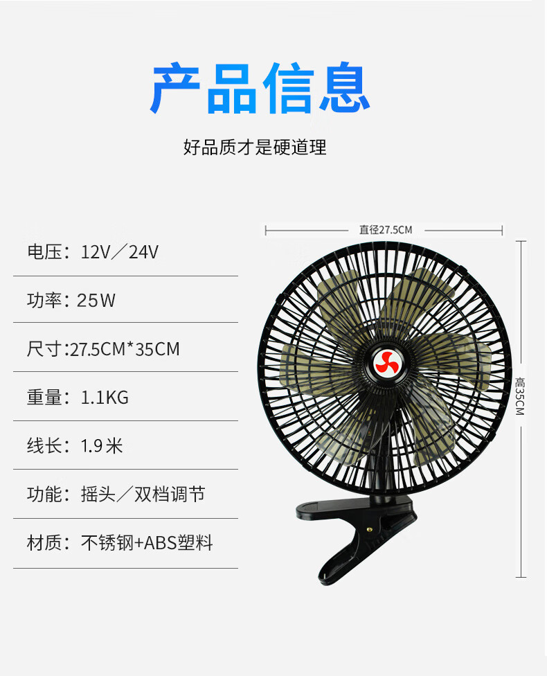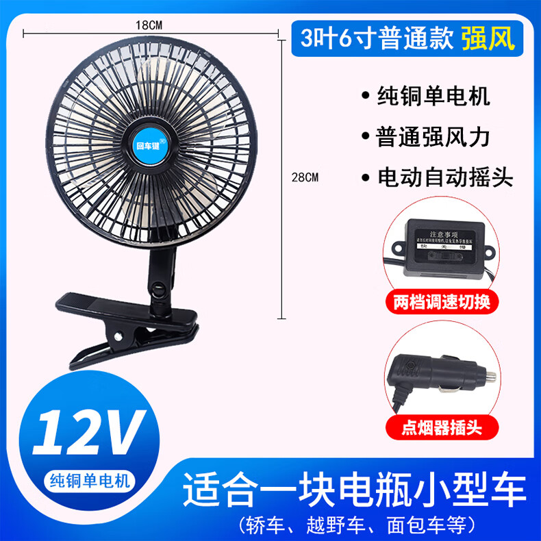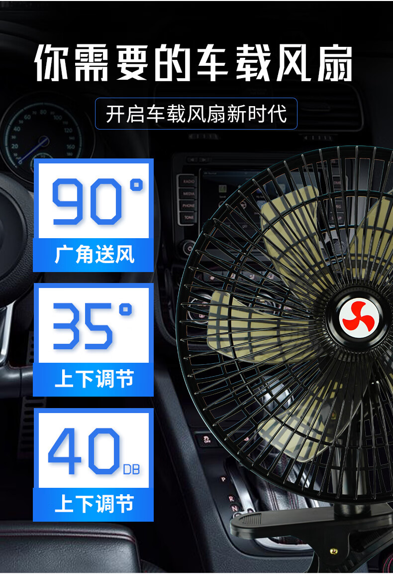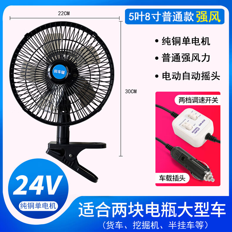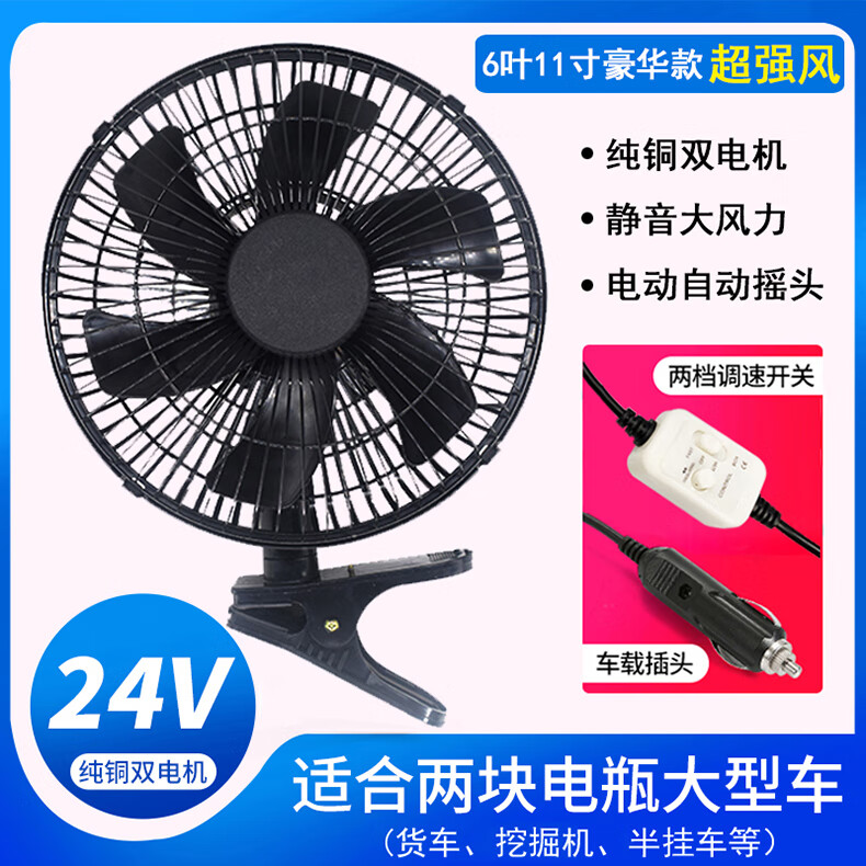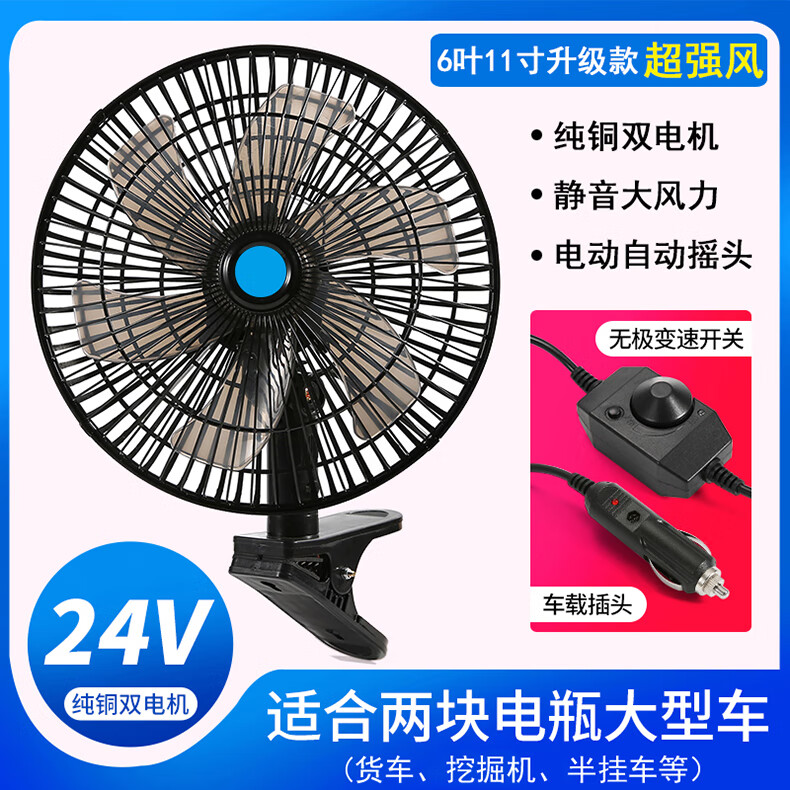 Zuimi Japan imported quality car fan 24V strong wind cooling shaking head in large truck van 12V small car Two batteries choose 24V (medium and large trucks) above