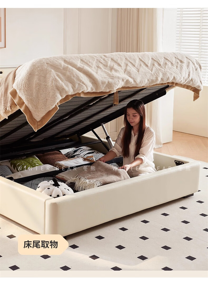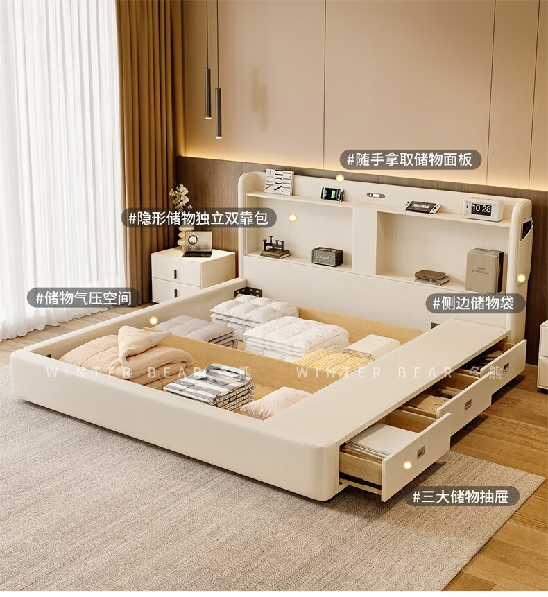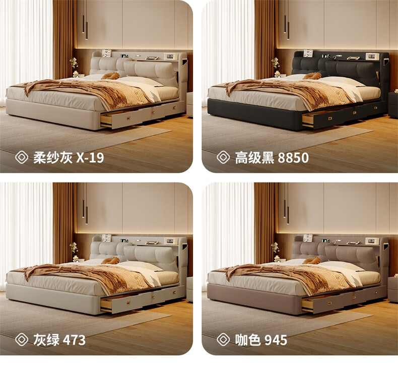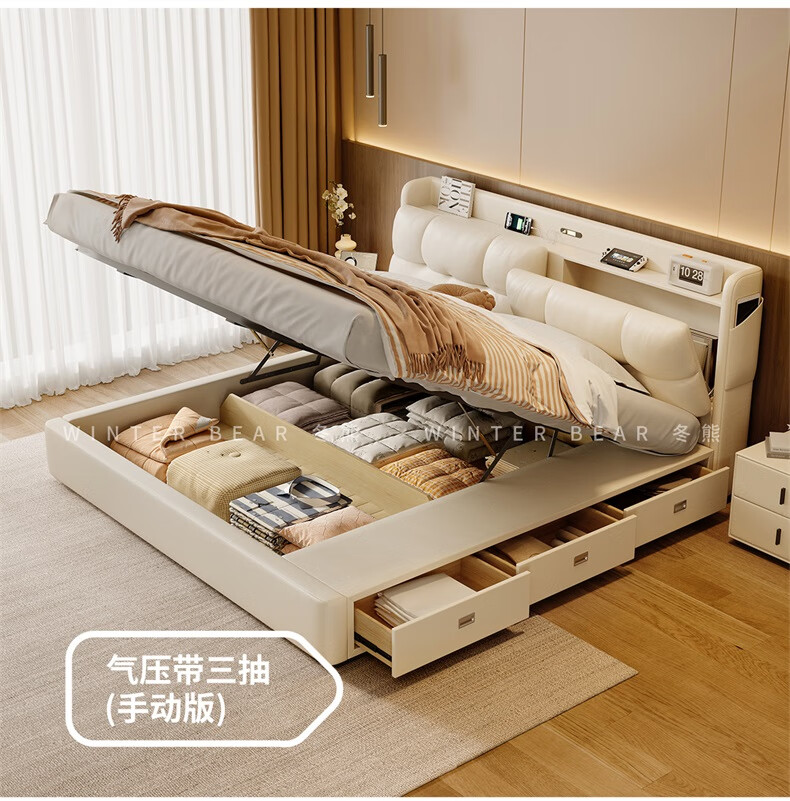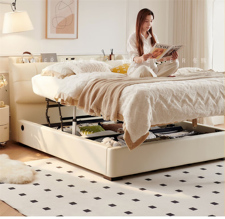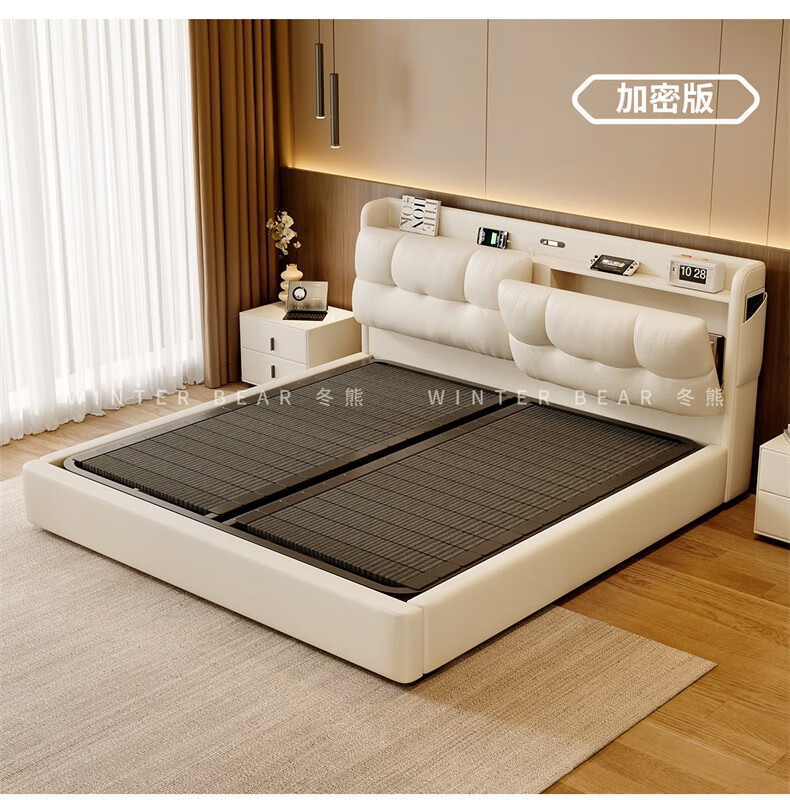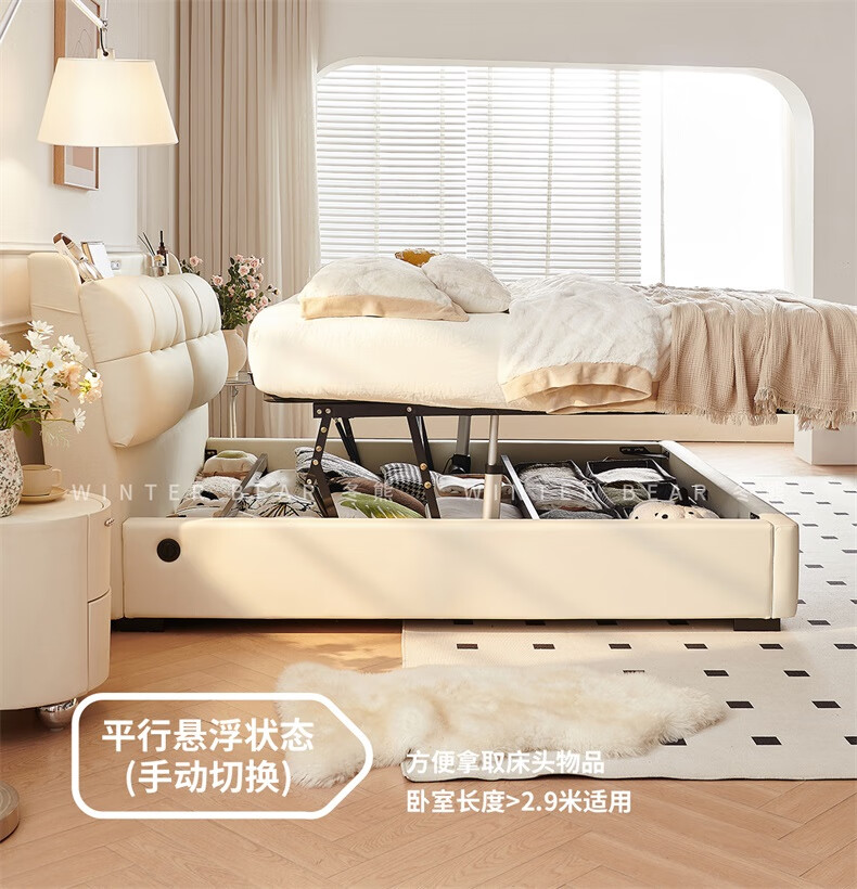 Dongxiong Light Luxury Leather Bed Modern Simple Multifunctional Master Bedroom Double Bed with Drawer Storage Bedroom Soft Leather Bed Imported Cowhide/Encrypted Silent Rib Frame 1800mm*2000mm Electric Translation Storage Structure
