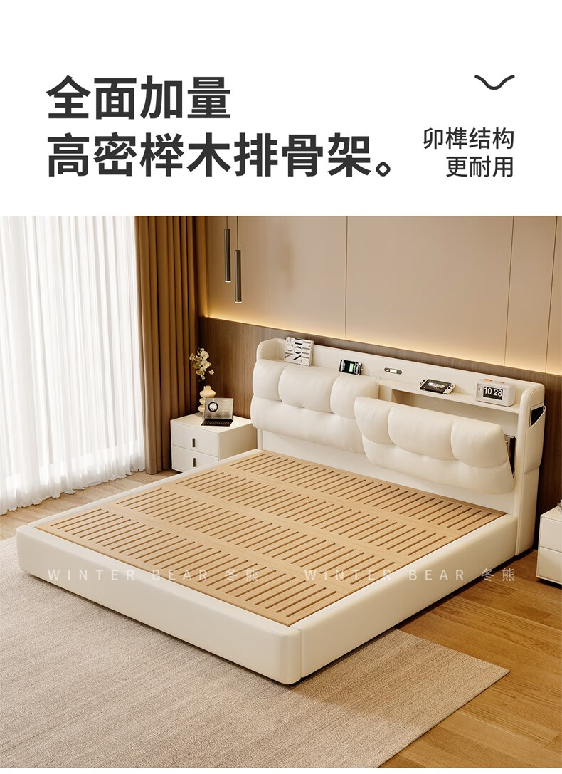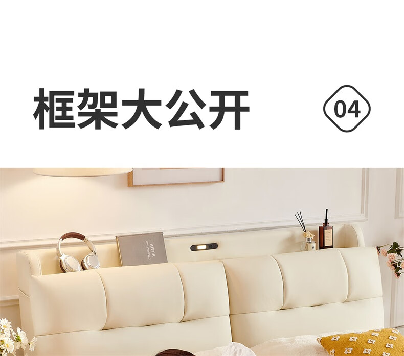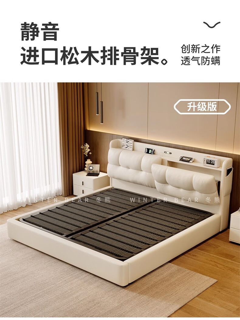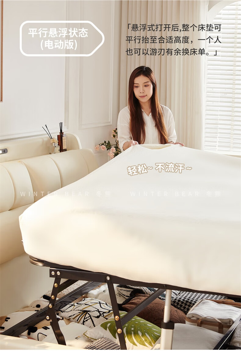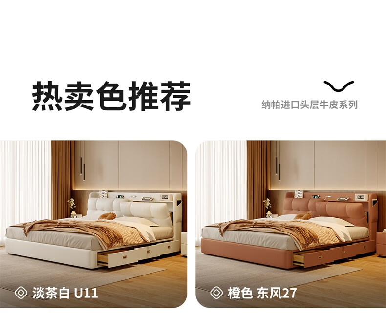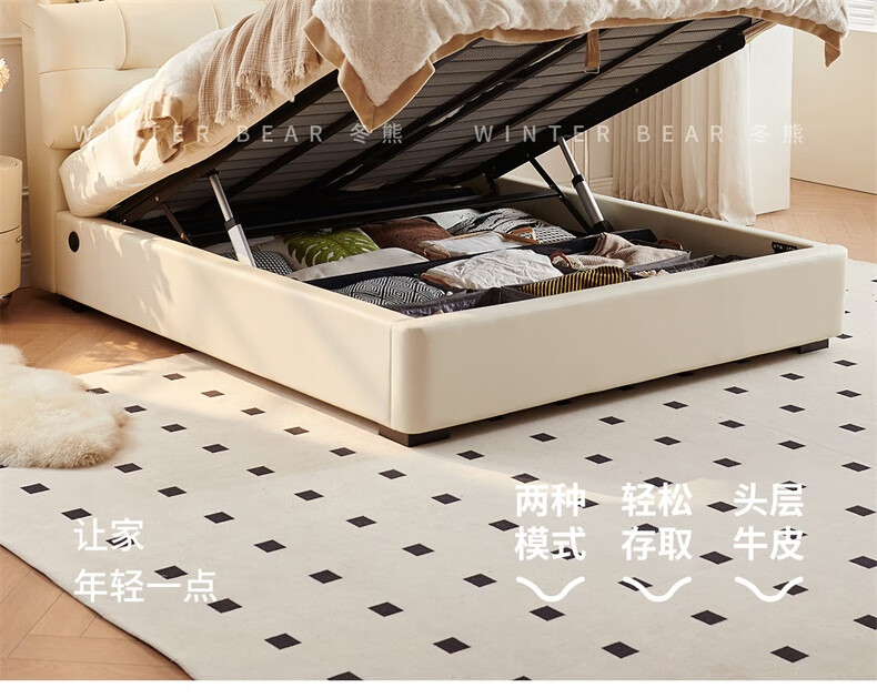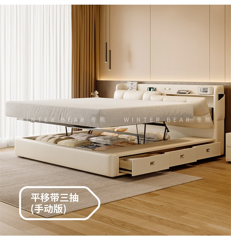 Dongxiong Light Luxury Leather Bed Modern Simple Multifunctional Master Bedroom Double Bed with Drawer Storage Bedroom Soft Leather Bed Imported Cowhide/Encrypted Silent Rib Frame 1800mm*2000mm Electric Translation Storage Structure