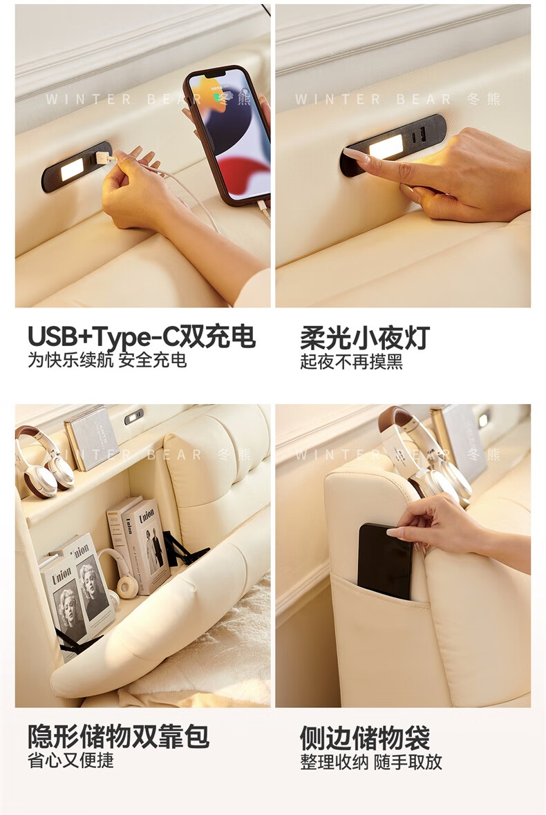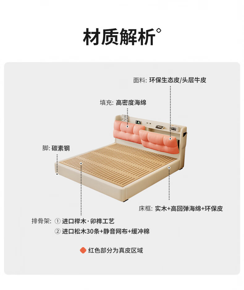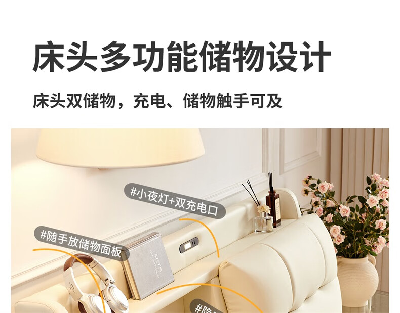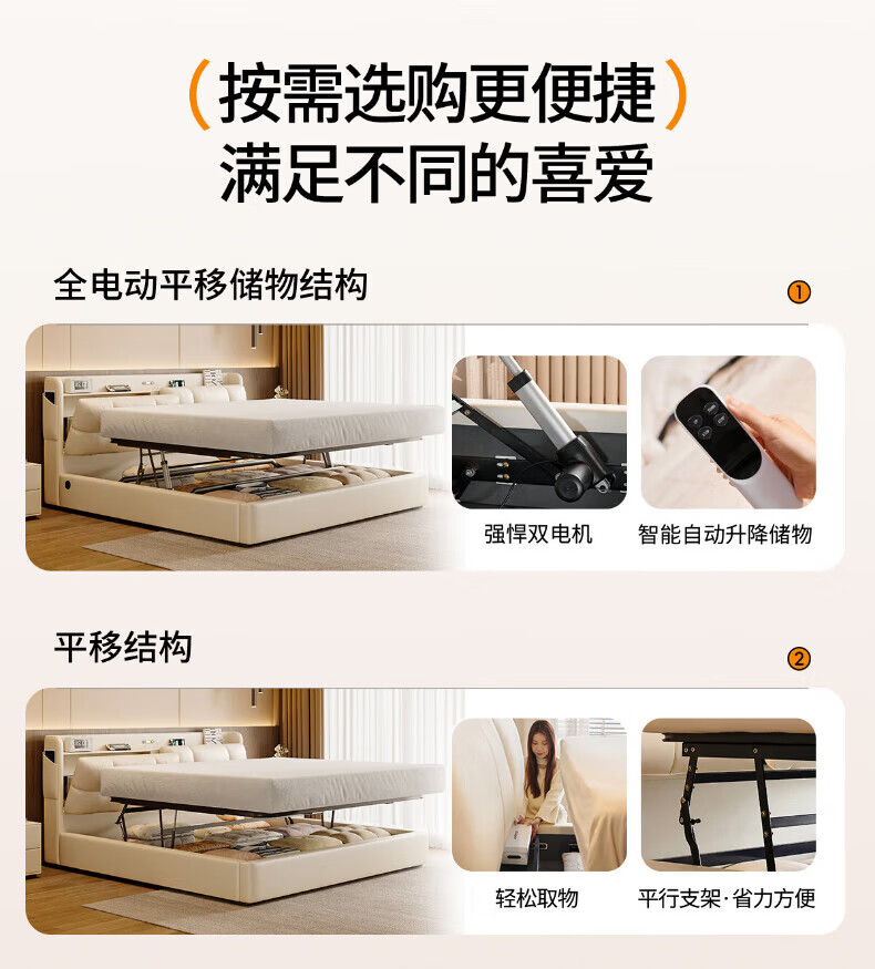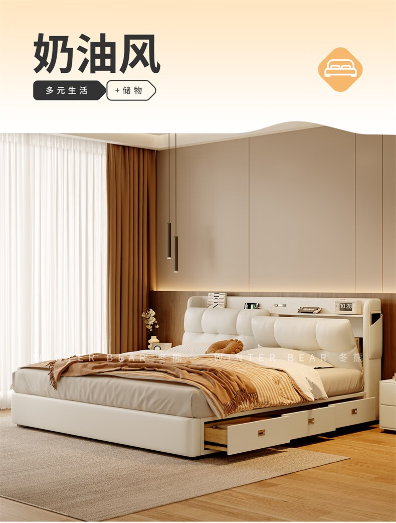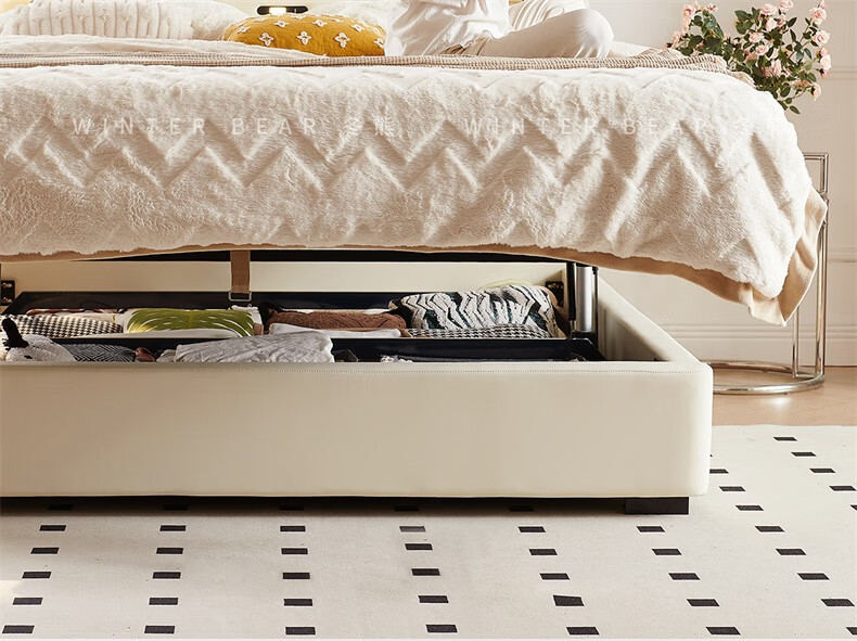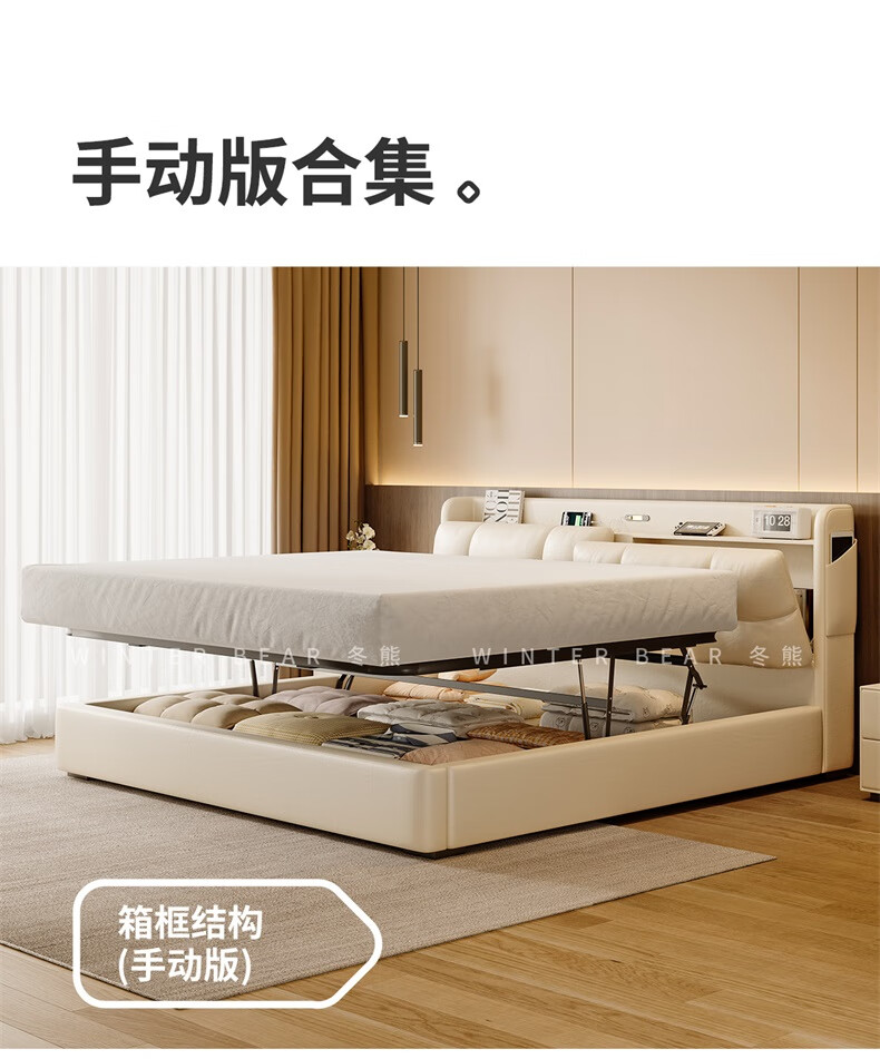 Dongxiong Light Luxury Leather Bed Modern Simple Multifunctional Master Bedroom Double Bed with Drawer Storage Bedroom Soft Leather Bed Imported Cowhide/Encrypted Silent Rib Frame 1800mm*2000mm Electric Translation Storage Structure