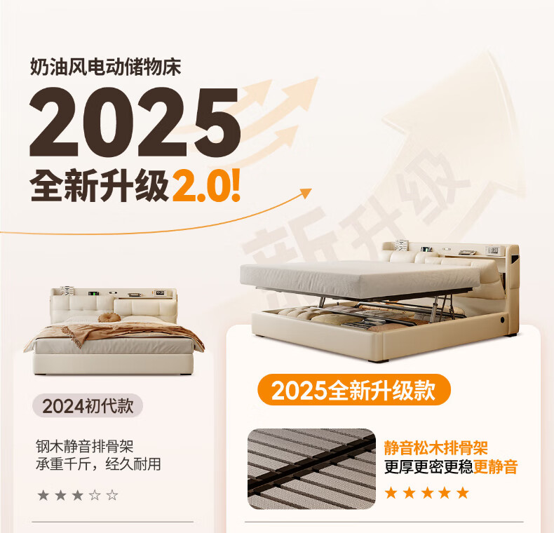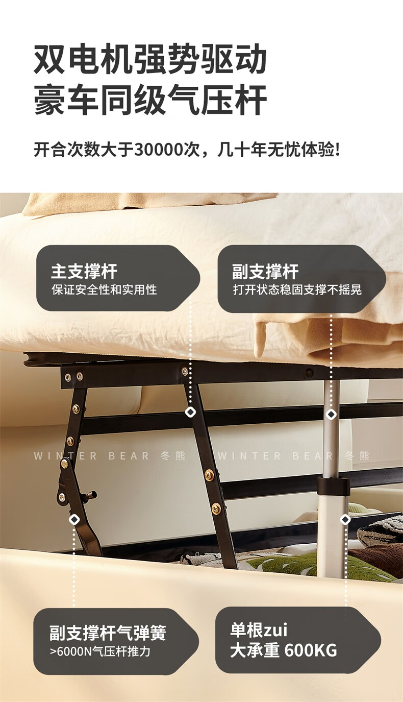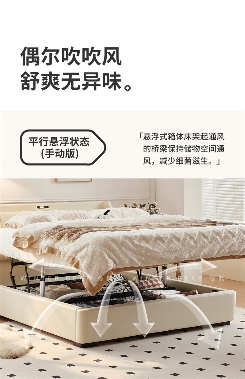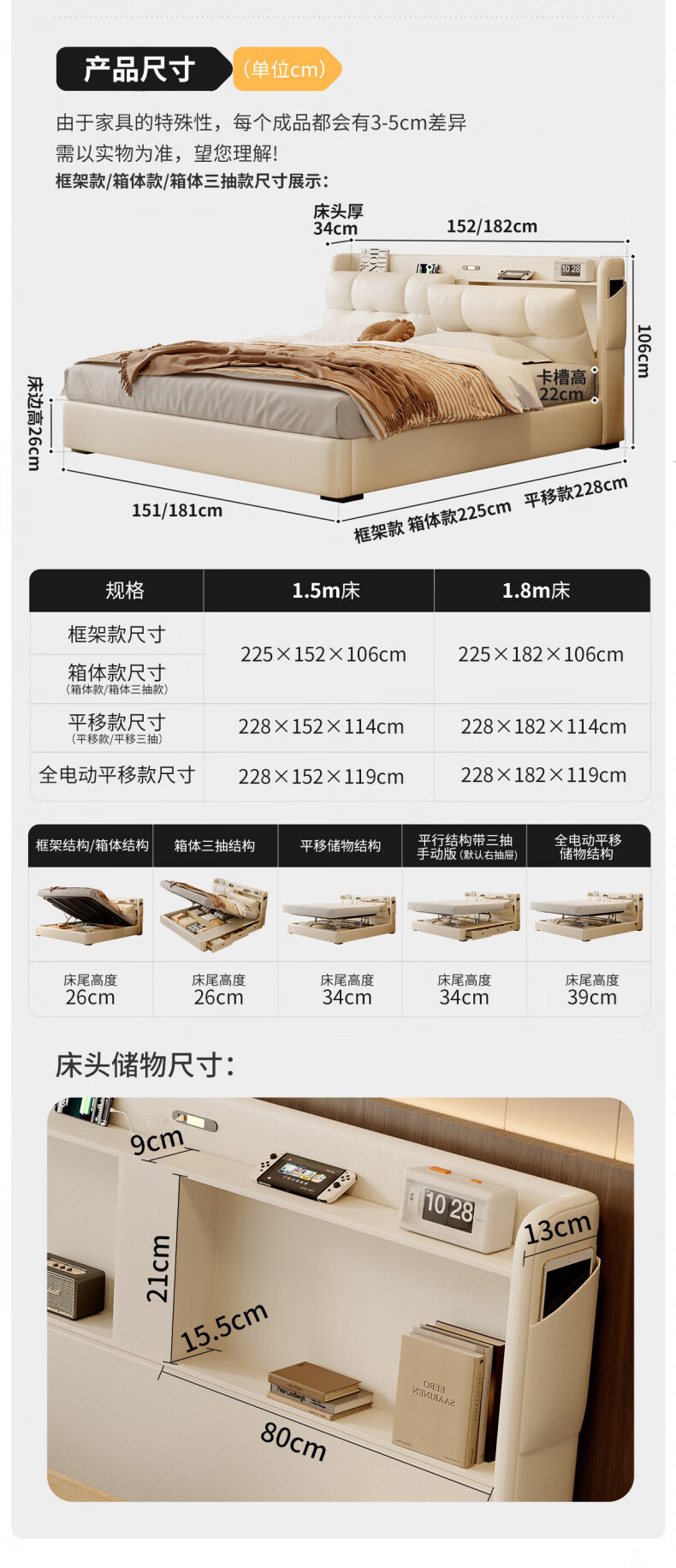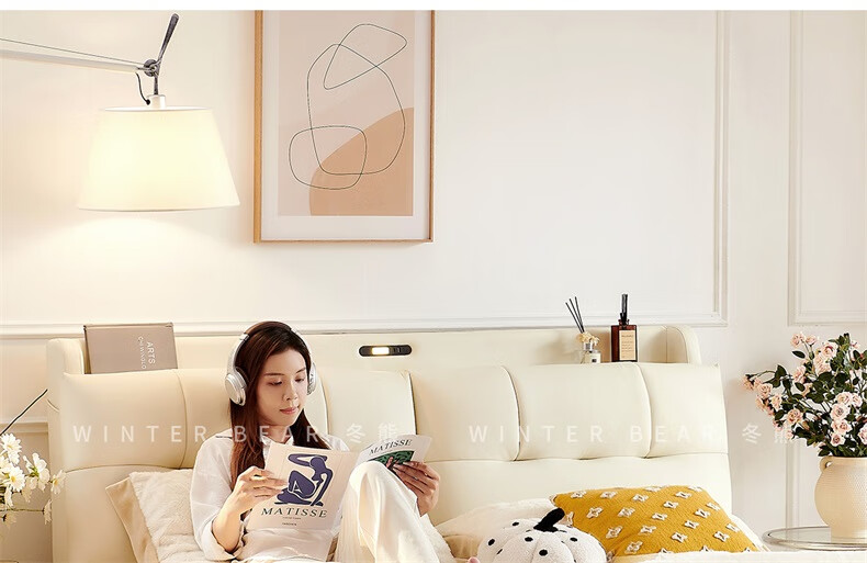 Dongxiong Light Luxury Leather Bed Modern Simple Multifunctional Master Bedroom Double Bed with Drawer Storage Bedroom Soft Leather Bed Imported Cowhide/Encrypted Silent Rib Frame 1800mm*2000mm Electric Translation Storage Structure