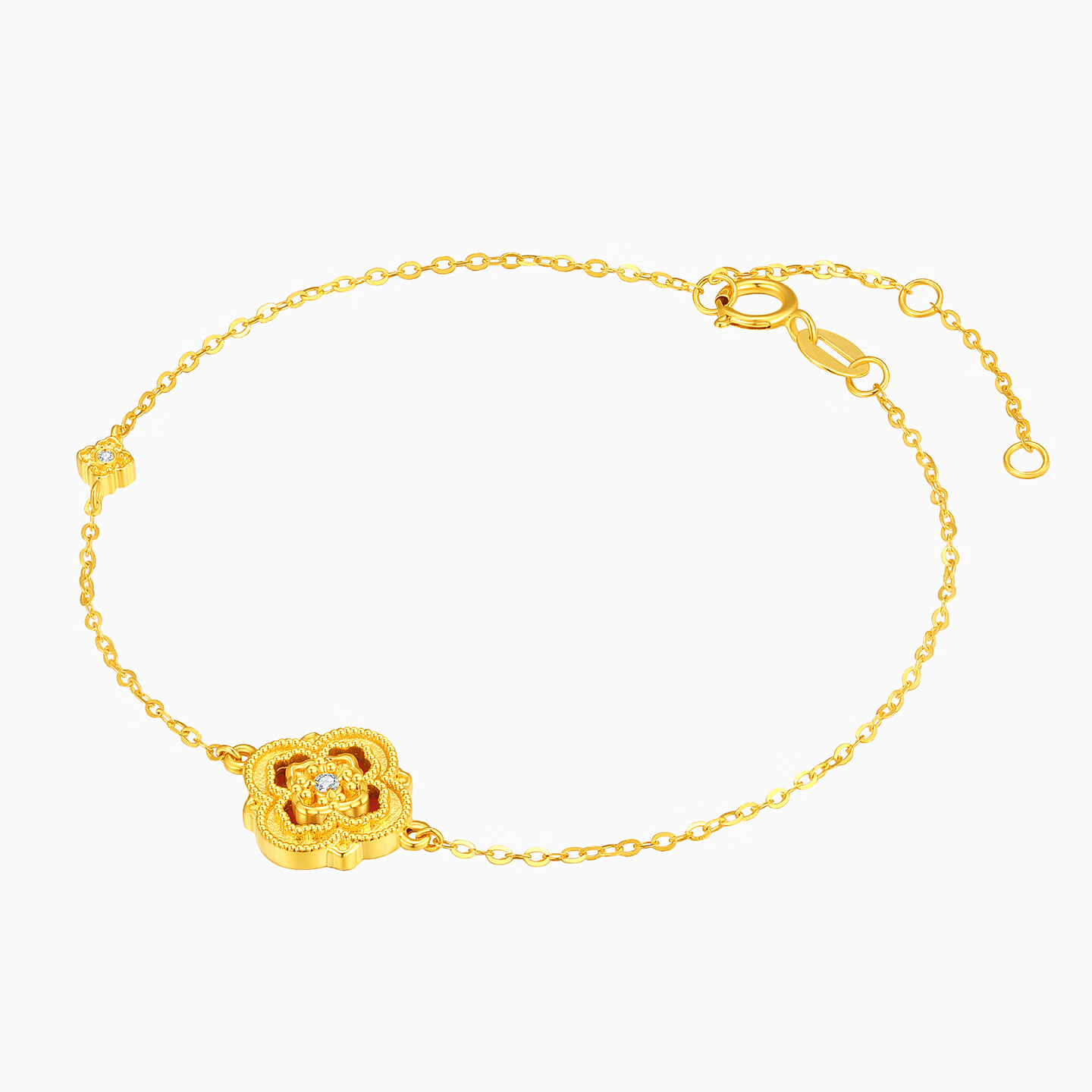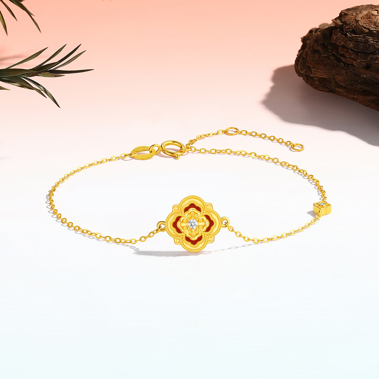Chao Acer four-leaf clover 18K gold diamond chalcedony bracelet women's gold jewelry high-end light luxury birthday gift for girlfriend, chain length about 16cm + tail chain