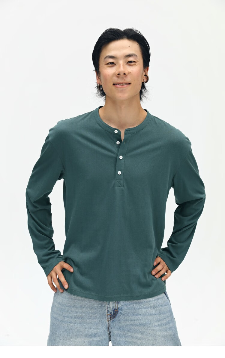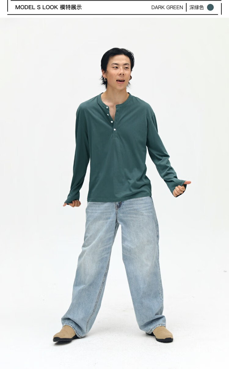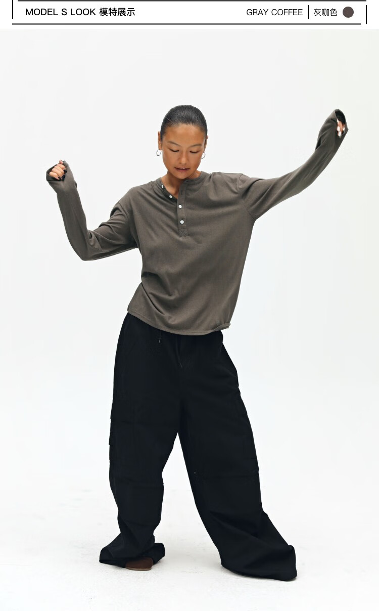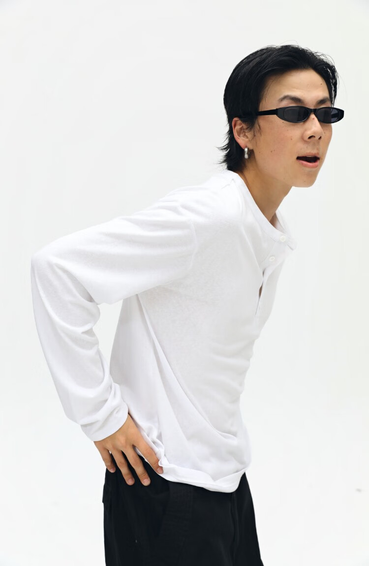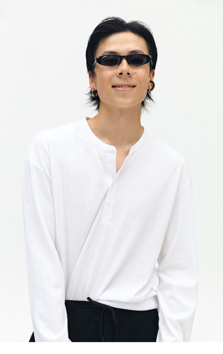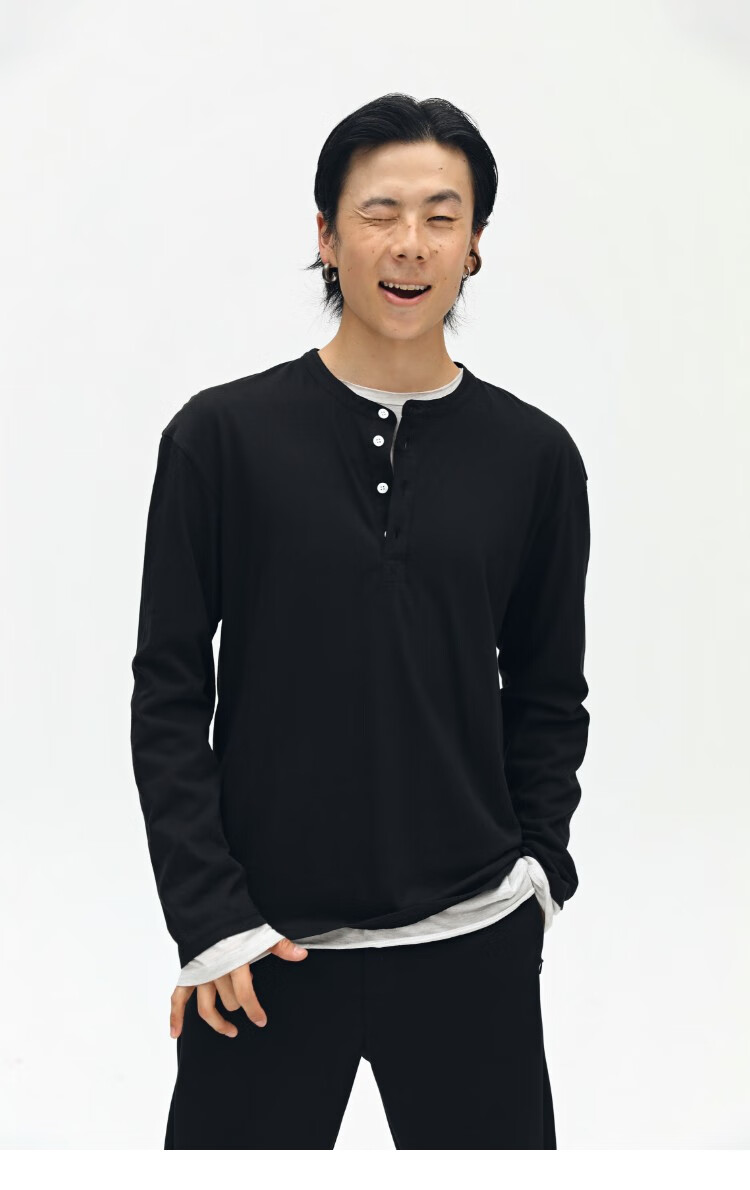 Dondup long-sleeved casual henley collar T-shirt simple white thin bottoming shirt heavy button polo top for men and women white S