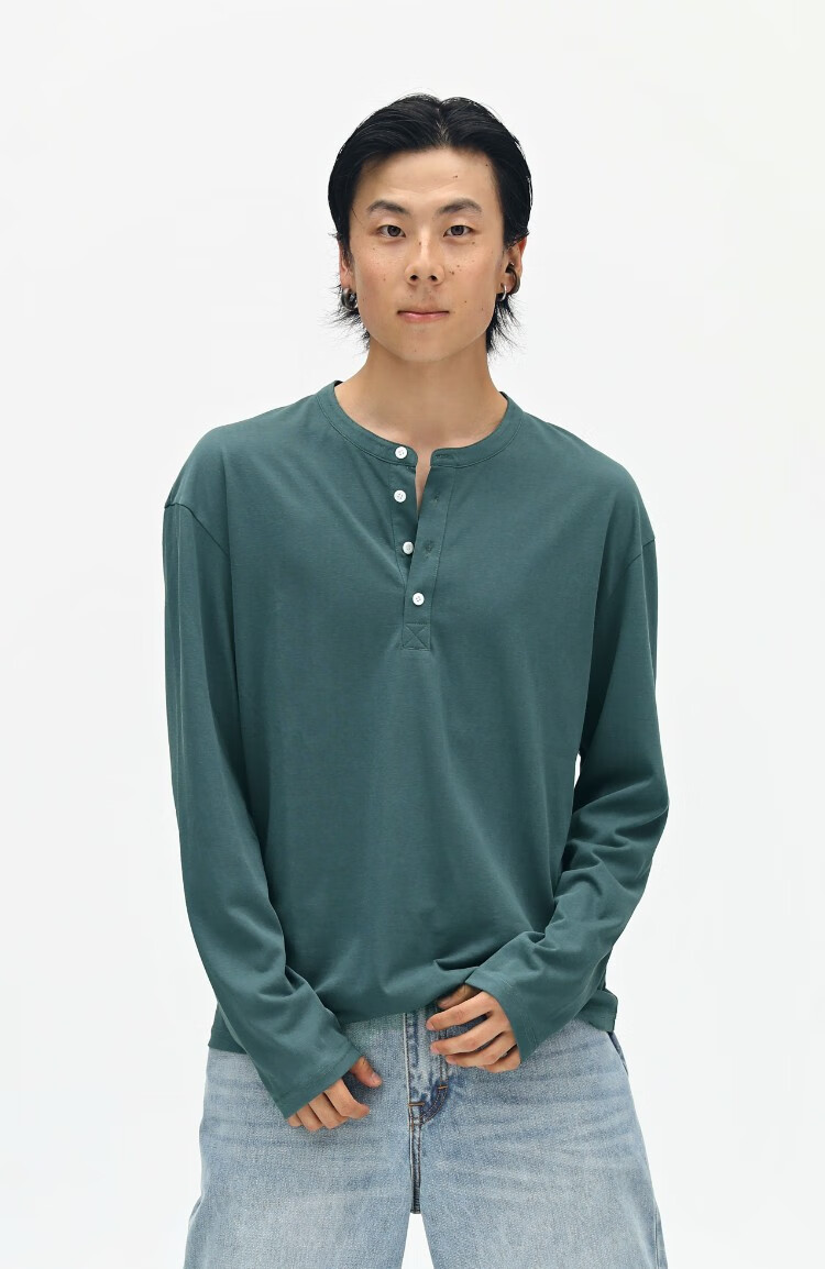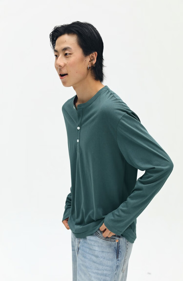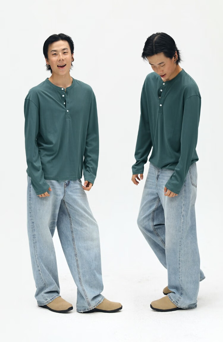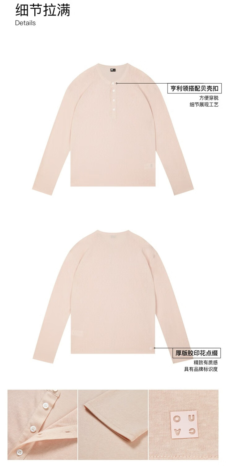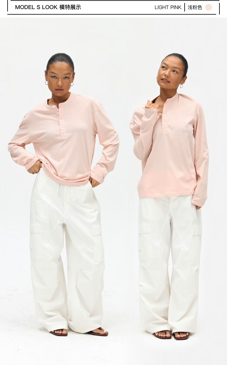 Dondup long-sleeved casual henley collar T-shirt simple white thin bottoming shirt heavy button polo top for men and women white S