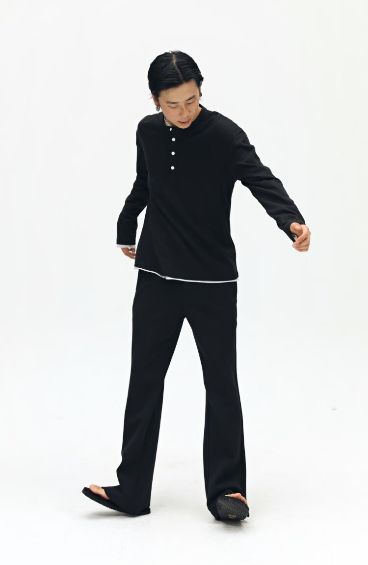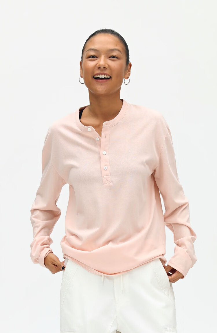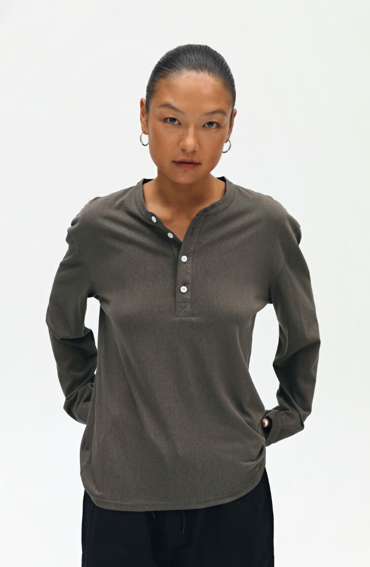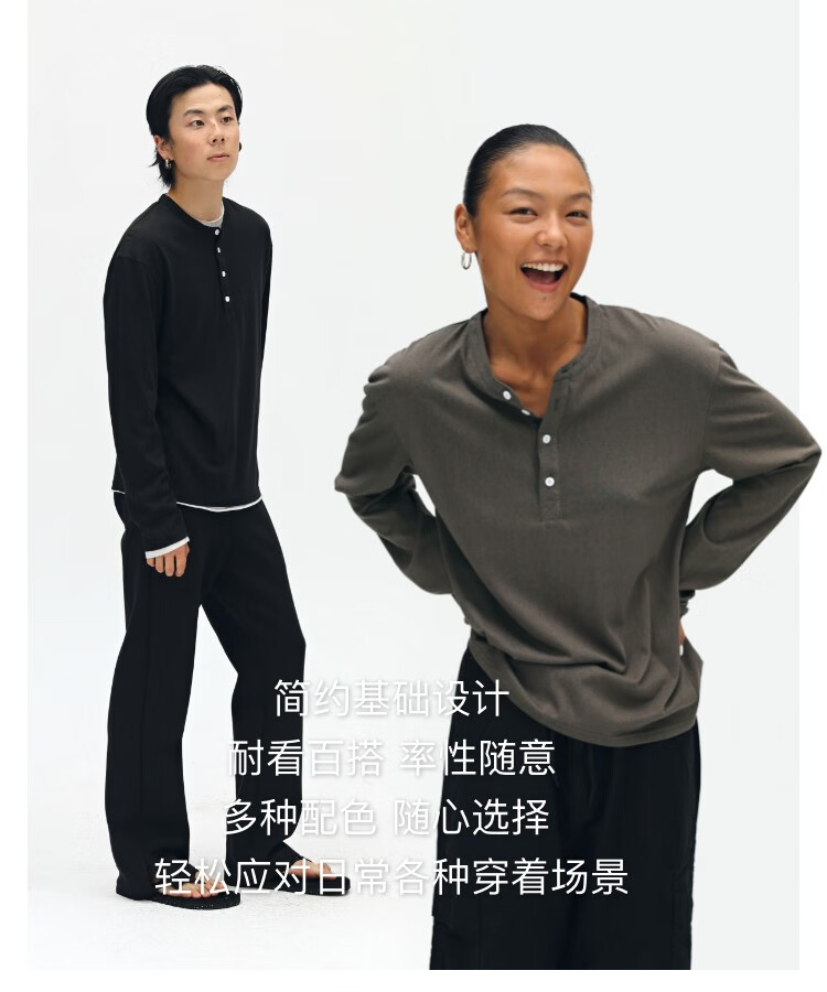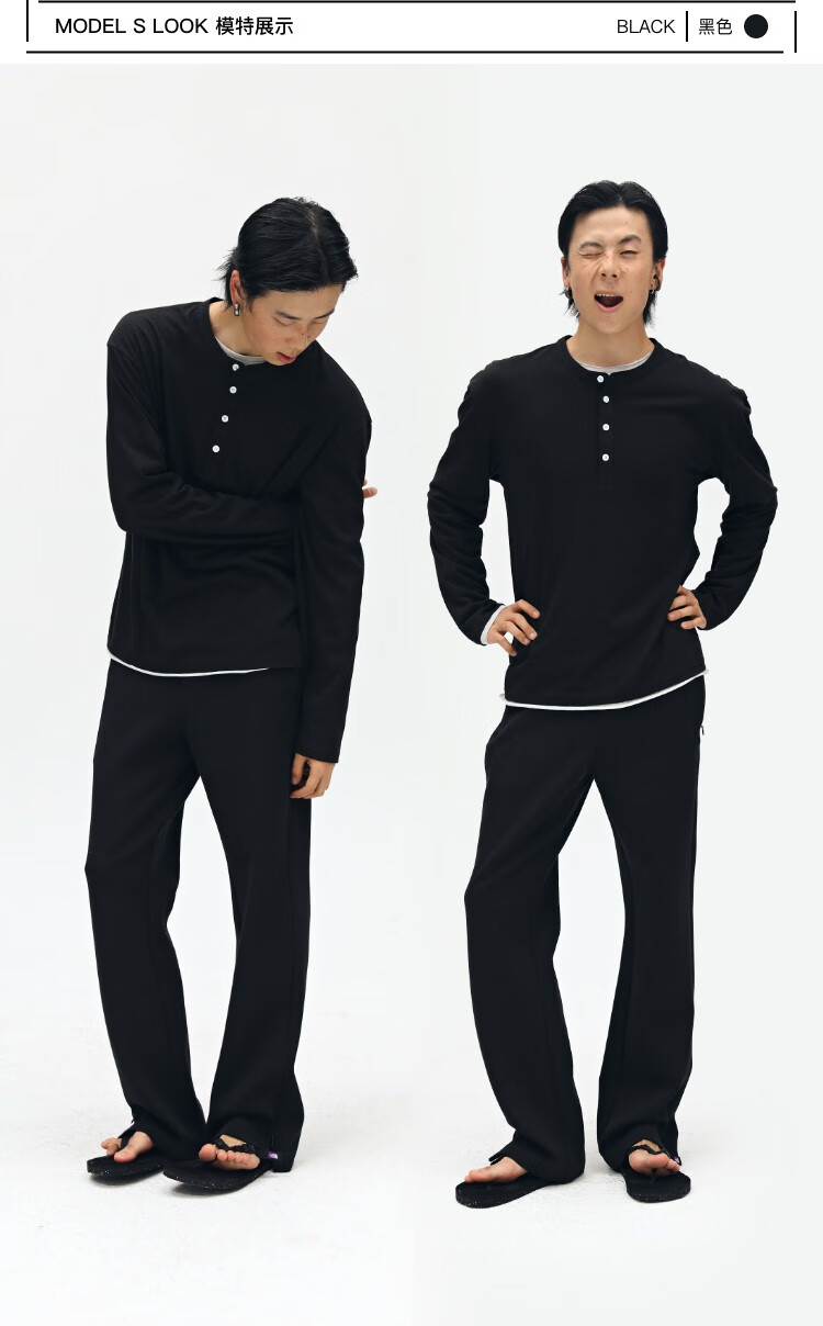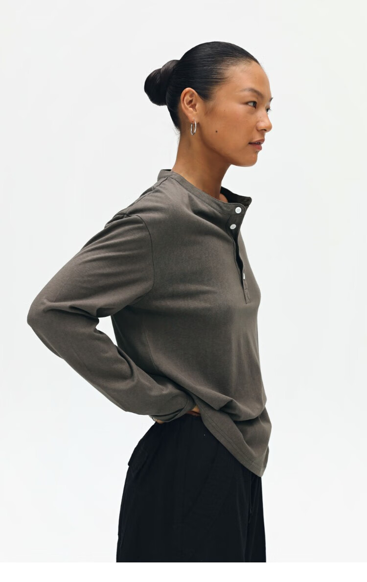 Dondup long-sleeved casual henley collar T-shirt simple white thin bottoming shirt heavy button polo top for men and women white S