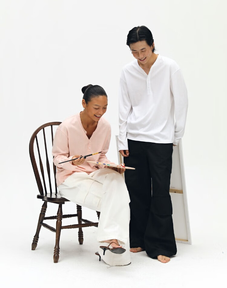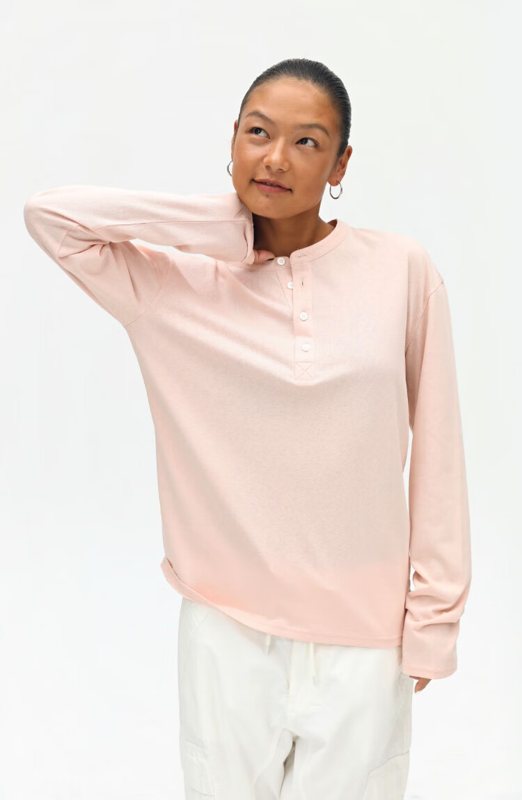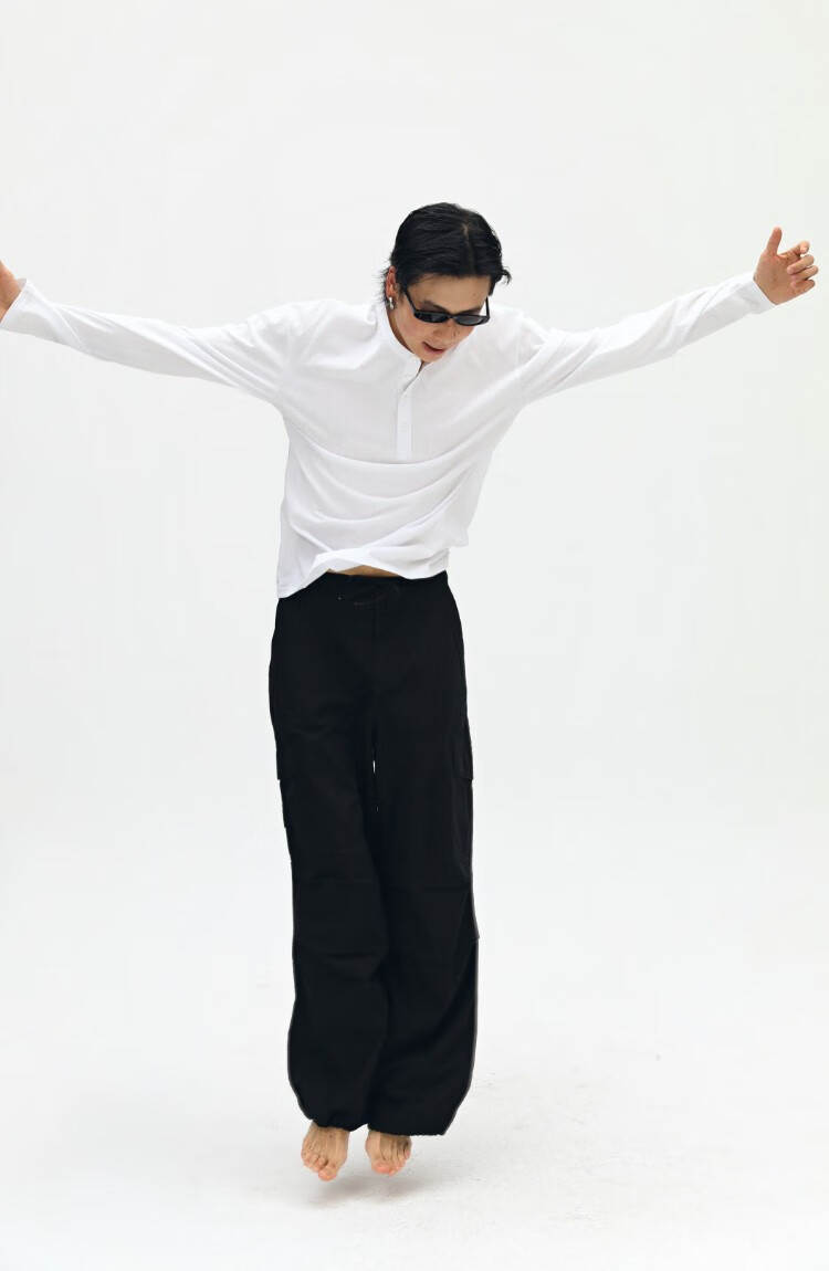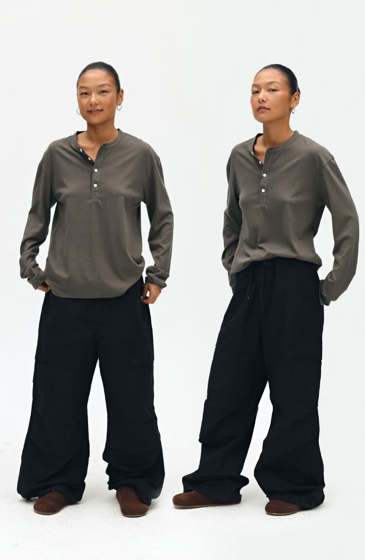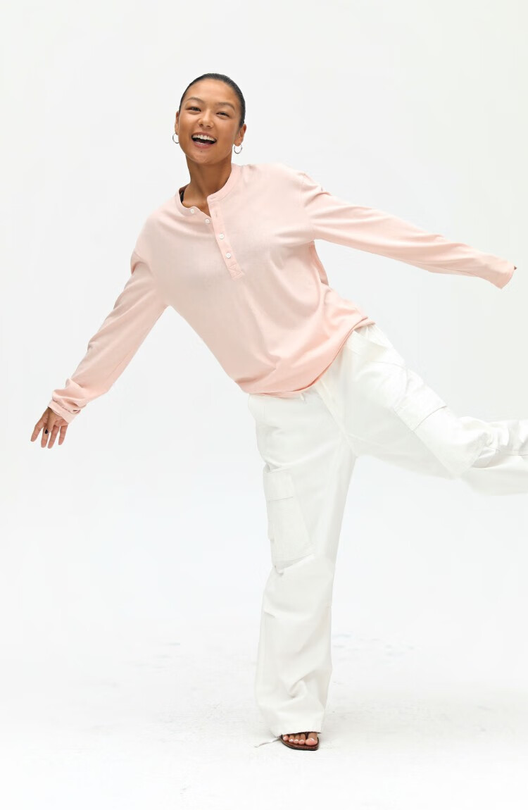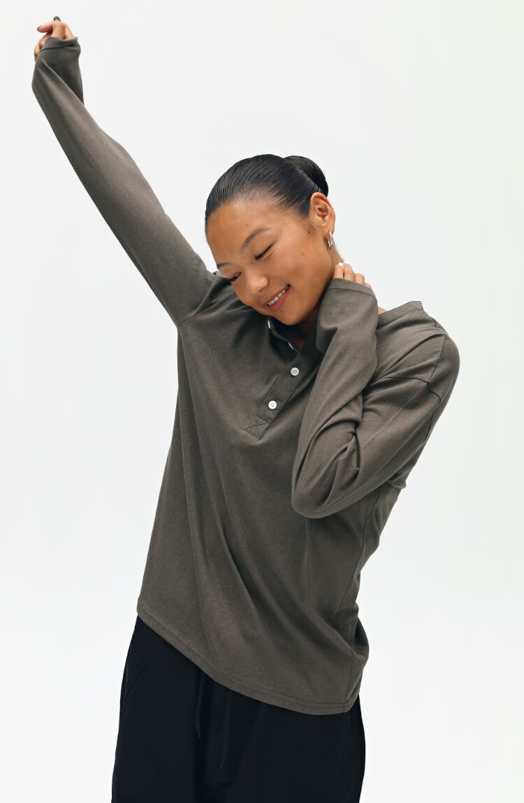 Dondup long-sleeved casual henley collar T-shirt simple white thin bottoming shirt heavy button polo top for men and women white S