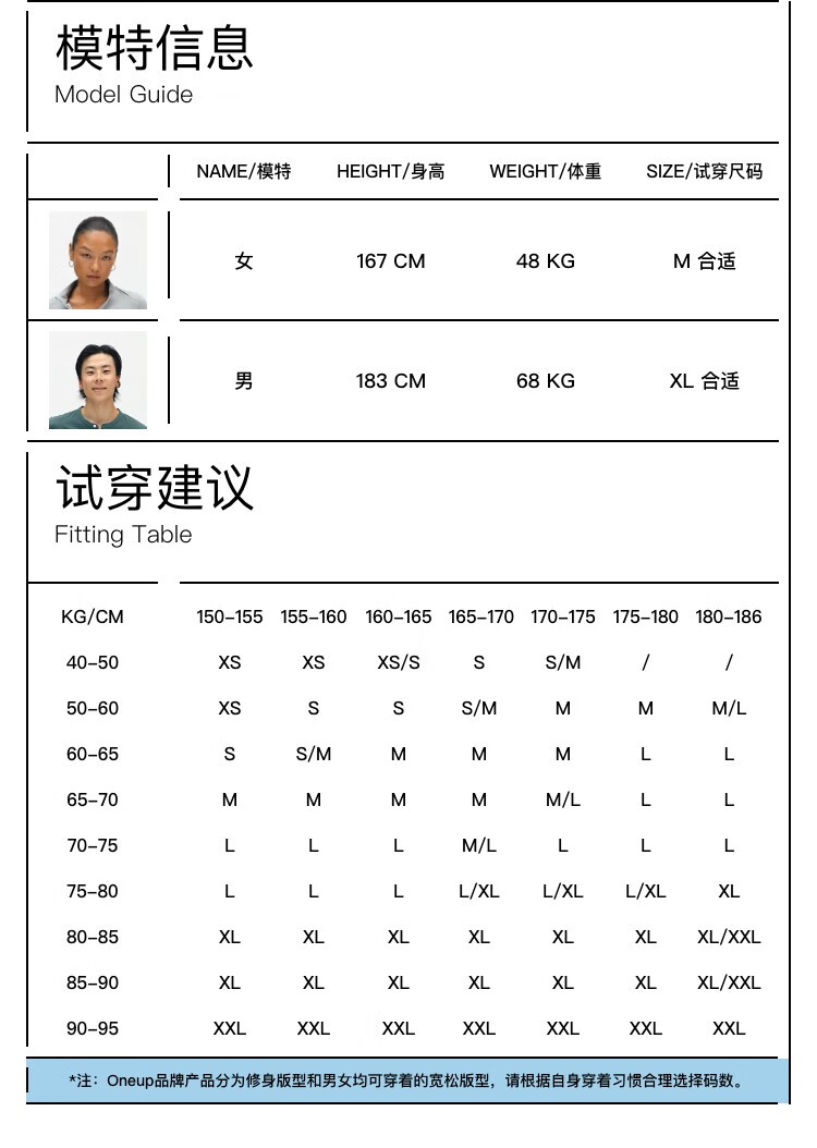 China (cm) 160-165/84-86 165-170 / 88-90 167-172 / 92-96 168-173 / 98-102 170-176 / 106-110