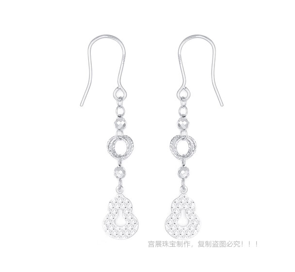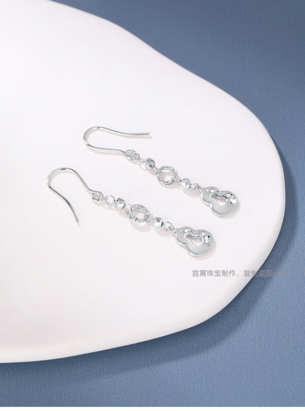 Gongzhan platinum gourd earrings, long style, small face, pt950 platinum earrings for women, simple and elegant, versatile earrings, ear hooks, a pair of Fulu gourd platinum earrings, about 3.6-3.8 grams