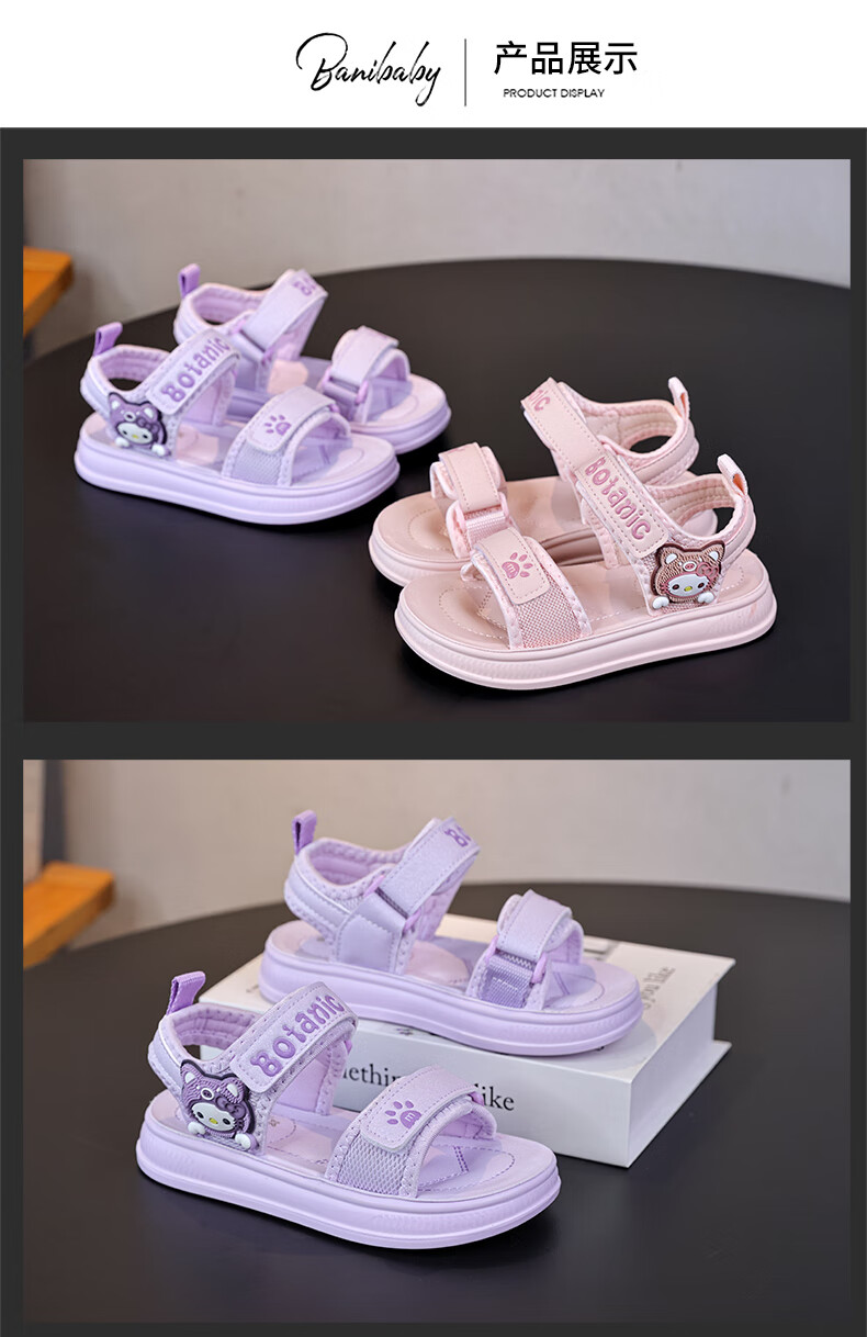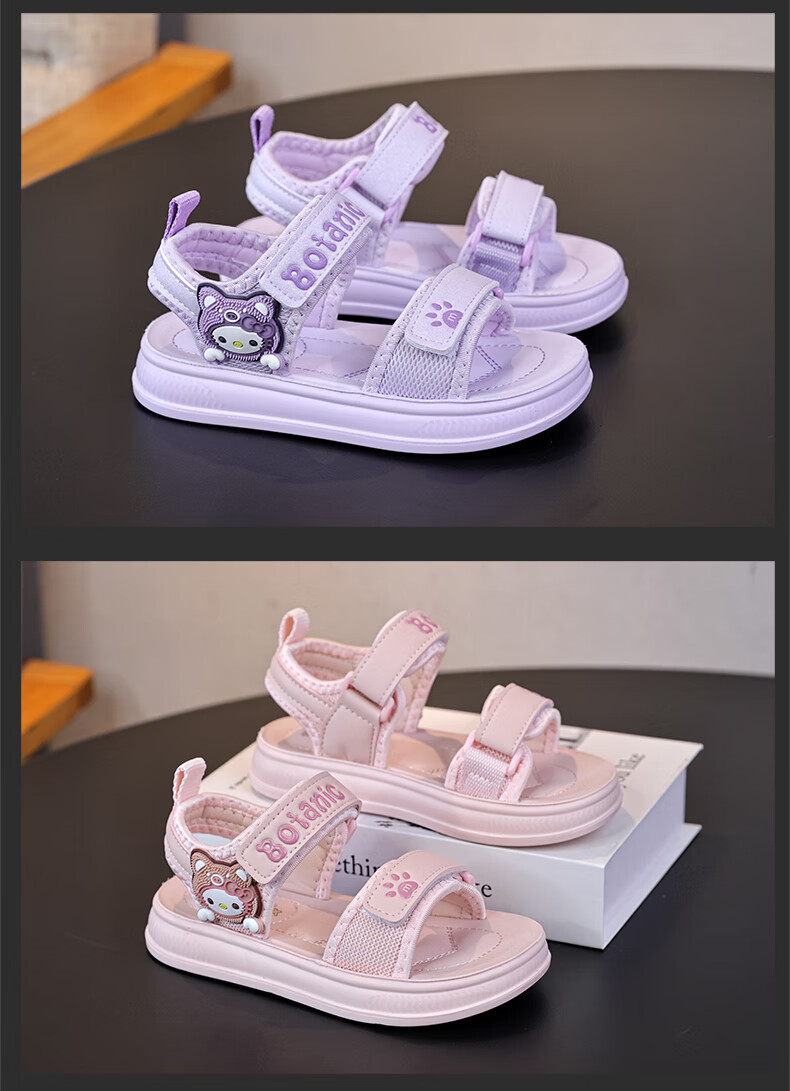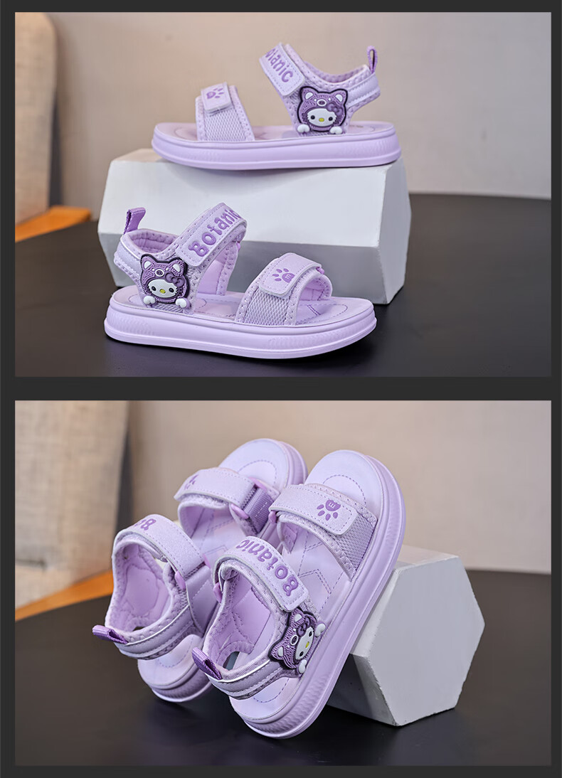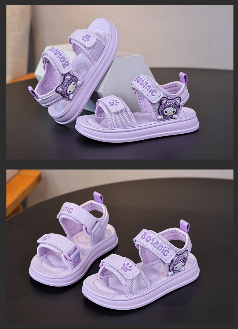 Children's Sandals Girls Princess Shoes 2025 New Summer Girls Fashion Soft Bottom Beach Shoes Baby Sandals Anti-Slip Purple Size 31 Inner Length 19.5cm