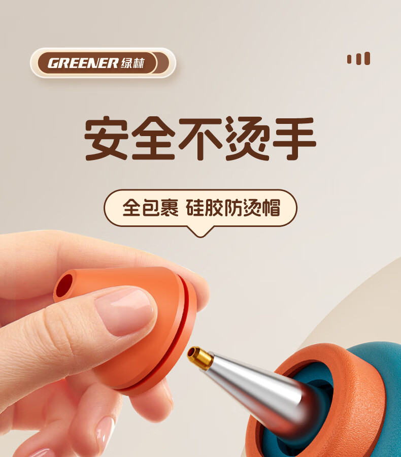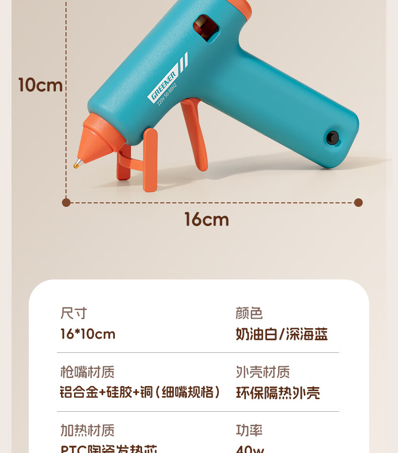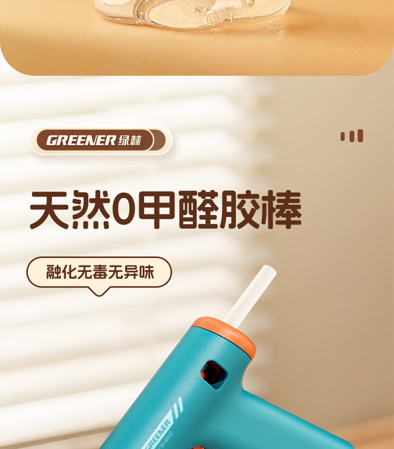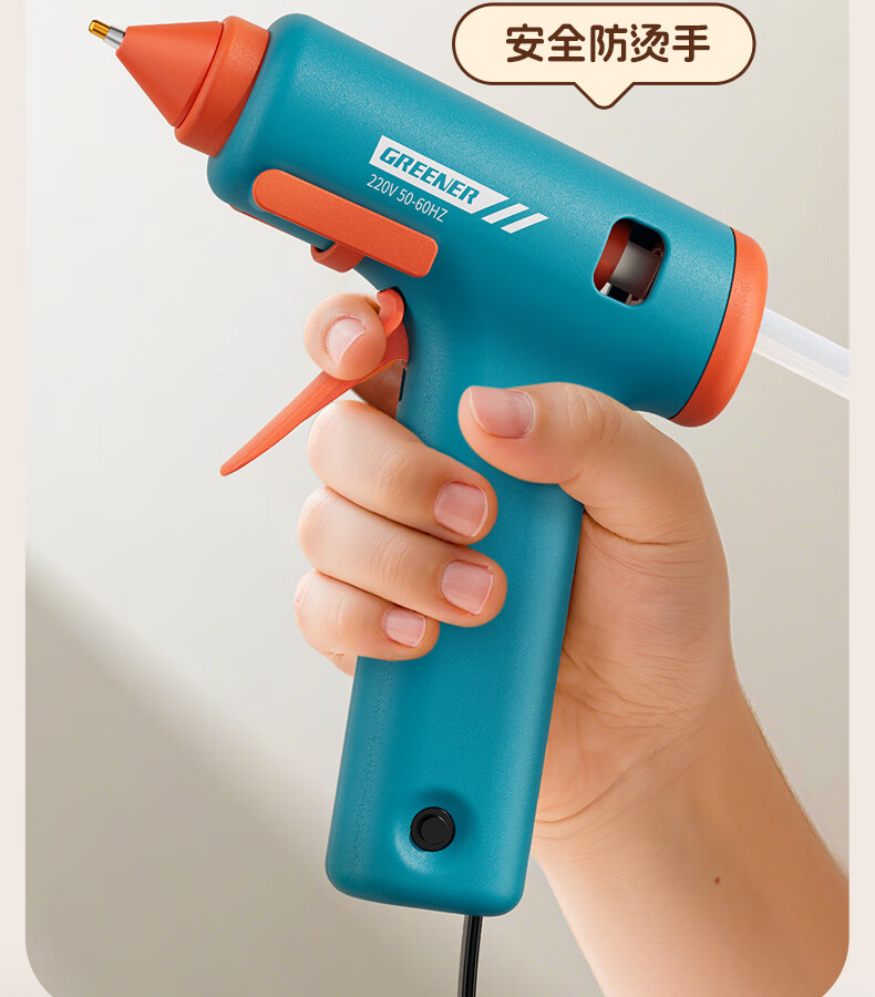 GREENER hot melt glue gun household hot glue gun high viscosity 7mm glue stick glue strip children DIY handmade special hot melt gun 0 drops of glue 50W deep sea blue + 10 formaldehyde-free glue sticks