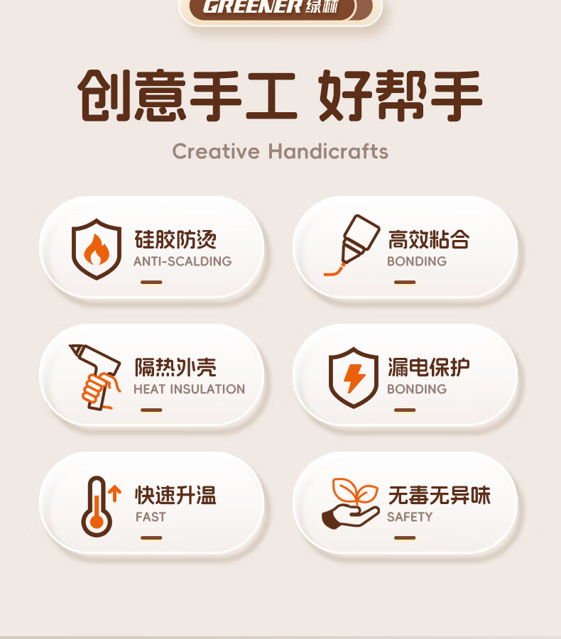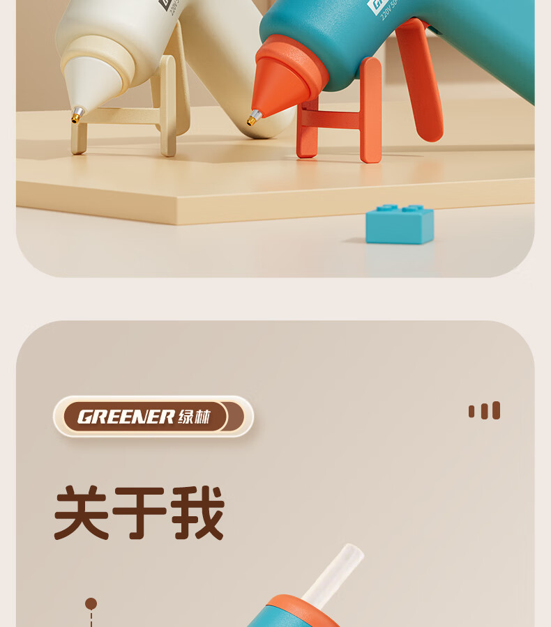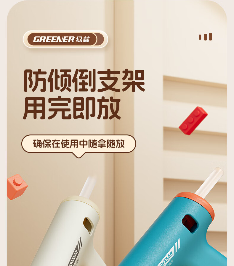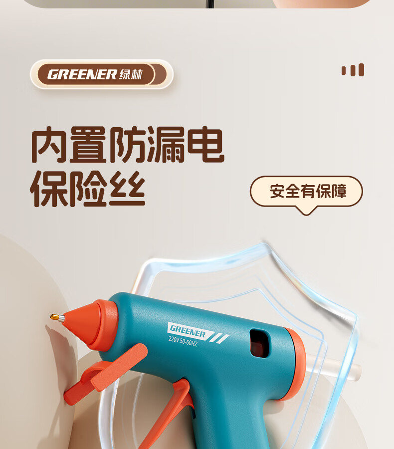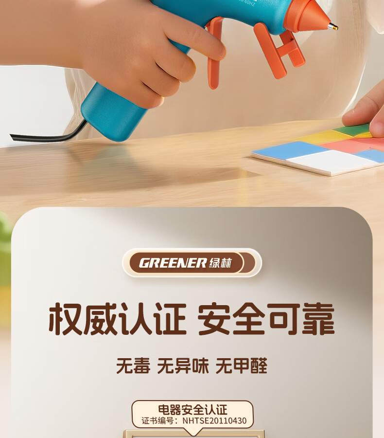 GREENER hot melt glue gun household hot glue gun high viscosity 7mm glue stick glue strip children DIY handmade special hot melt gun 0 drops of glue 50W deep sea blue + 10 formaldehyde-free glue sticks
