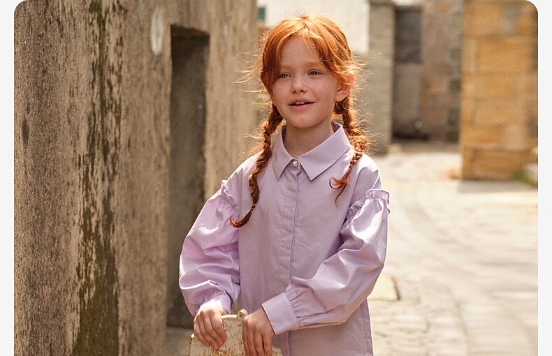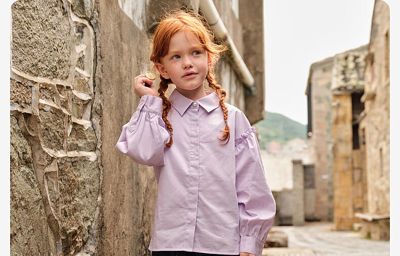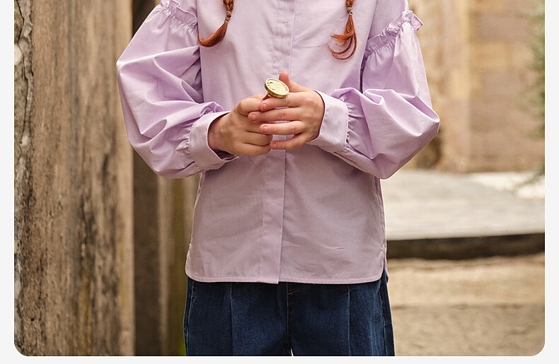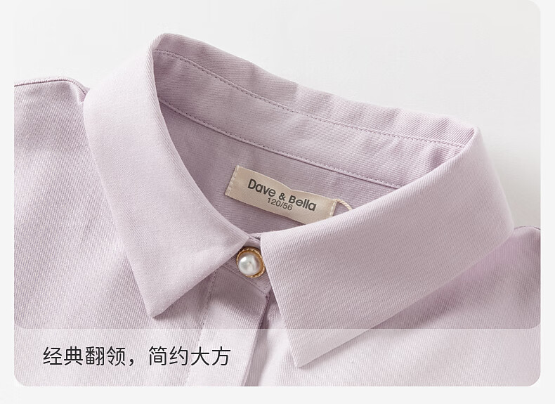DAVE&BELLA new spring pure cotton girls' shirts, medium and large children's long-sleeved shirts, stylish children's tops, little girls' clothes, gray purple, in stock, 140 cm (recommended height 130-140cm)