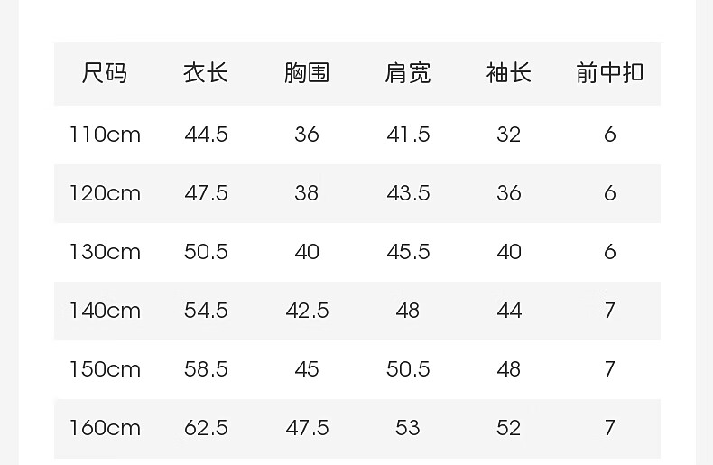 Size (cm) 42 44 46 48 50
