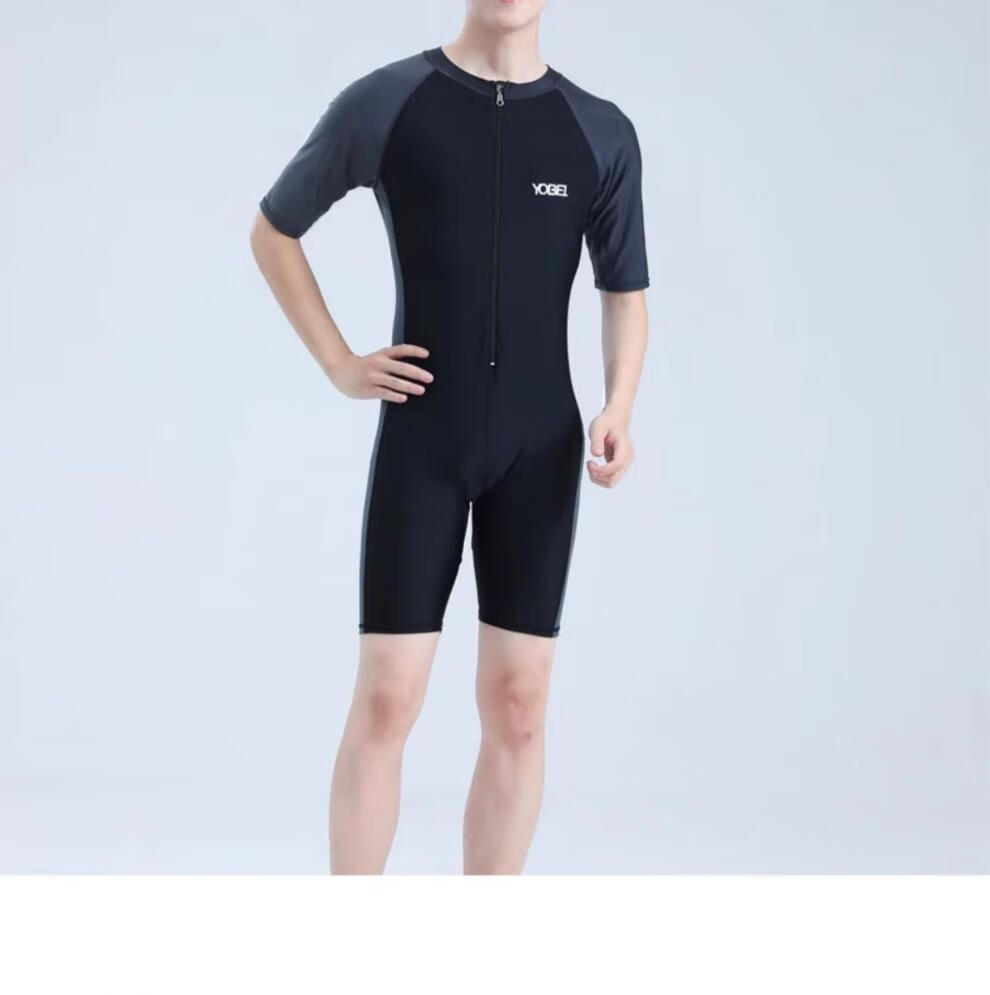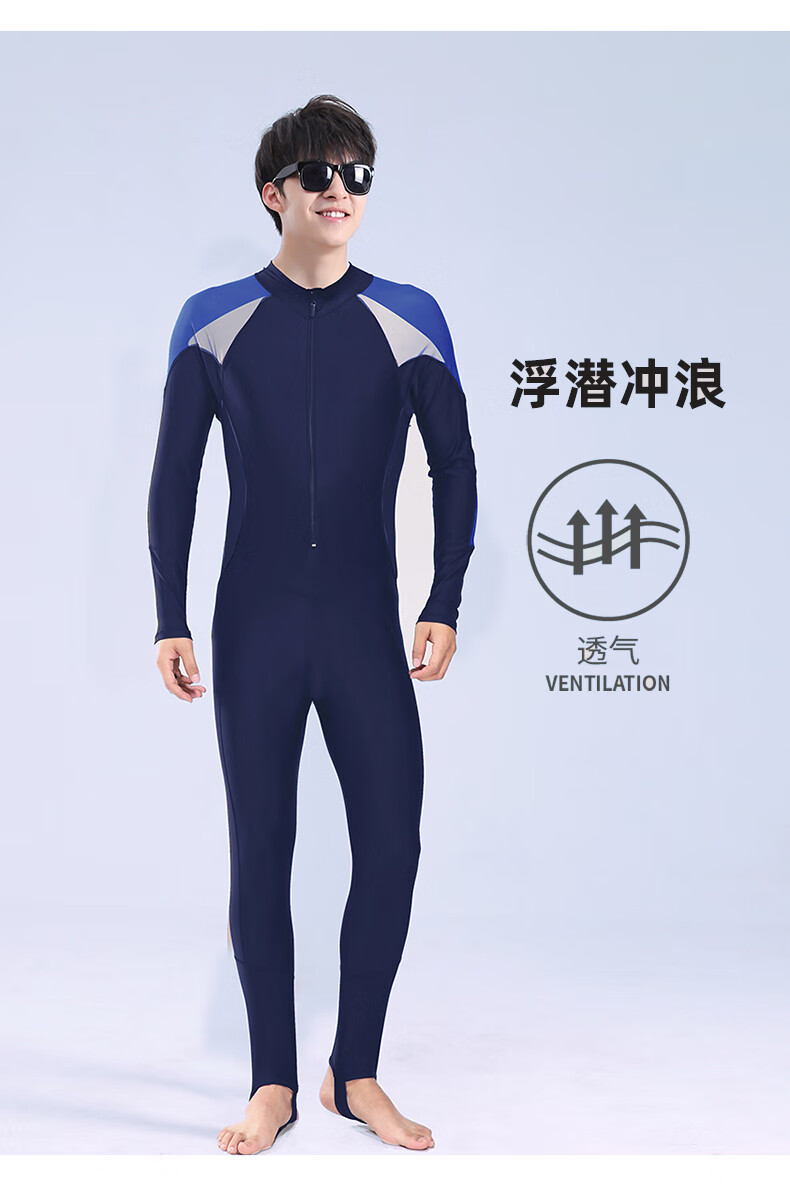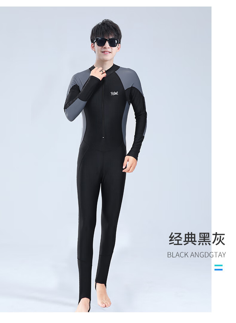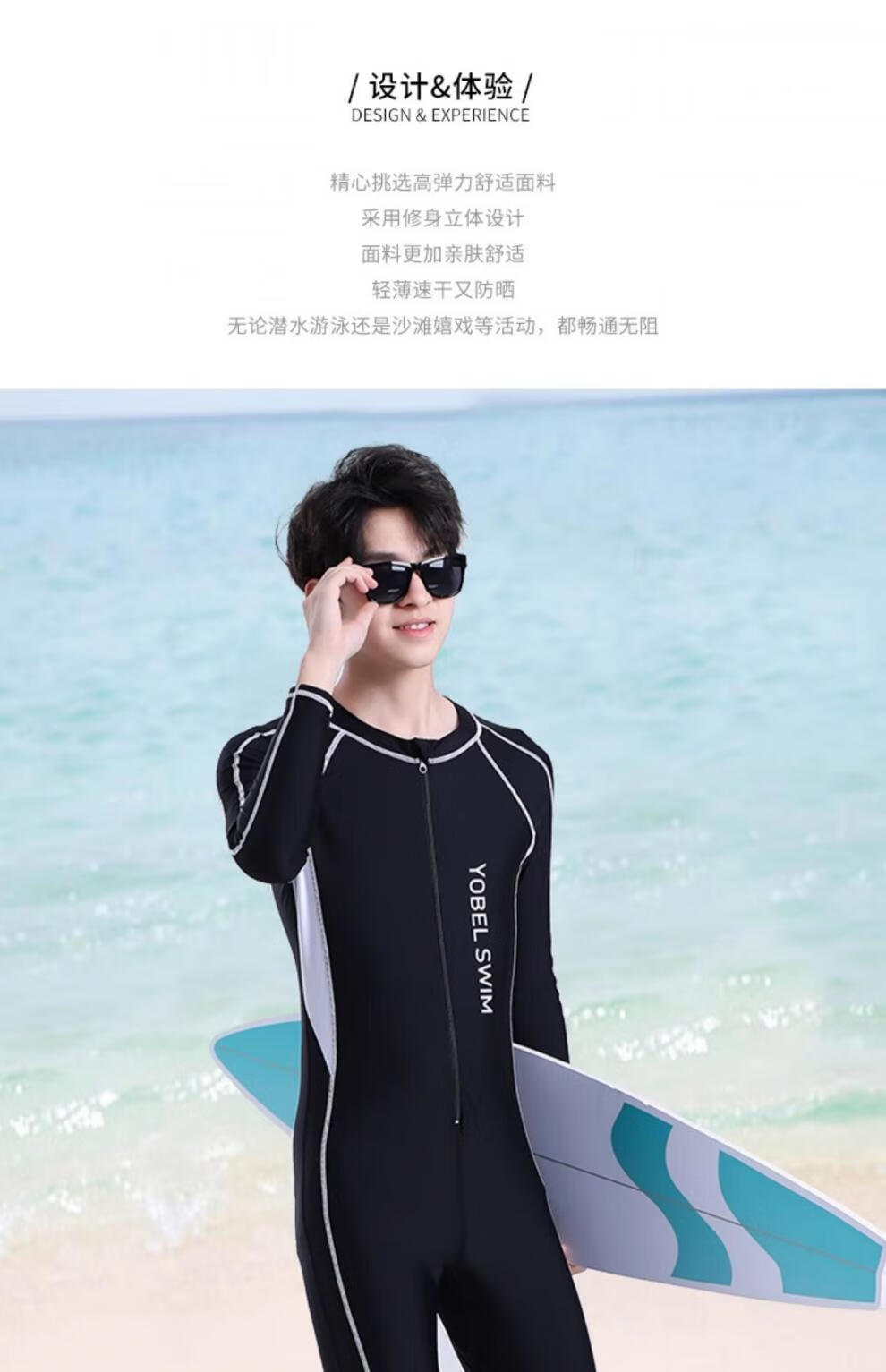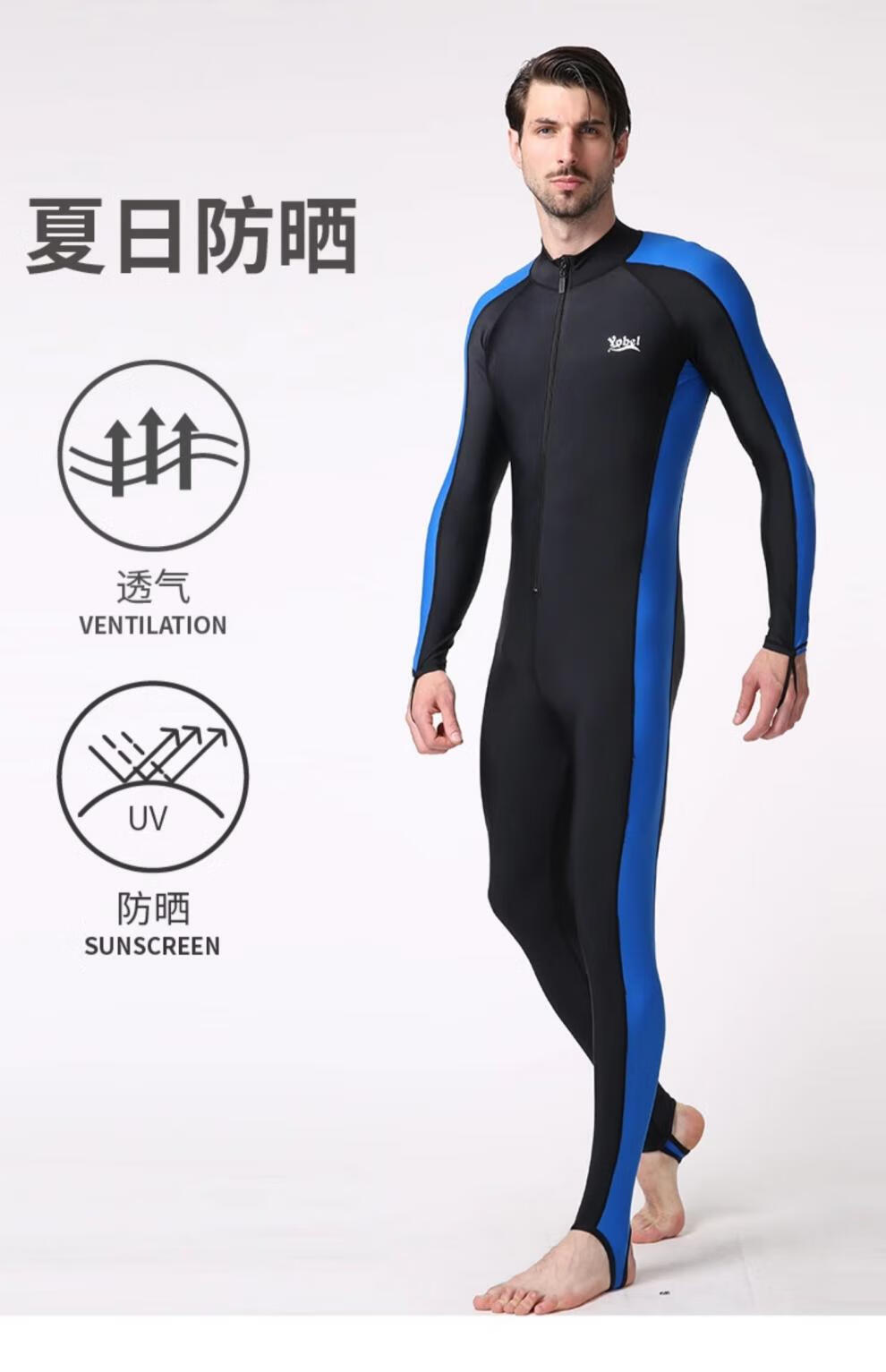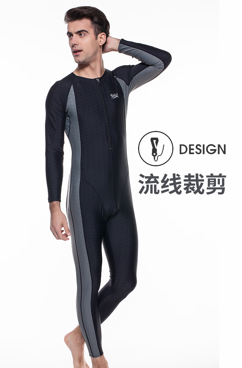 Kelipu large size wetsuit men's one-piece swimsuit long-sleeved trousers sun protection quick-drying warm jellyfish surfing snorkeling suit shark waterproof black A style M recommended 90-100Jin Jin equals 0.5 kg