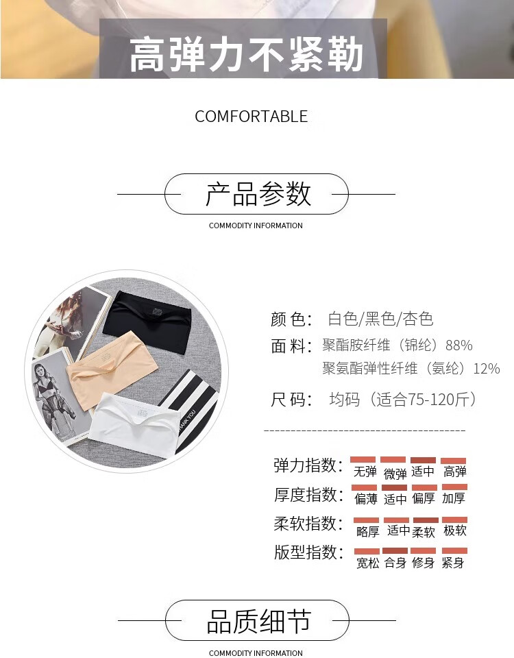 Qingbilin 3-piece strapless tube top anti-exposure bottoming bra with one-piece breast-wrap and back-beautiful bra, ice silk tube top, white+skin+black, one size fits all (75-120Jin Jin is equal to 0.5kg)